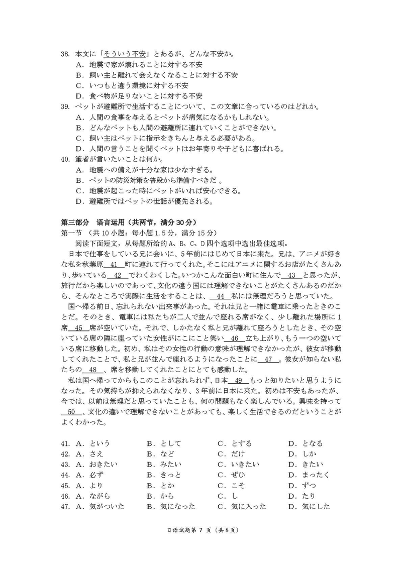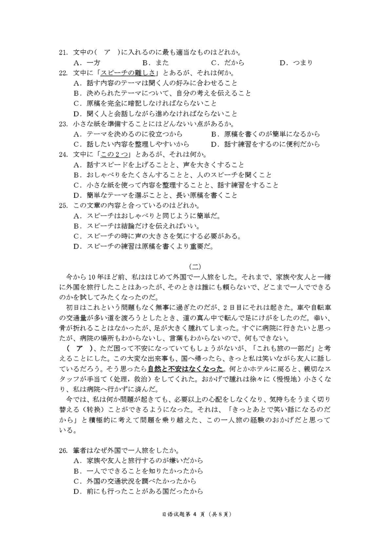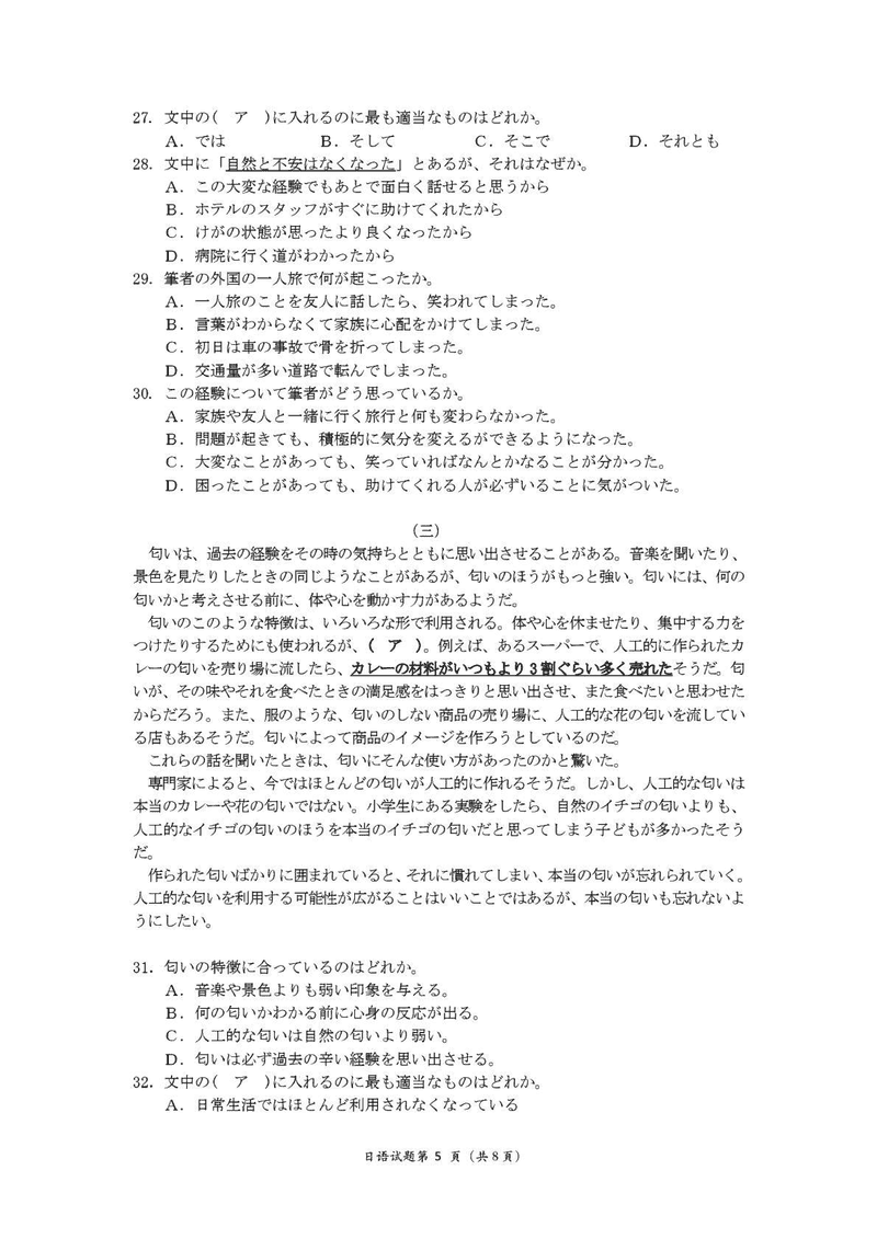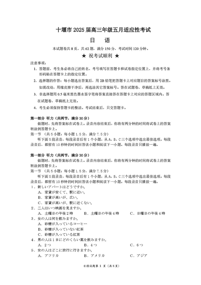 十堰市2025届高三下学期五月份适应性日语试题及答案