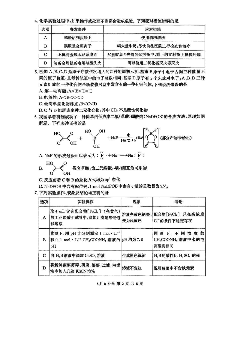 2025届河北省邯郸市高三保温化学试题及答案 时间:2025-05-21 河北 理综试题 2025届河北省邯郸市高三保温化学考试已于近日开考,为方便考生考后及时查看考试情况,查漏补缺、弥补不足,本文整理了试题答案解析相关信息! 汇总:2025届河北省邯郸市高三保温考试试题及答案汇总 化学试题及答案解析