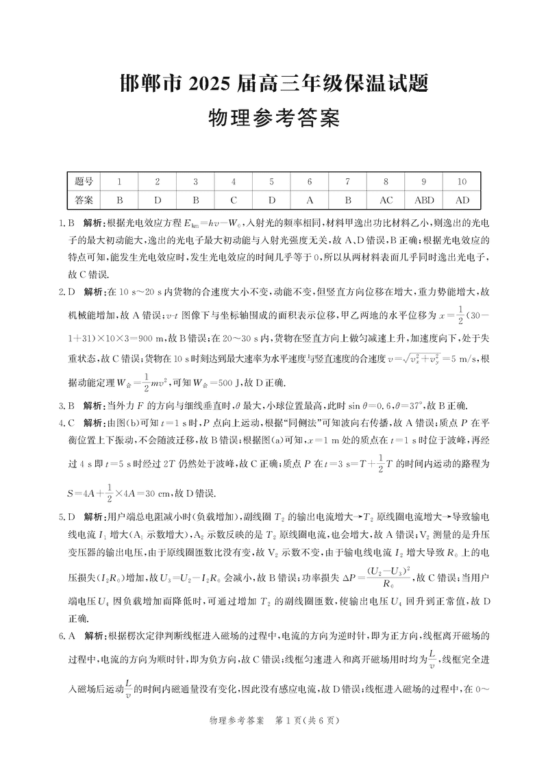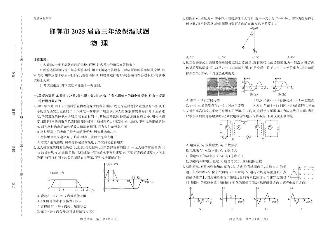 2025届河北省邯郸市高三保温物理试题及答案 时间:2025-05-21 河北 理综试题 2025届河北省邯郸市高三保温物理考试已于近日开考,为方便考生考后及时查看考试情况,查漏补缺、弥补不足,本文整理了试题答案解析相关信息! 汇总:2025届河北省邯郸市高三保温考试试题及答案汇总 物理试题及答案解析