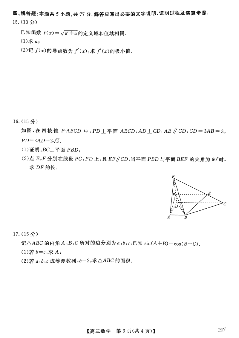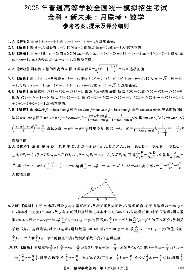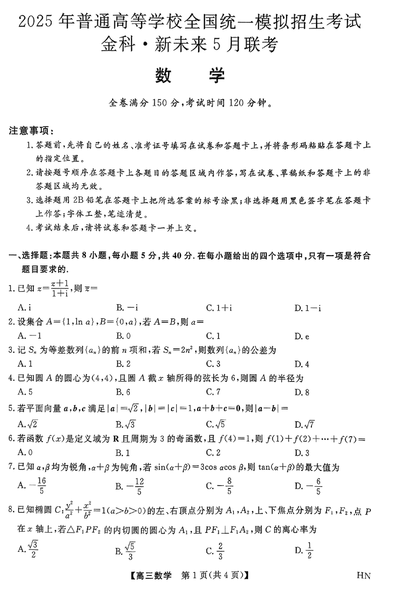 河南金科新未来2025届高三下5月联考数学试题及答案
