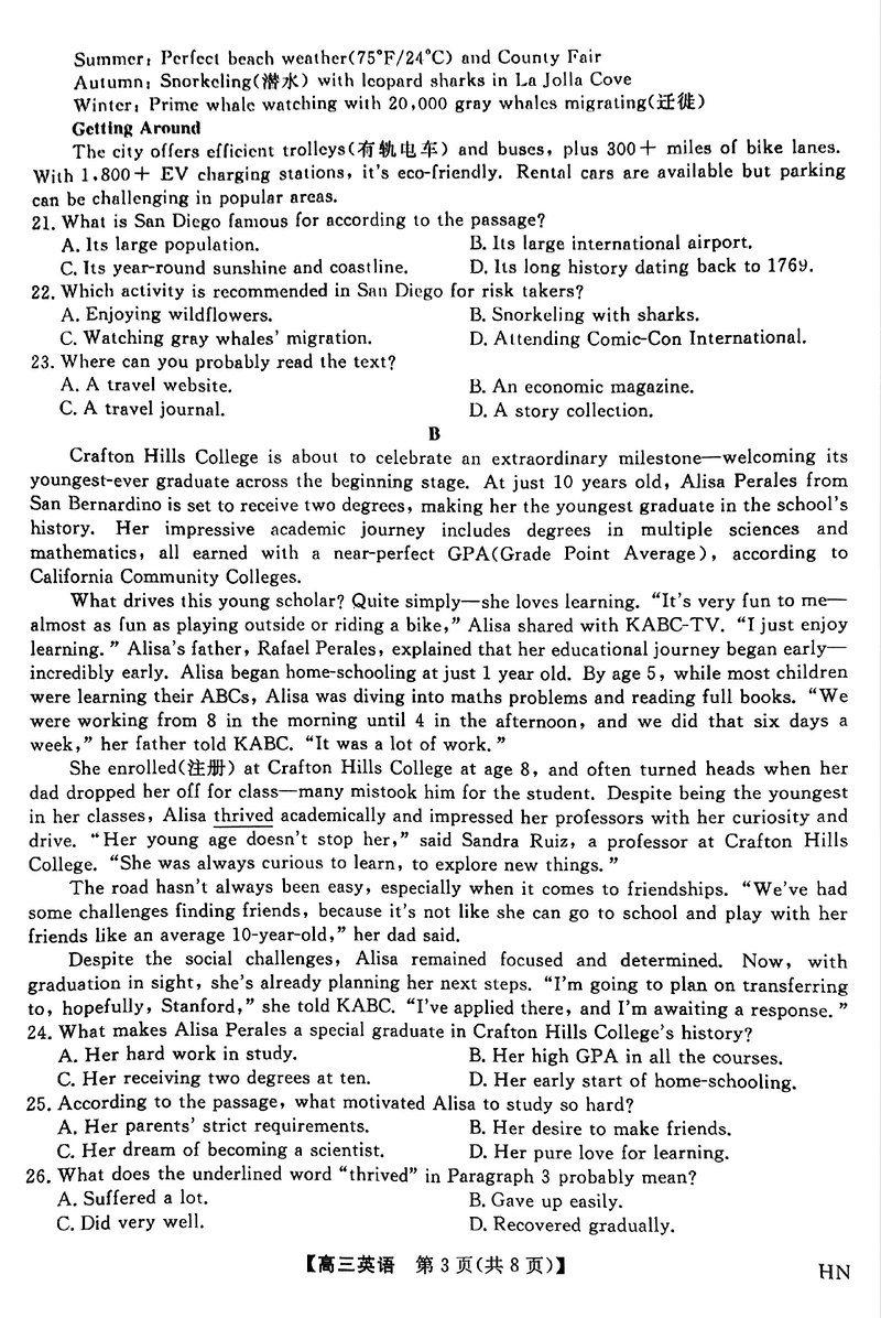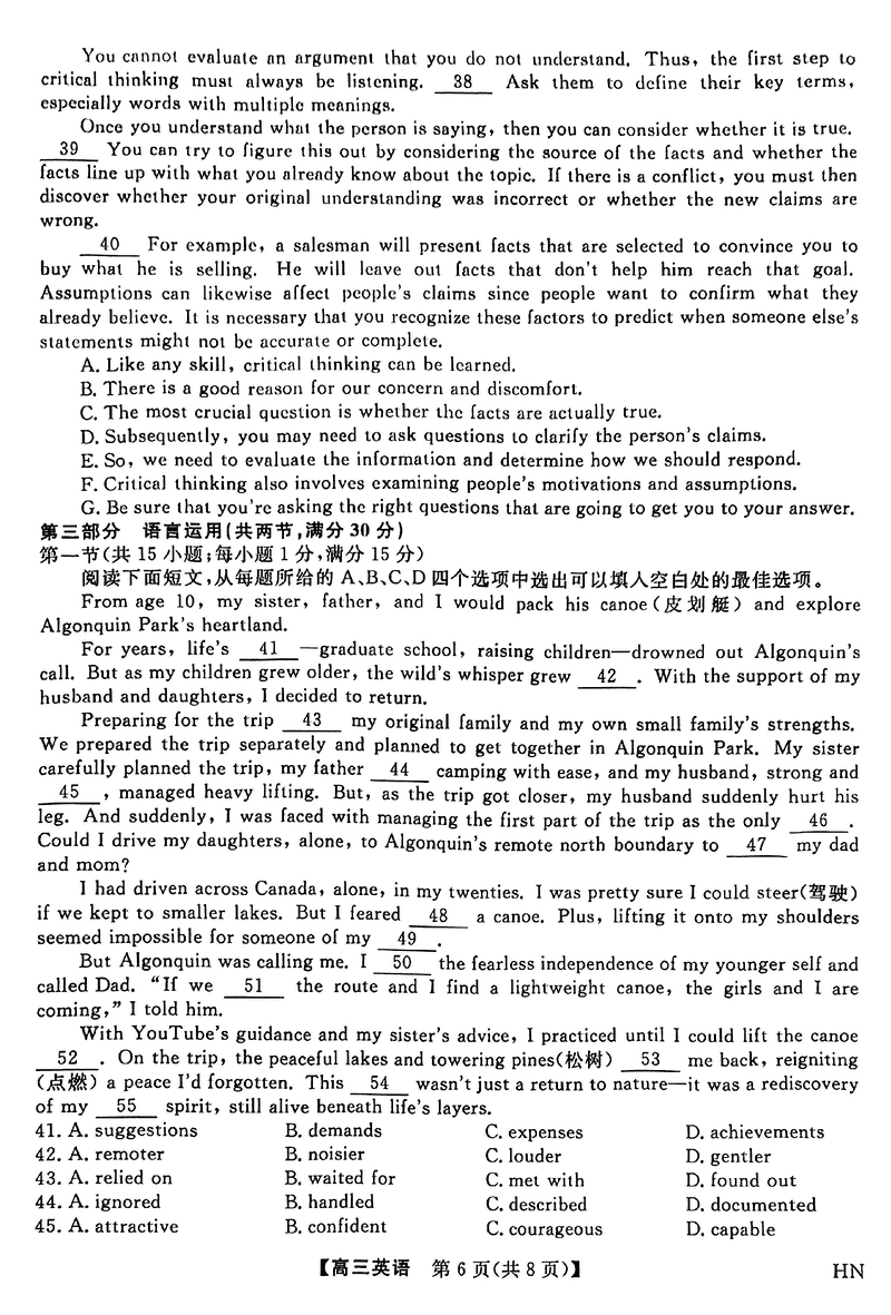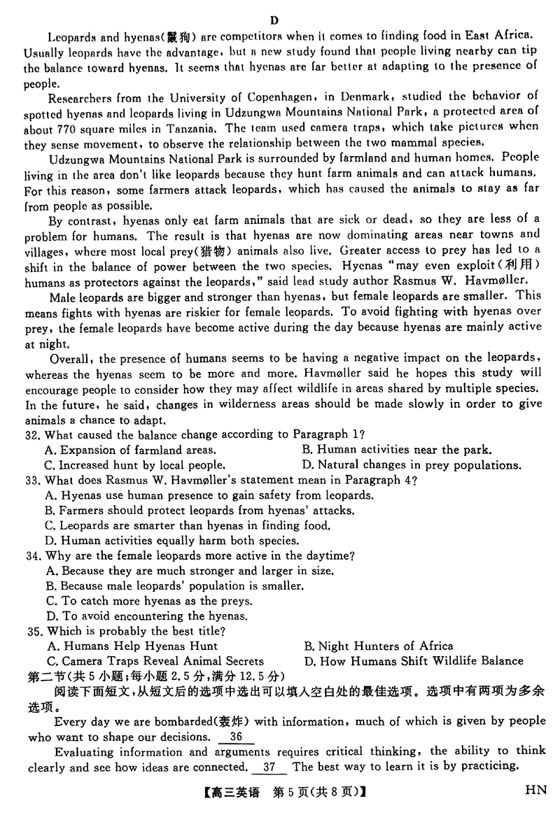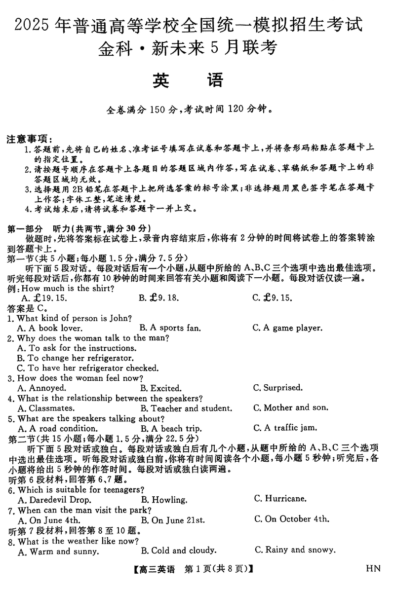 河南金科新未来2025届高三下5月联考英语试题及答案