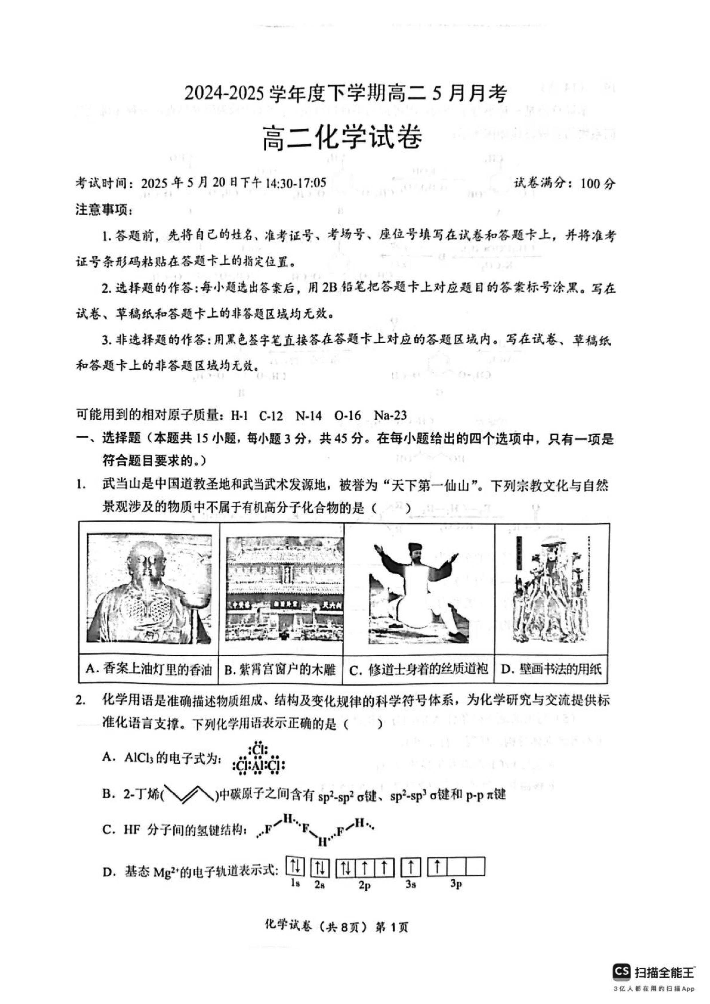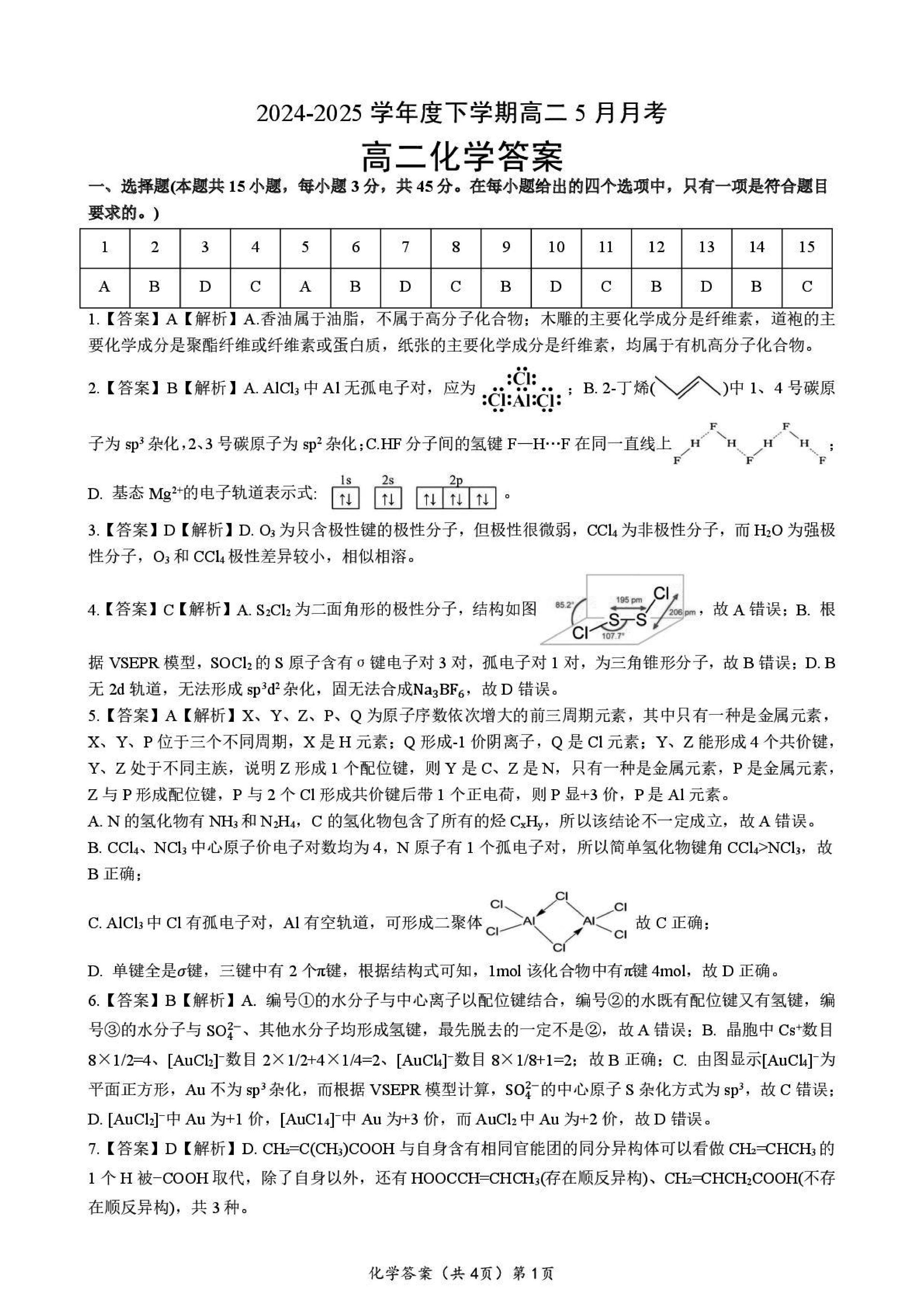 湖北新八校联考2024-2025学年高二下学期5月月考化学物理试题及答案 时间:2025-05-22 湖北 高中化学 湖北新八校联考2024-2025学年高二下学期5月月考化学考试已于近日开考,为方便考生考后及时查看考试情况,查漏补缺、弥补不足,本文整理了试题答案解析相关信息! 汇总: 化学试题及答案解析