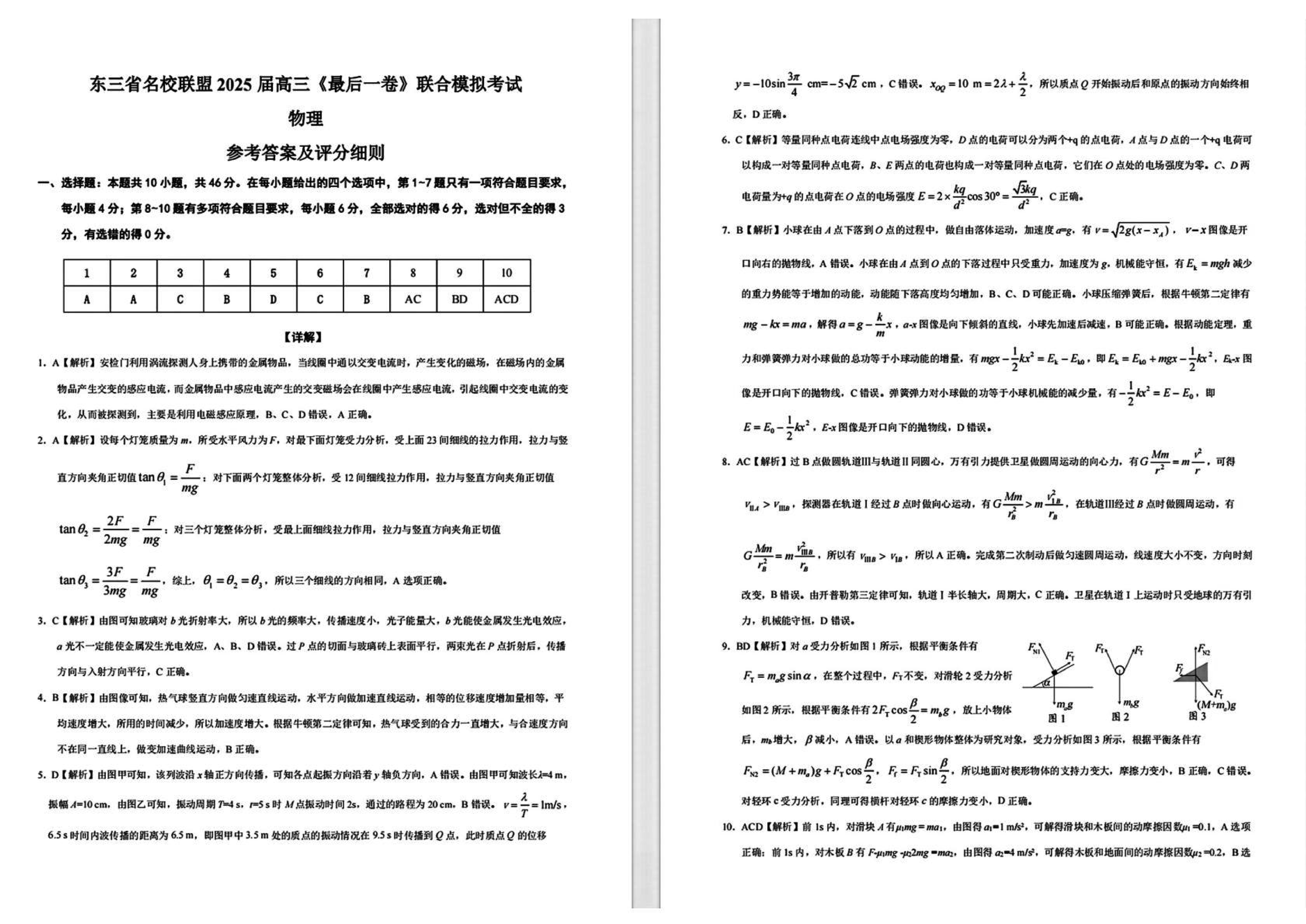 东三省名校联盟2025届高三最后一卷联考物理试题及答案
