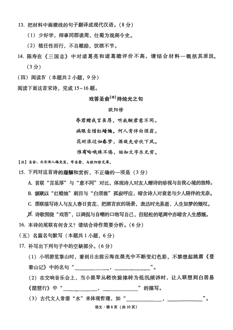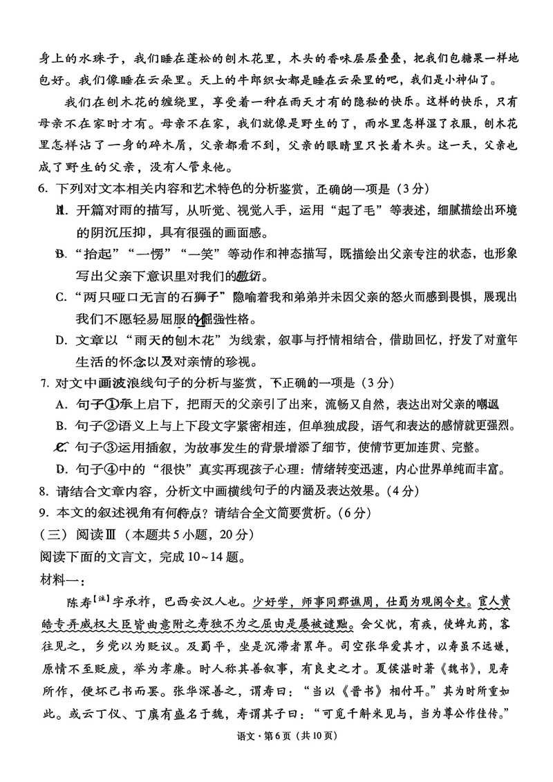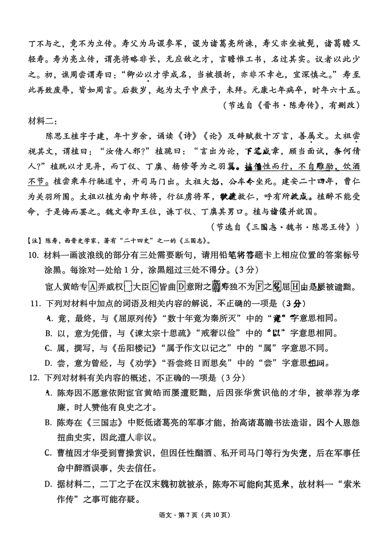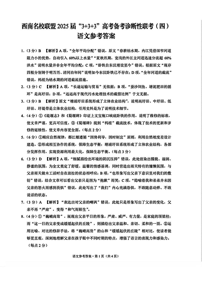 西南名校联盟2025届“3+3+3”高考备考诊断性联考(四)语文试题及答案
