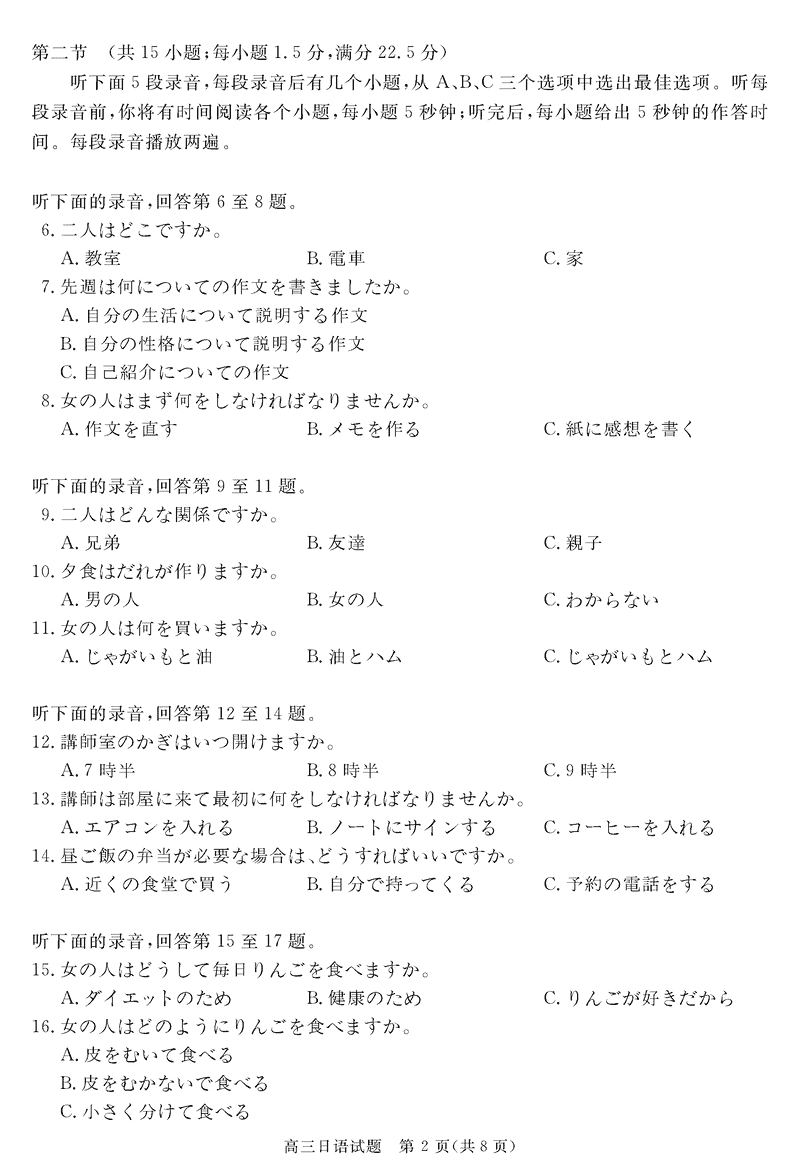 安徽华师联盟2025届高三下5月质检日语试题及答案