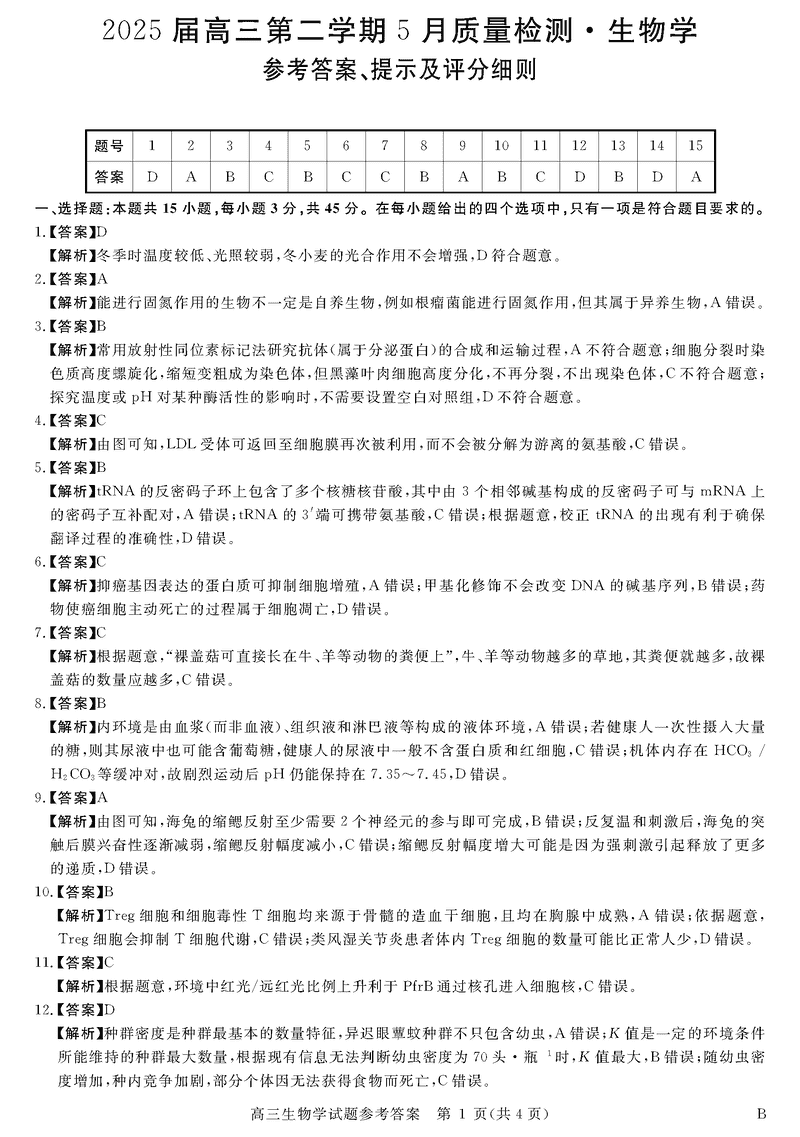 安徽华师联盟2025届高三下5月质检生物考试已于近日开考,为方便考生考后及时查看考试情况,查漏补缺、弥补不足,本文整理了试题答案解析相关信息!
