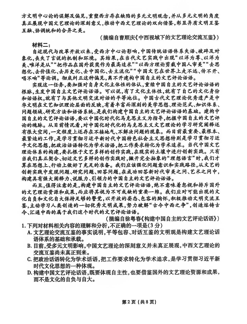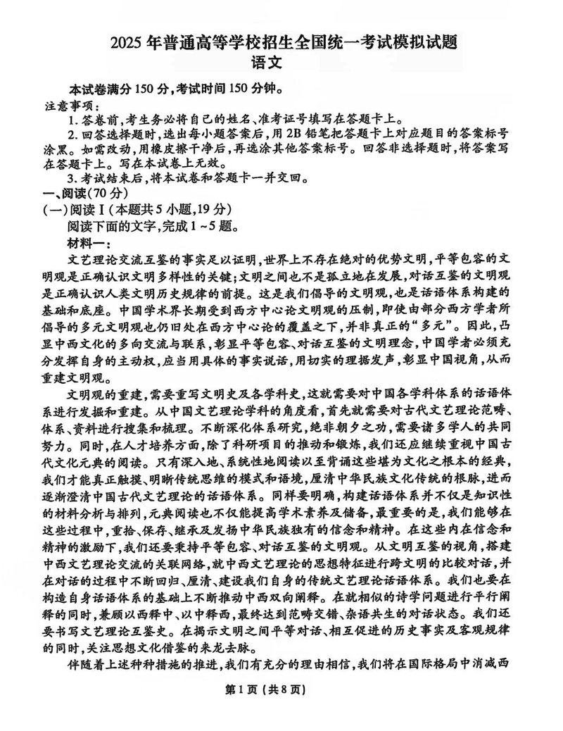 甘肃衡水金卷·先享题·信息卷2025届高三模拟五语文试题及答案