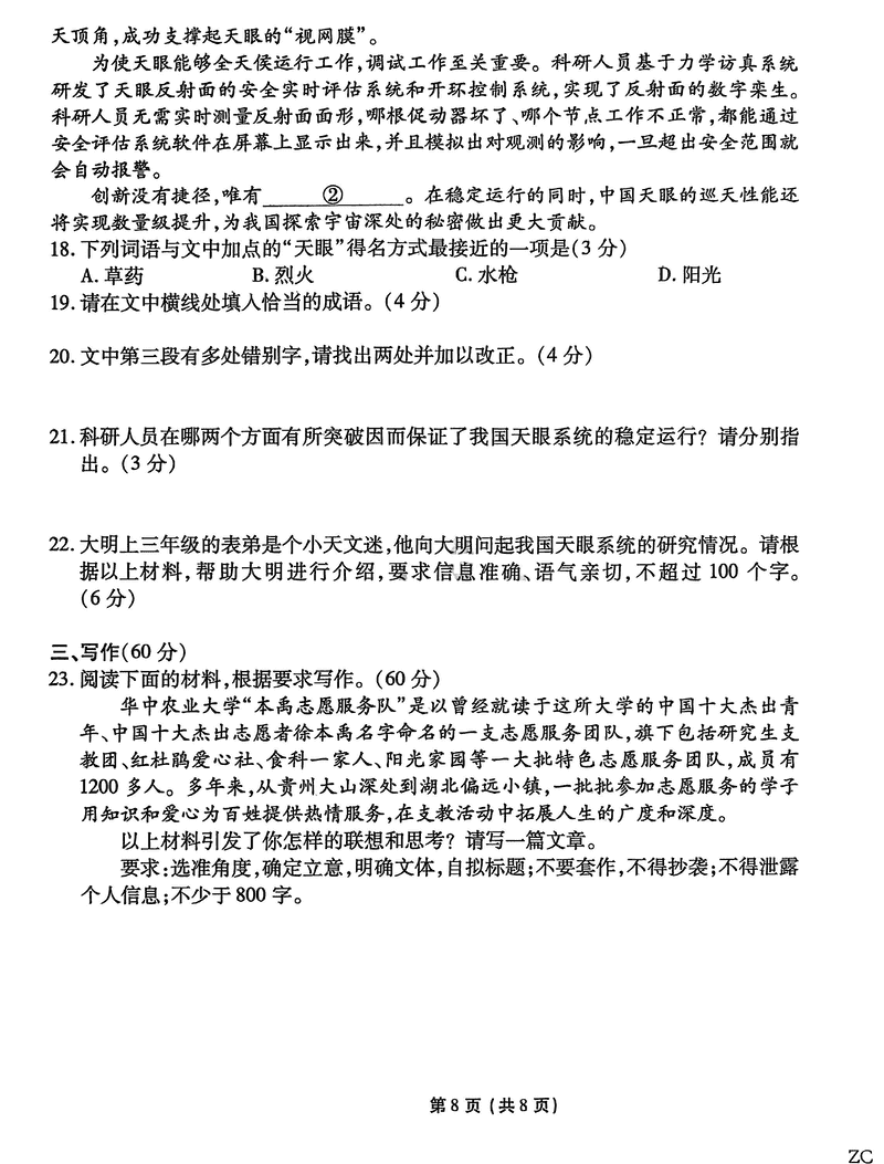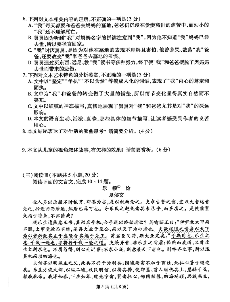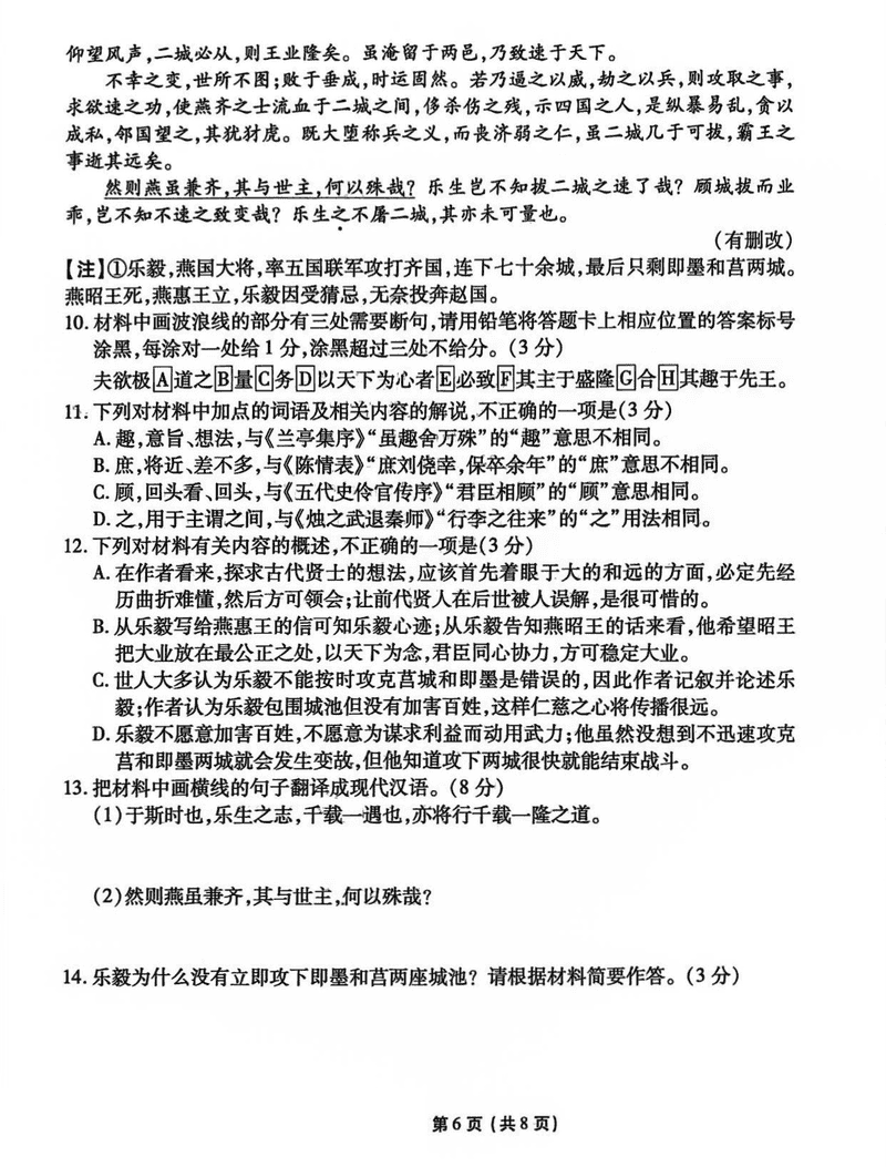 甘肃 语文试题