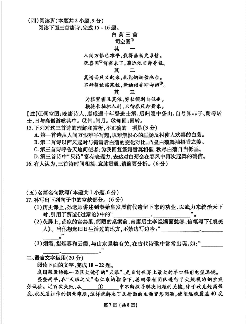 语文试题及答案解析