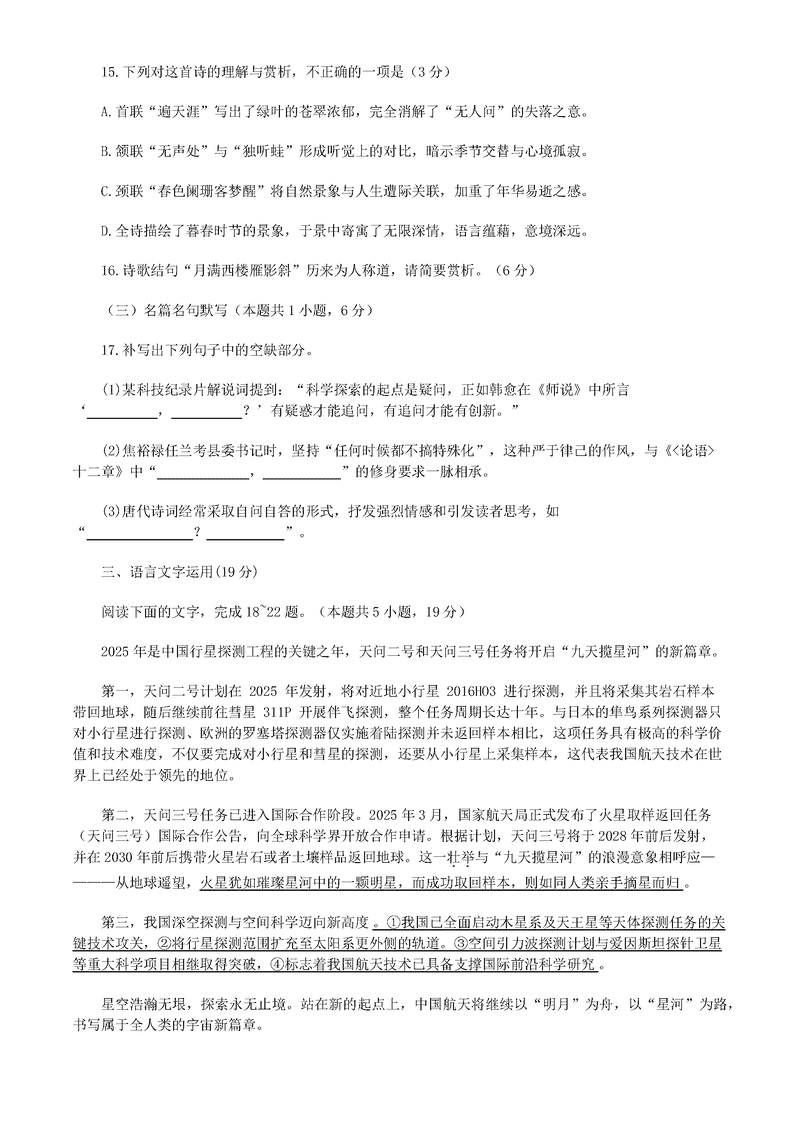 南通如皋2025年高三适应性考试(三)语文试题及答案
