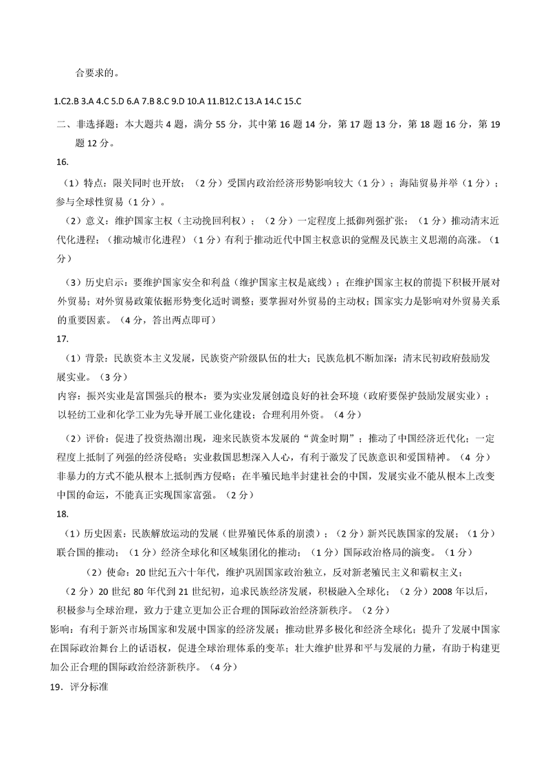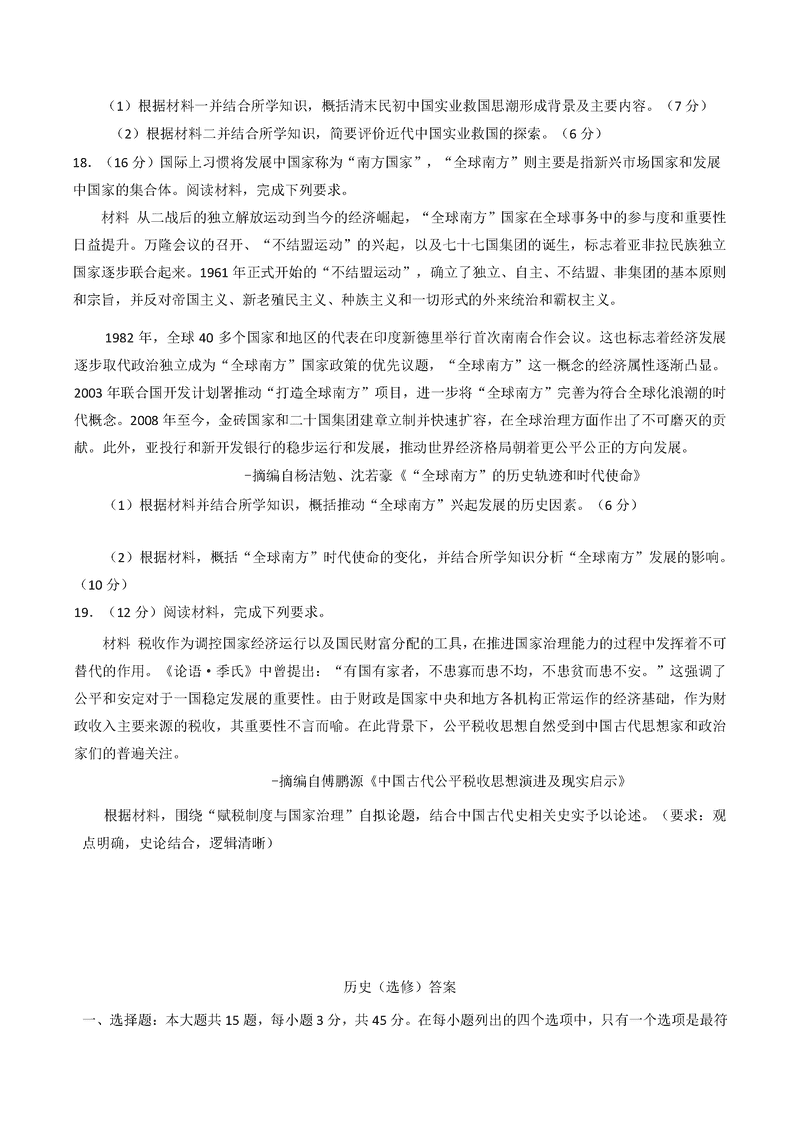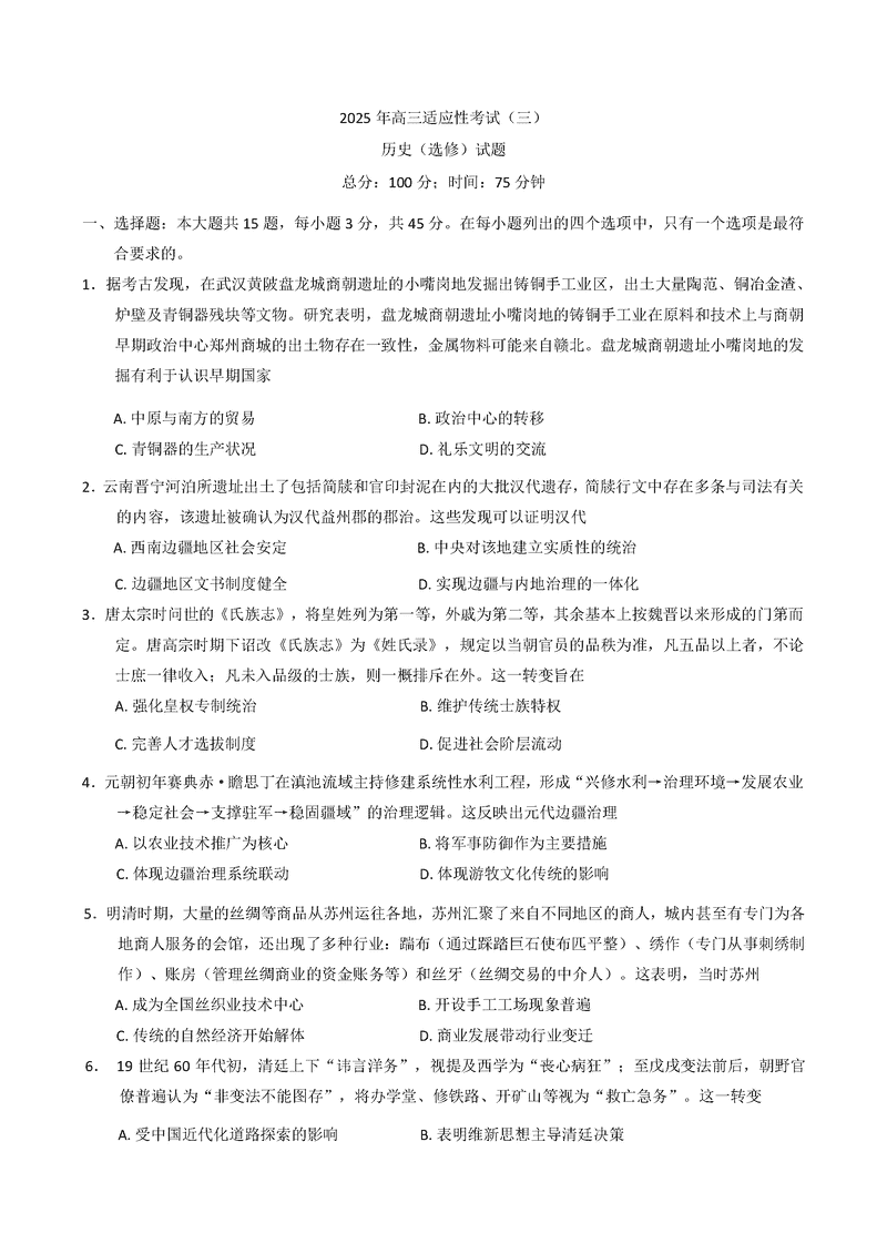 南通如皋2025年高三适应性考试(三)历史试题及答案