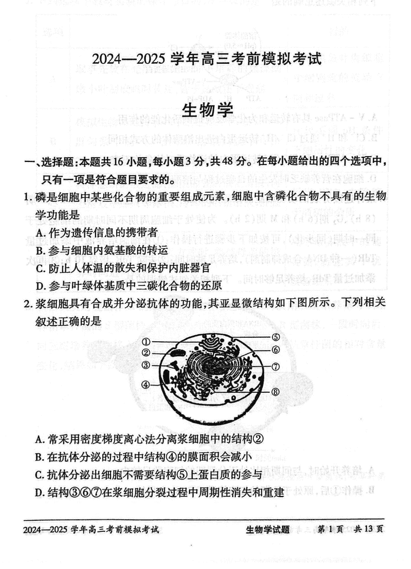 2025届河南省天一大联考高三考前模拟生物考试已于近日开考,为方便考生考后及时查看考试情况,查漏补缺、弥补不足,本文整理了试题答案解析相关信息!