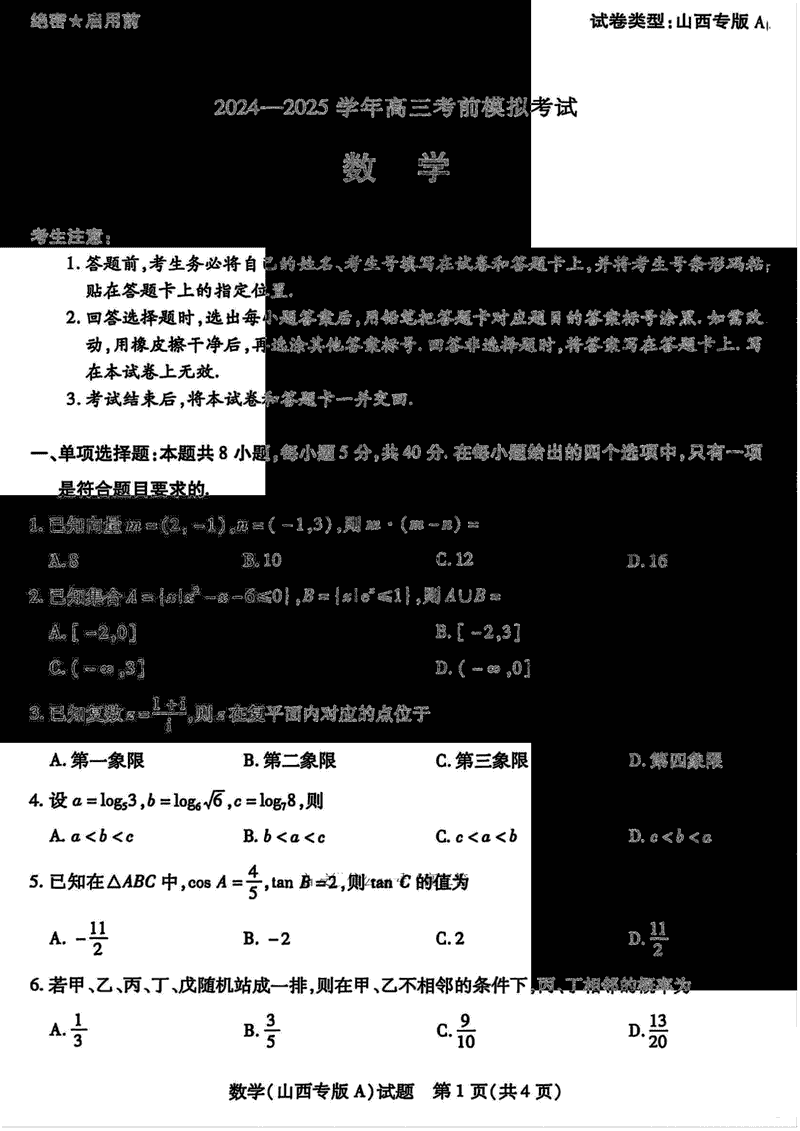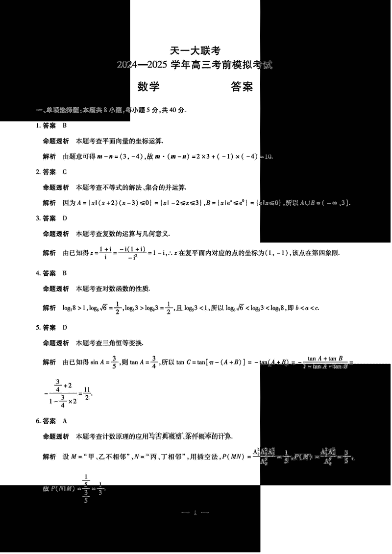 2025届河南省天一大联考高三考前模拟数学考试已于近日开考,为方便考生考后及时查看考试情况,查漏补缺、弥补不足,本文整理了试题答案解析相关信息!