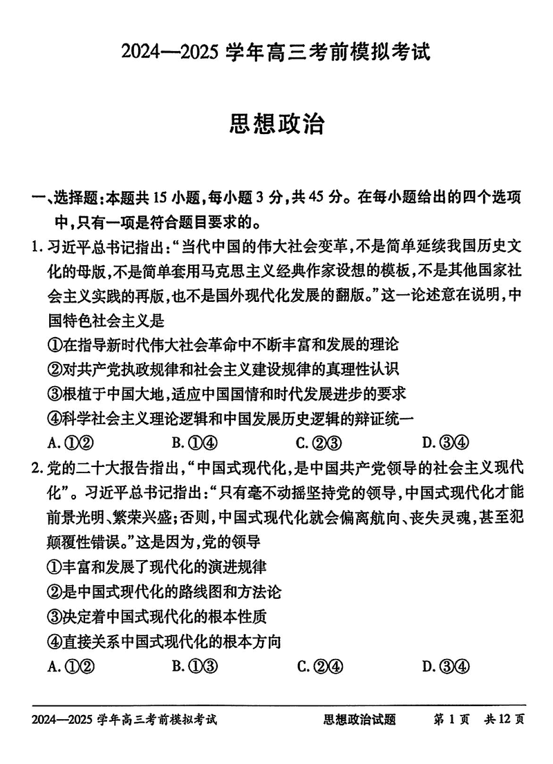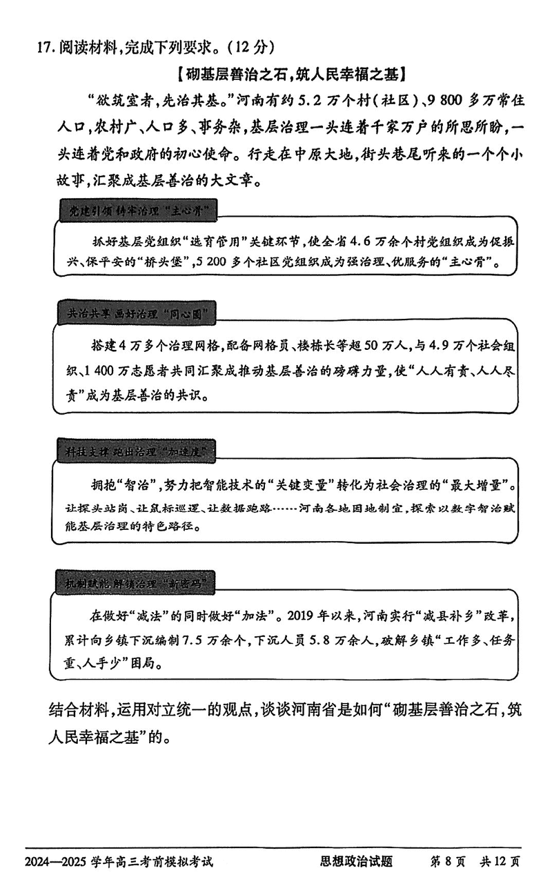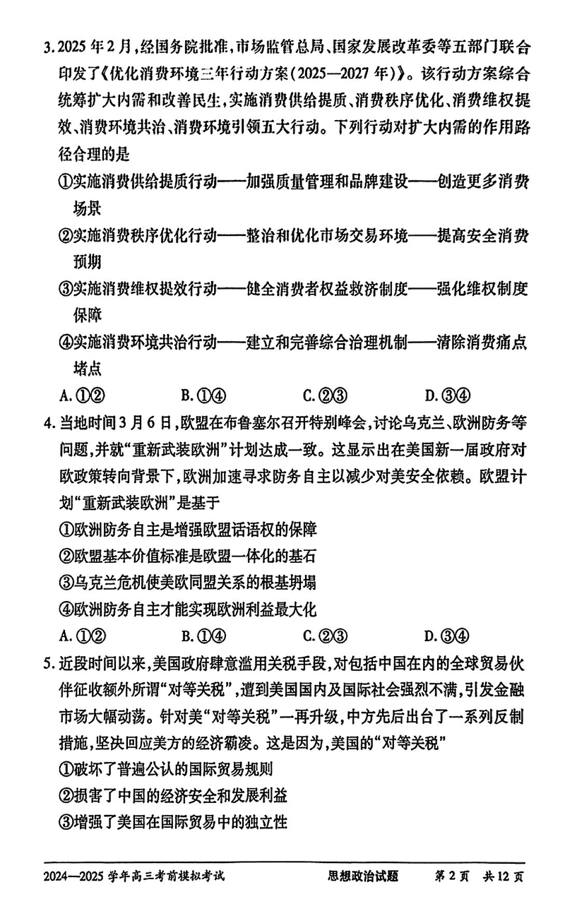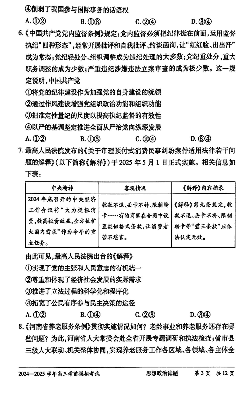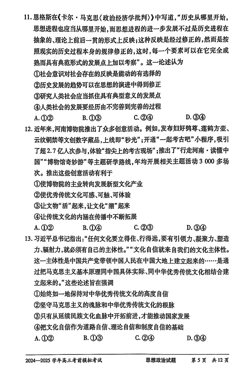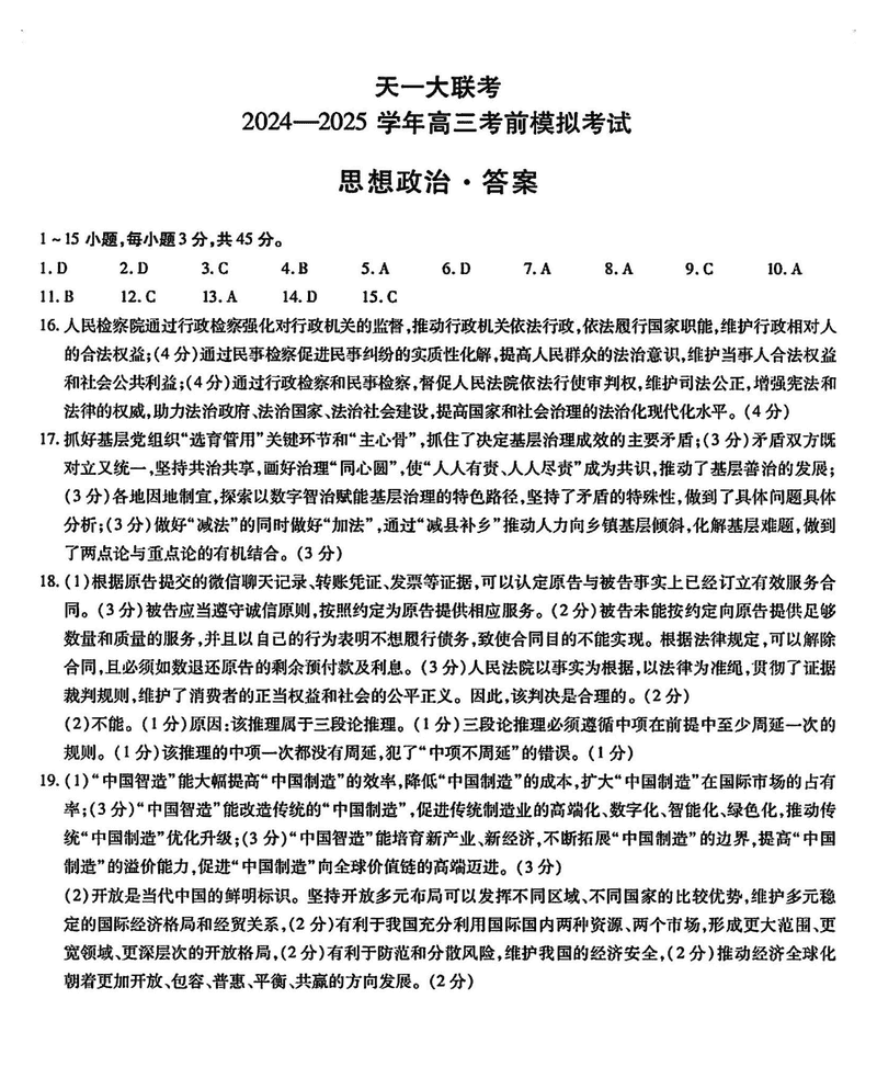 2025届河南省天一大联考高三考前模拟政治试题及答案