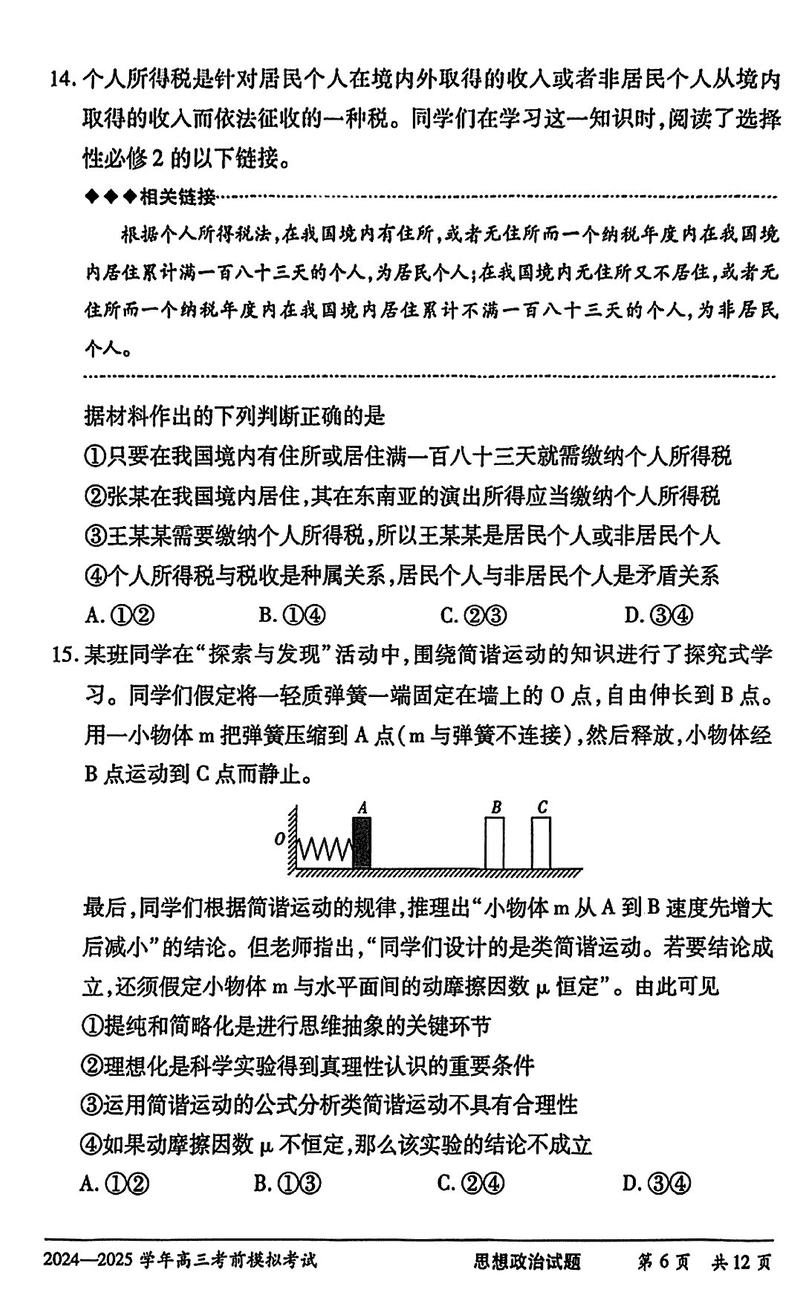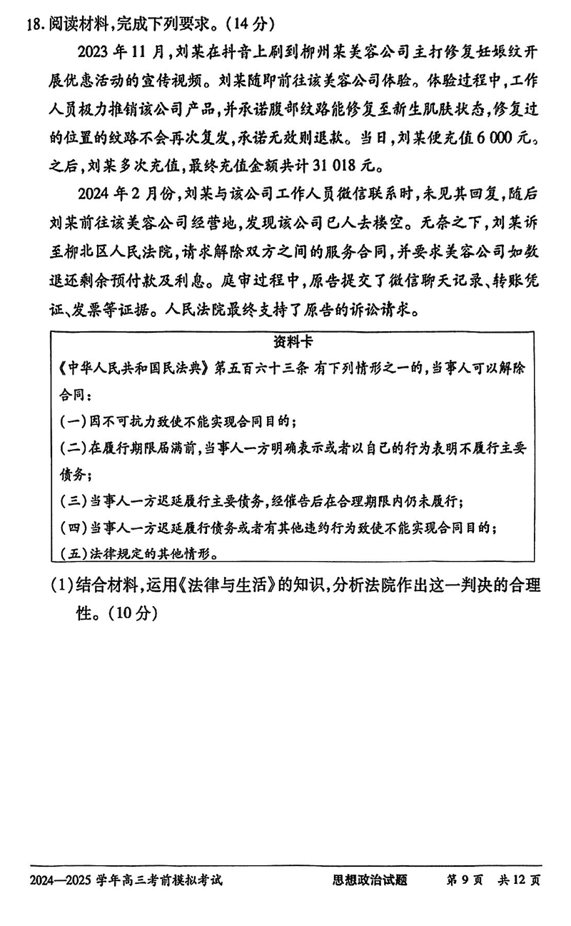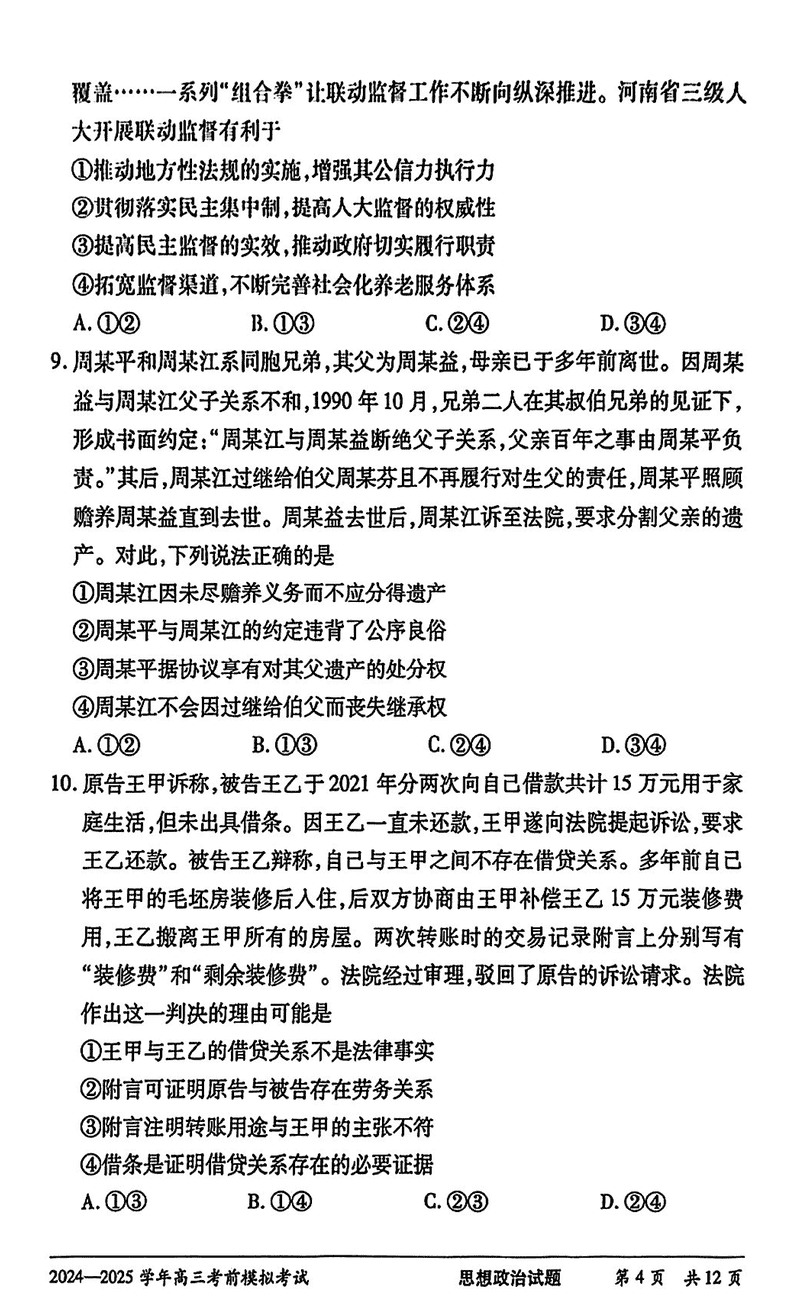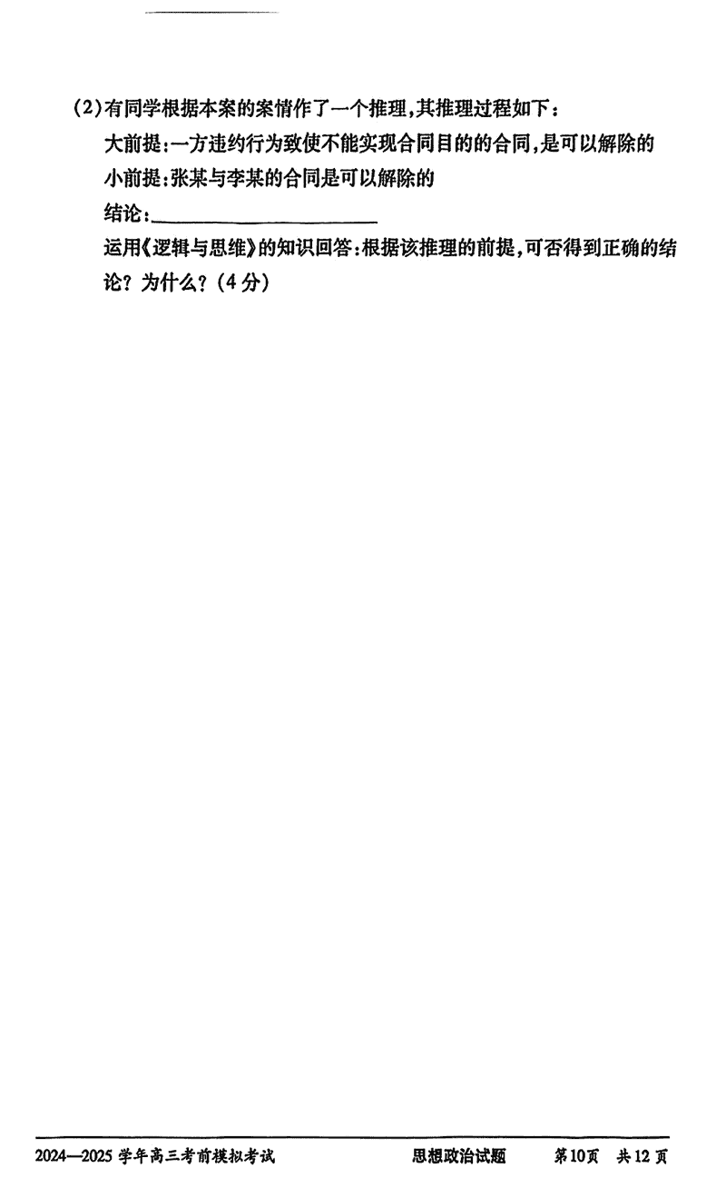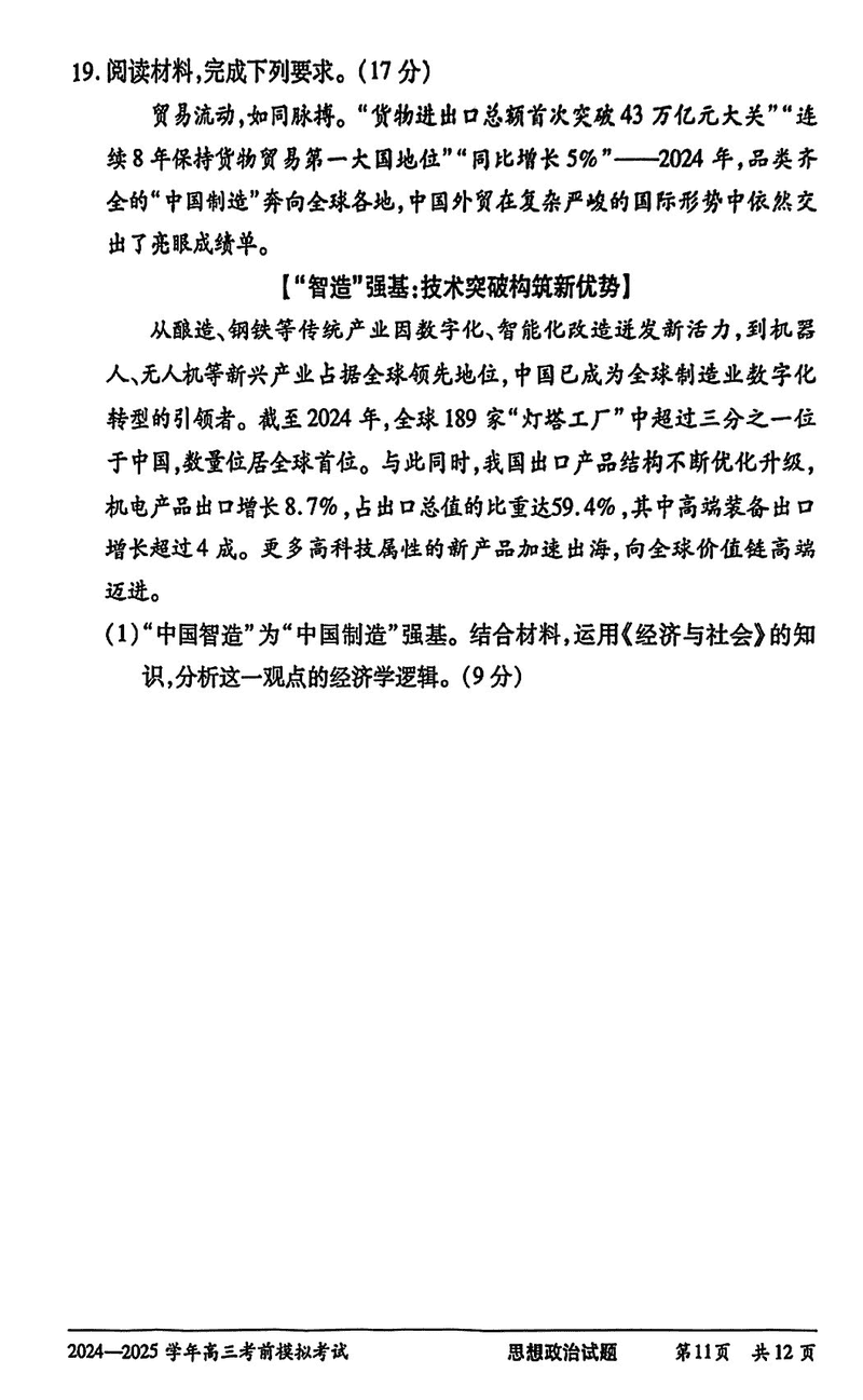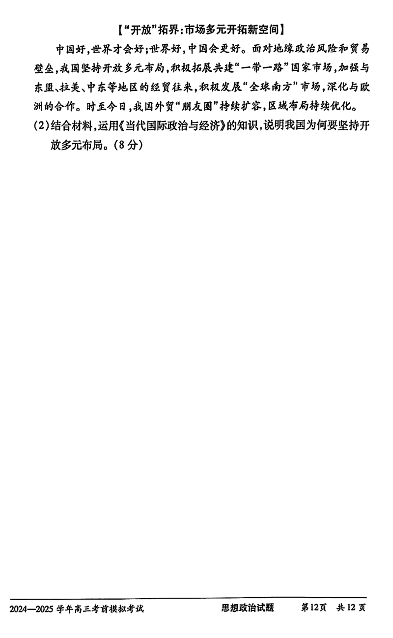 2025届河南省天一大联考高三考前模拟政治试题及答案