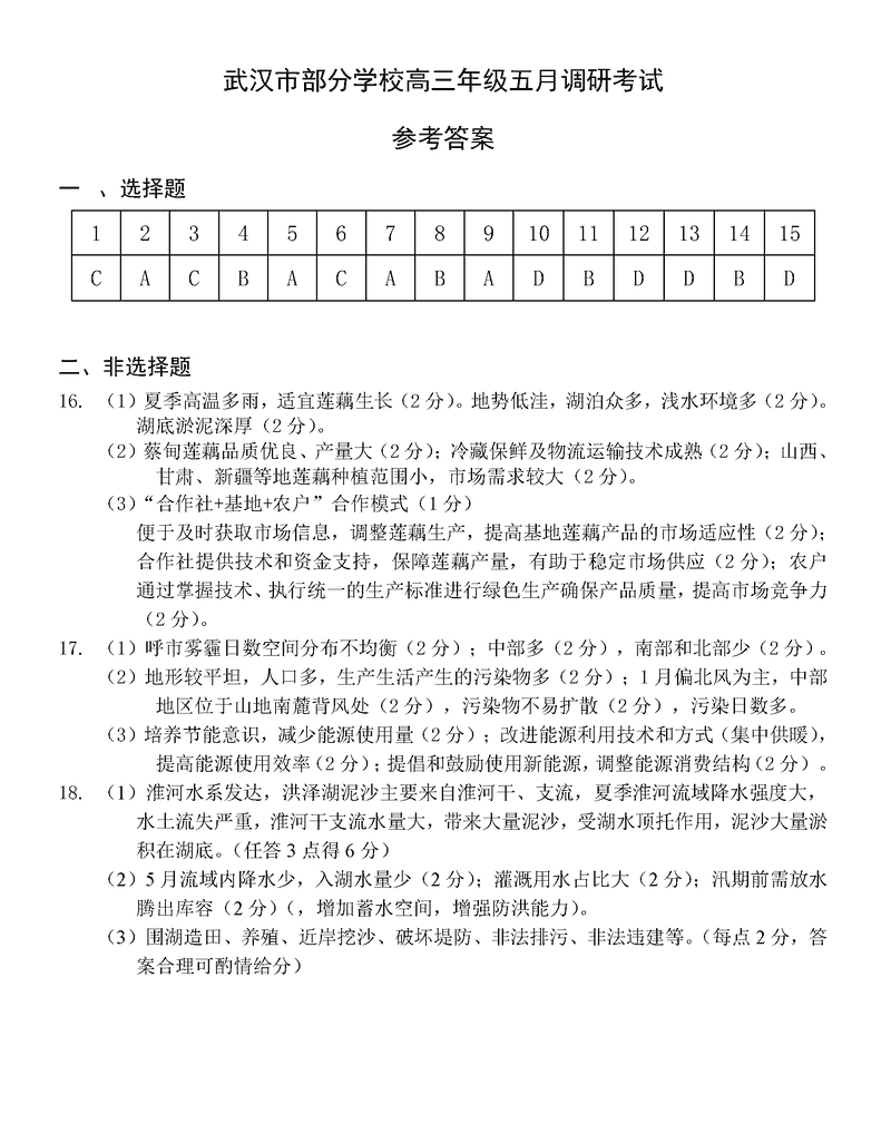 武汉市2025届高中毕业生五月模拟训练地理试题及答案 时间:2025-05-24 湖北 文综试题 武汉市2025届高中毕业生五月模拟训练地理考试已于近日开考,为方便考生考后及时查看考试情况,查漏补缺、弥补不足,本文整理了试题答案解析相关信息! 汇总:武汉市2025届高中毕业生五月模拟训练试题及答案汇总 地理试题及答案解析
