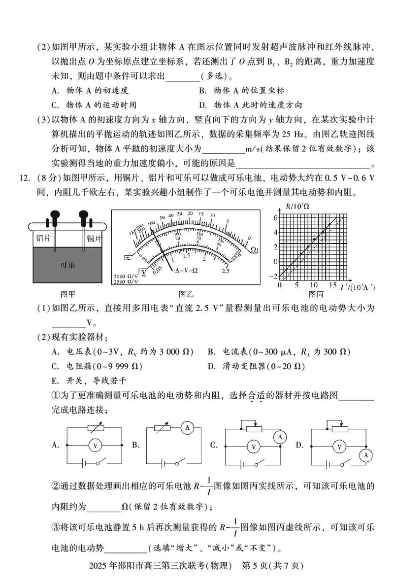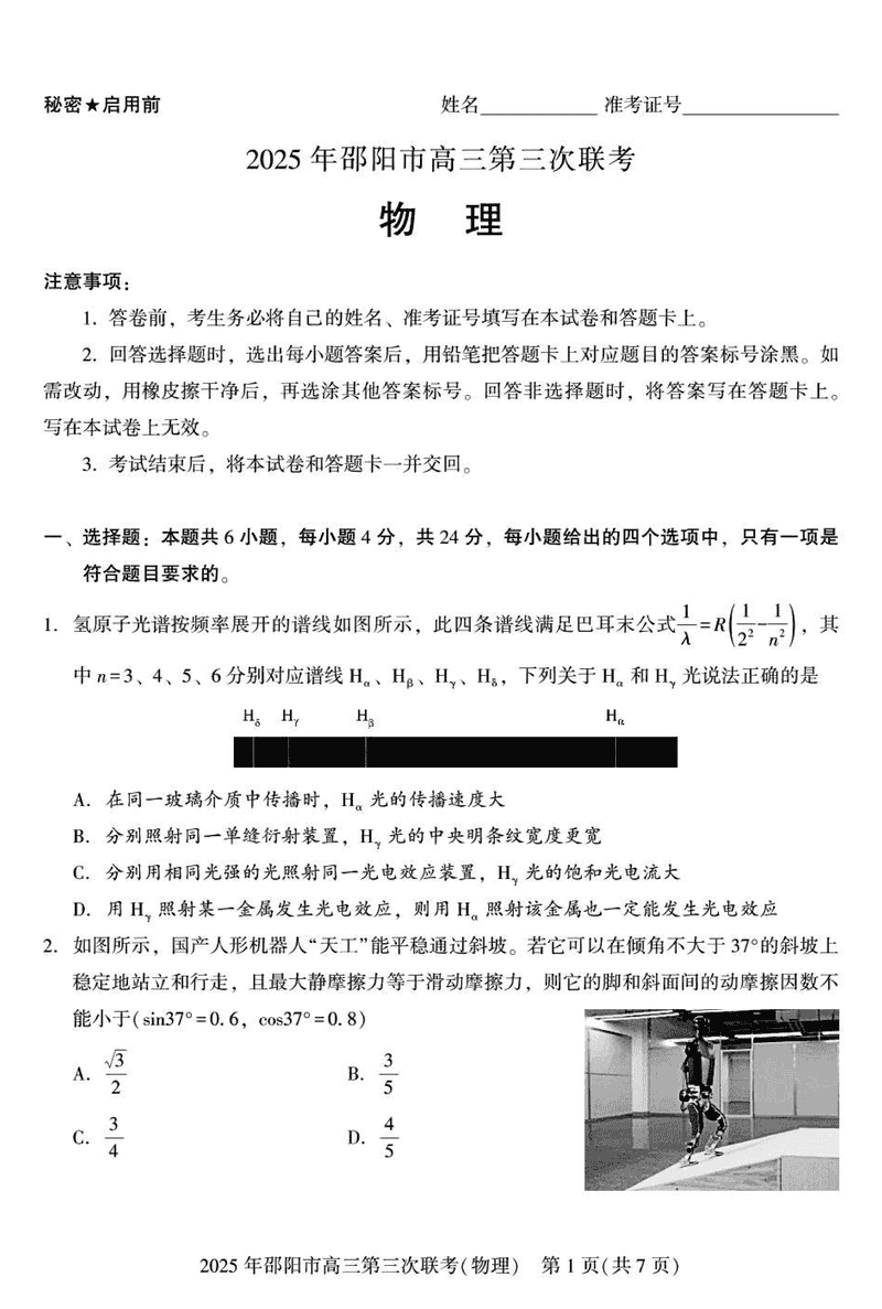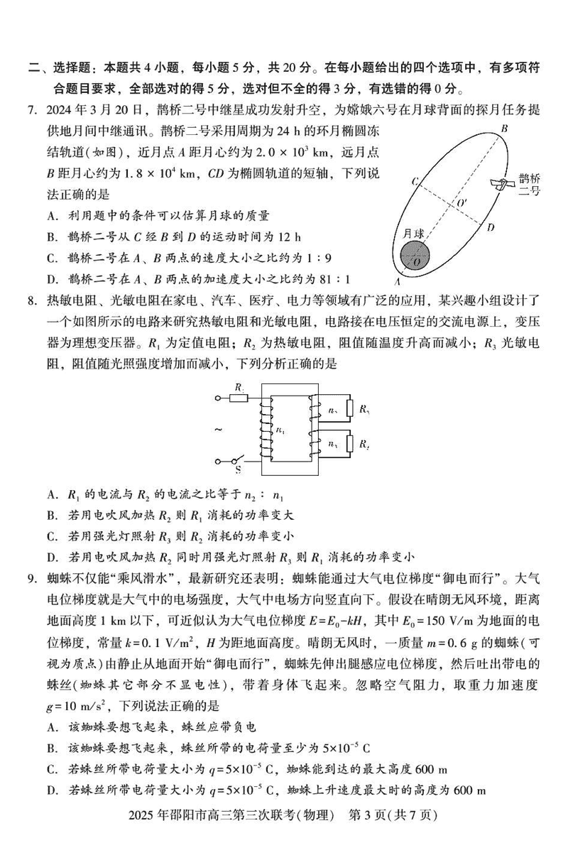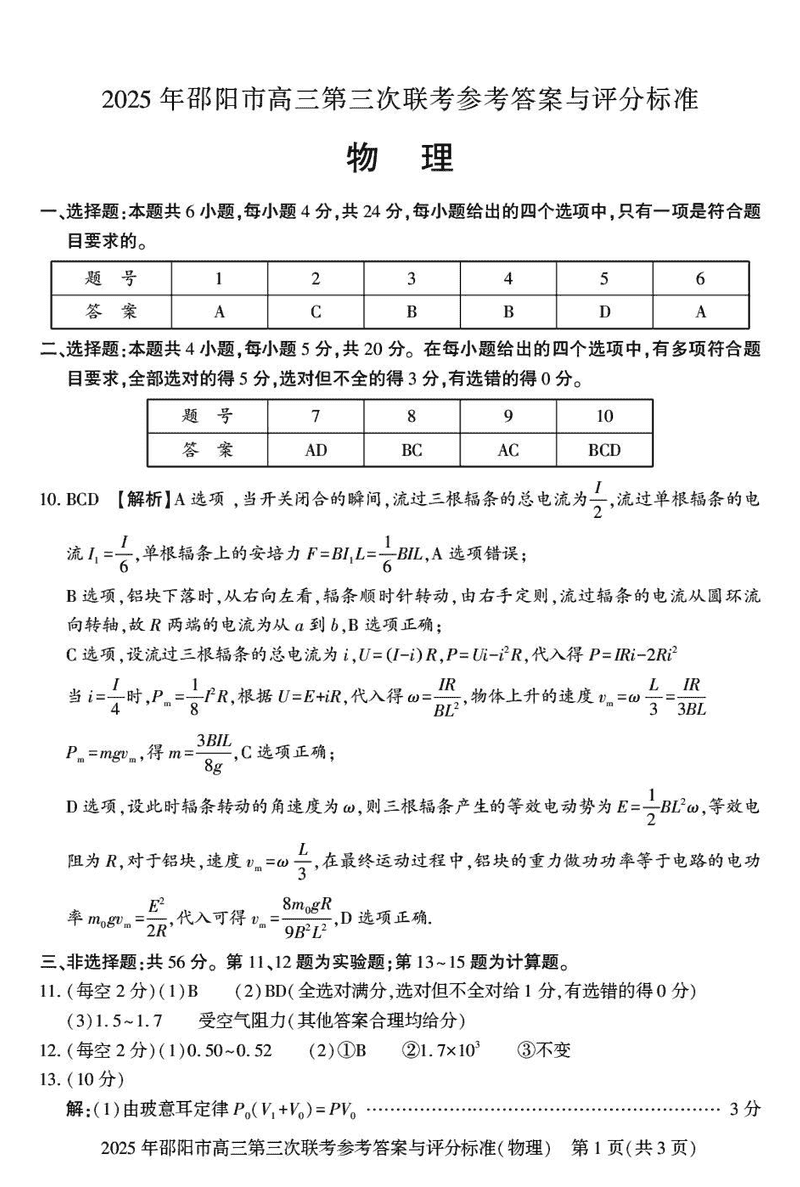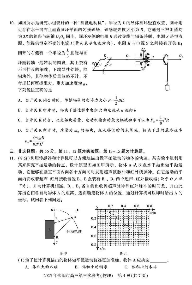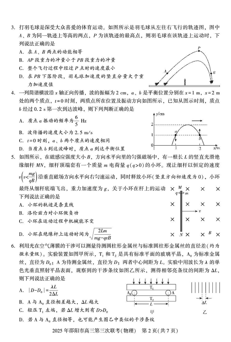 2025年邵阳市高三第三次联考物理试题及答案 时间:2025-05-24 湖南 理综试题 2025年邵阳市高三第三次联考物理考试已于近日开考,为方便考生考后及时查看考试情况,查漏补缺、弥补不足,本文整理了试题答案解析相关信息! 汇总:2025年邵阳市高三第三次联考试题及答案汇总 物理试题及答案解析