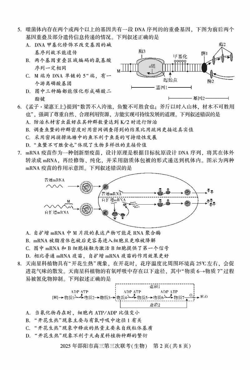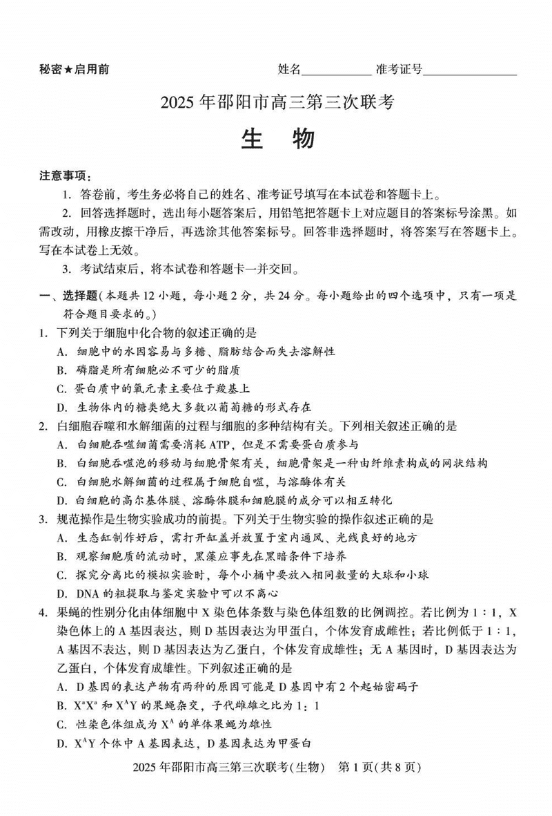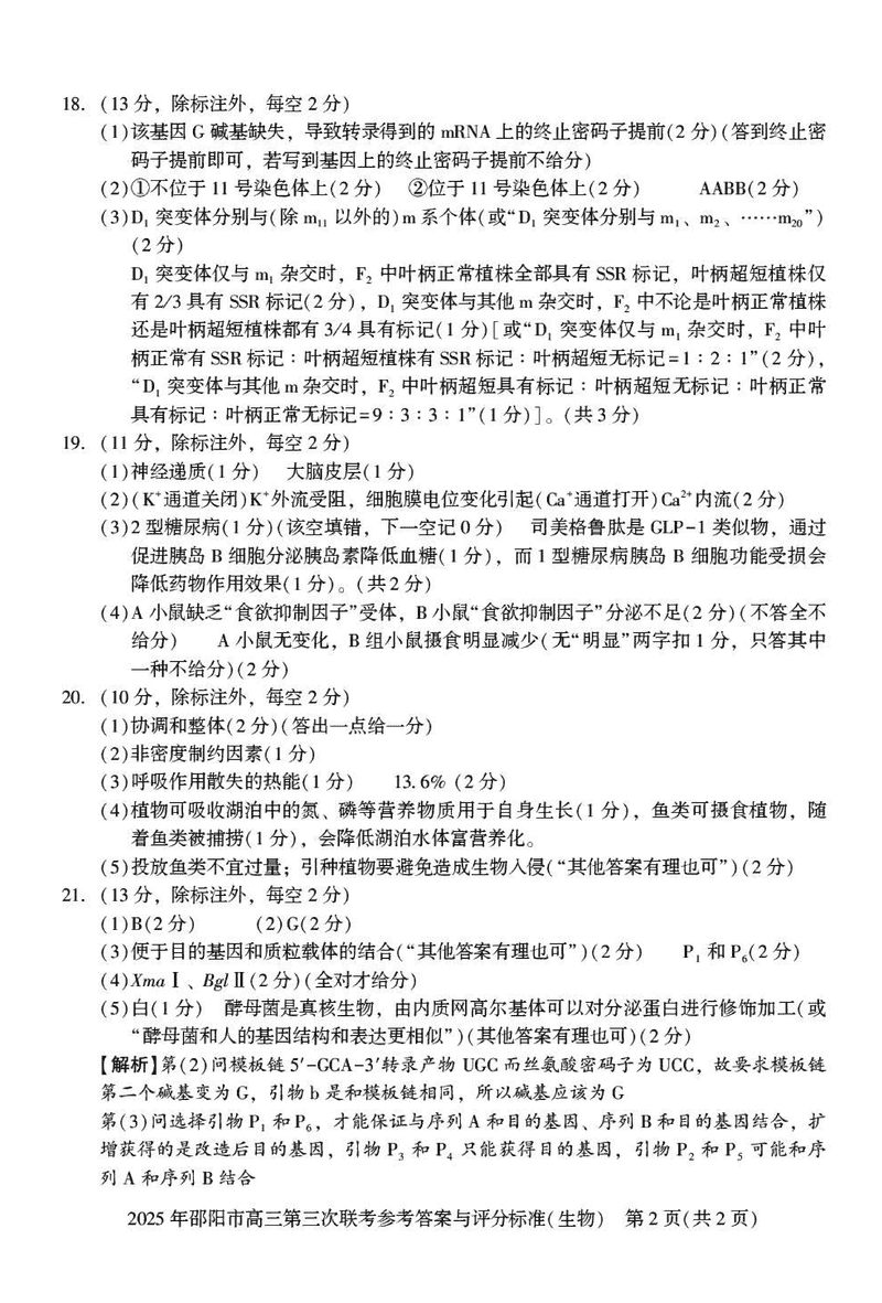 2025年邵阳市高三第三次联考生物试题及答案 时间:2025-05-24 湖南 理综试题 2025年邵阳市高三第三次联考生物考试已于近日开考,为方便考生考后及时查看考试情况,查漏补缺、弥补不足,本文整理了试题答案解析相关信息! 汇总:2025年邵阳市高三第三次联考试题及答案汇总 生物试题及答案解析
