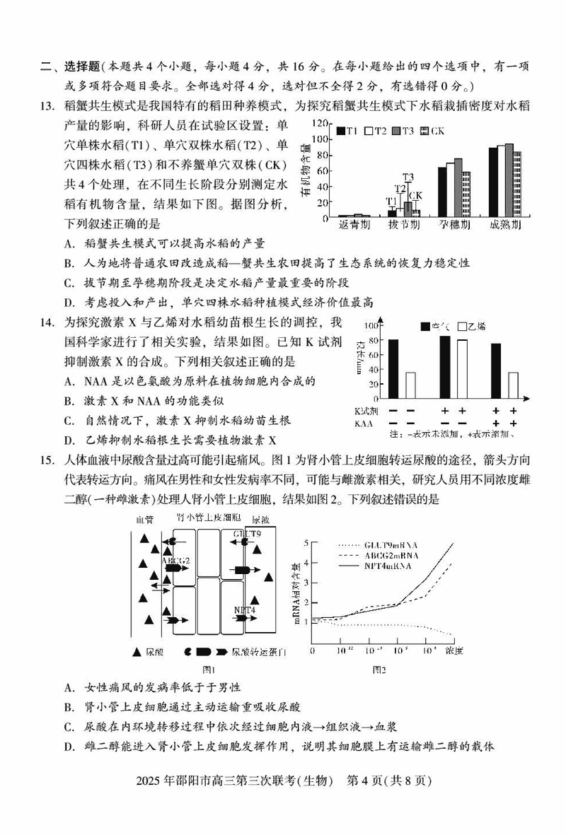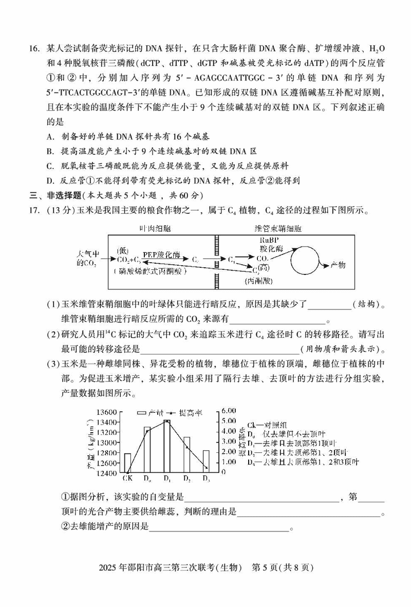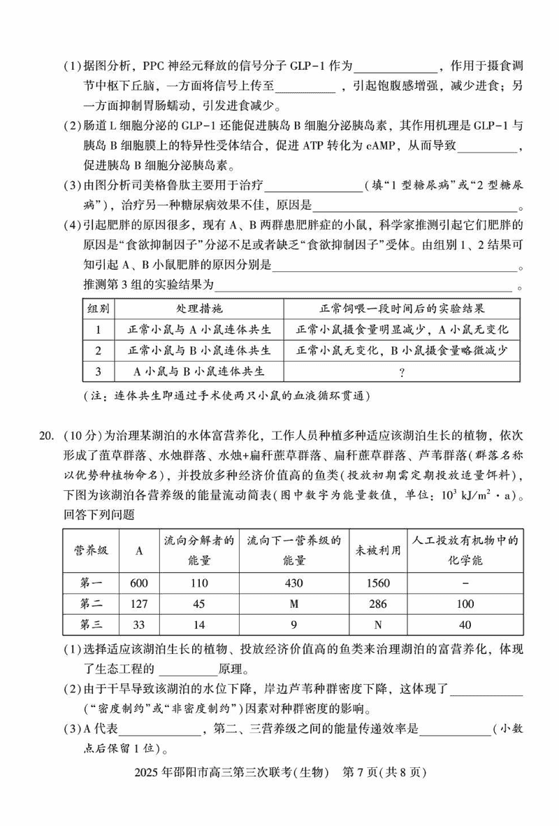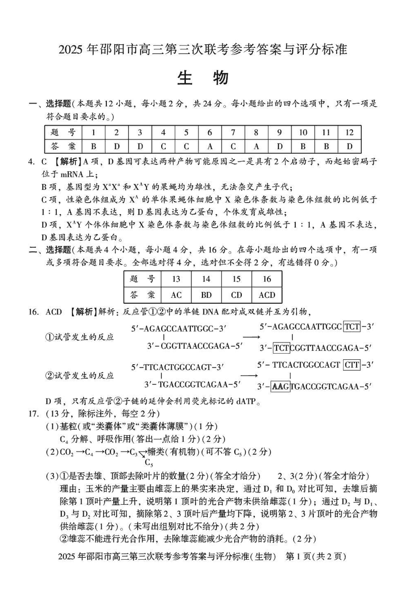 2025年邵阳市高三第三次联考生物试题及答案 时间:2025-05-24 湖南 理综试题 2025年邵阳市高三第三次联考生物考试已于近日开考,为方便考生考后及时查看考试情况,查漏补缺、弥补不足,本文整理了试题答案解析相关信息! 汇总:2025年邵阳市高三第三次联考试题及答案汇总 生物试题及答案解析