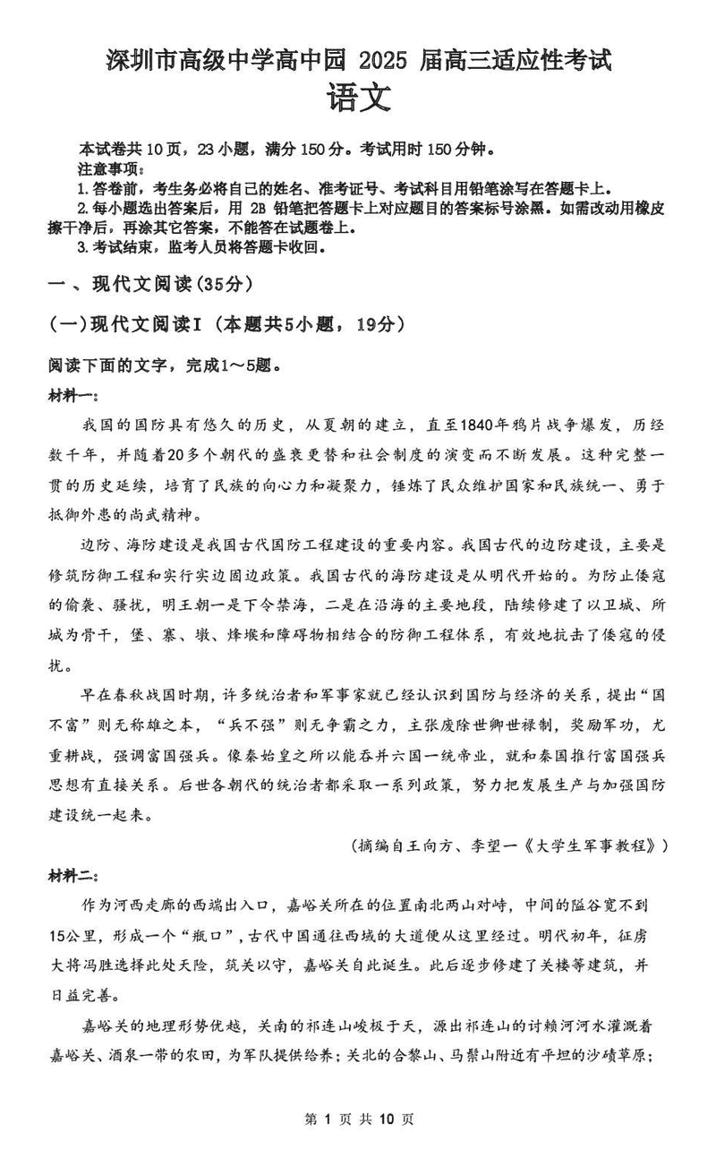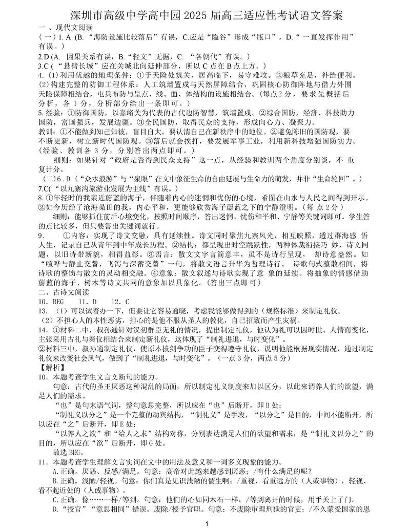 深圳市高级中学2025届高三高考适应性考语文试题及答案 时间:2025-05-24 广东 语文试题 深圳市高级中学2025届高三高考适应性考语文考试已于近日开考,为方便考生考后及时查看考试情况,查漏补缺、弥补不足,本文整理了试题答案解析相关信息! 汇总:深圳市高级中学2025届高三适应性考试试题及答案汇总 语文试题及答案解析