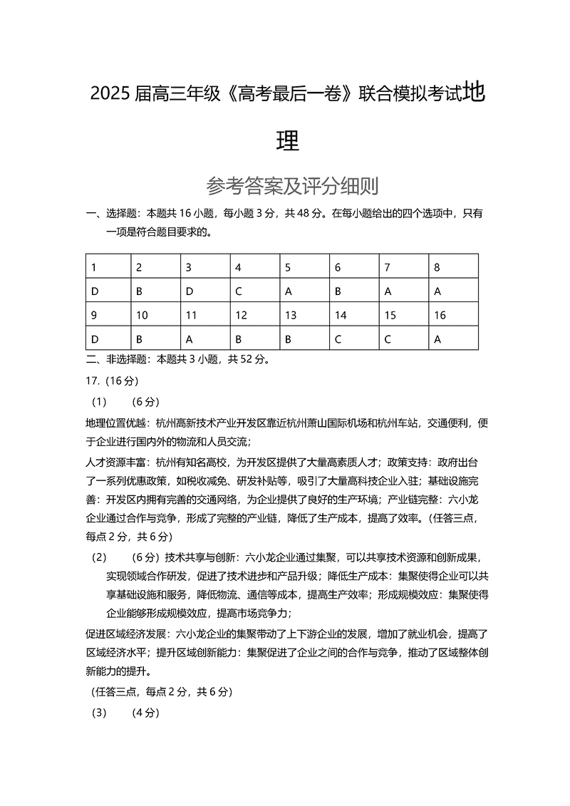 东三省名校联盟2025届高三最后一卷联考地理试题及答案