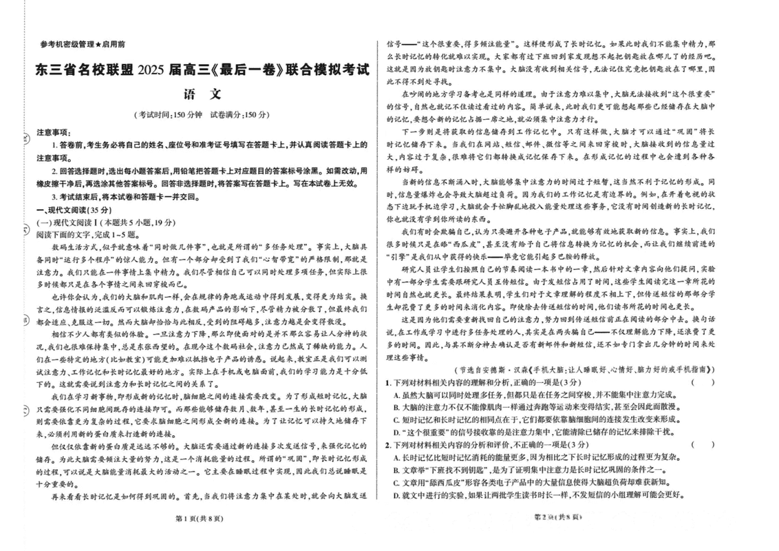东三省名校联盟2025届高三最后一卷联考语文试题及答案