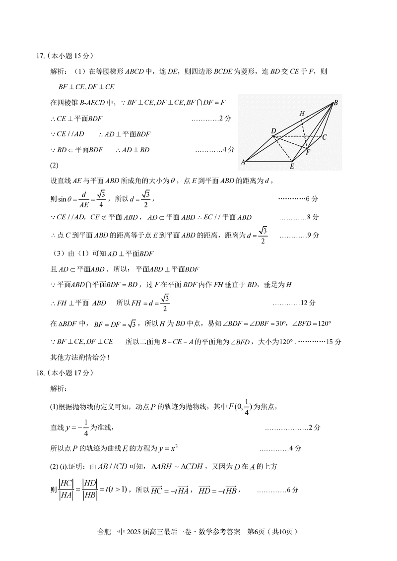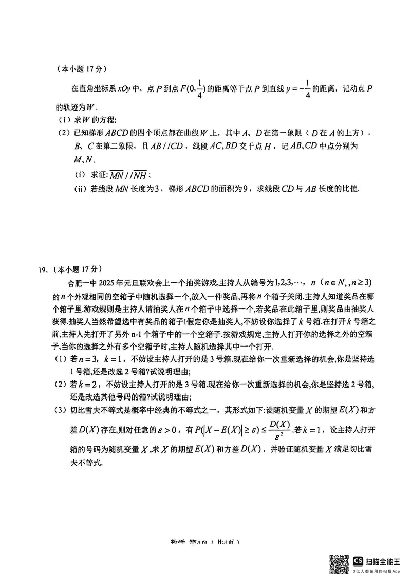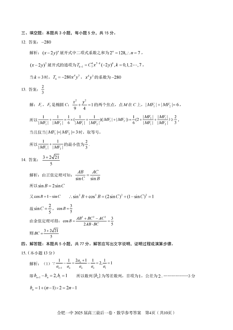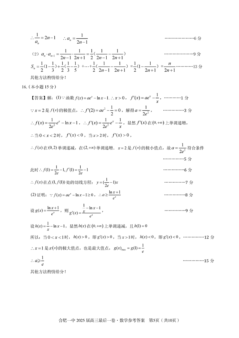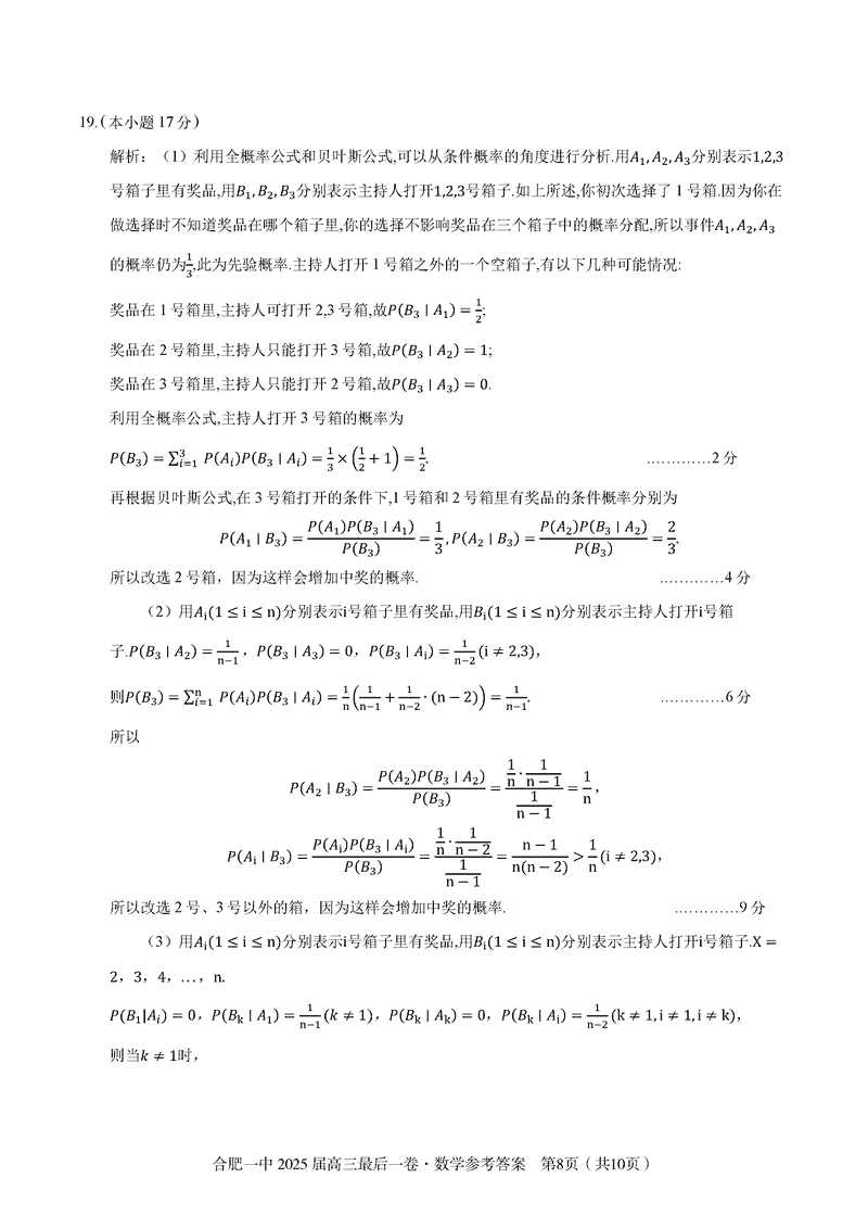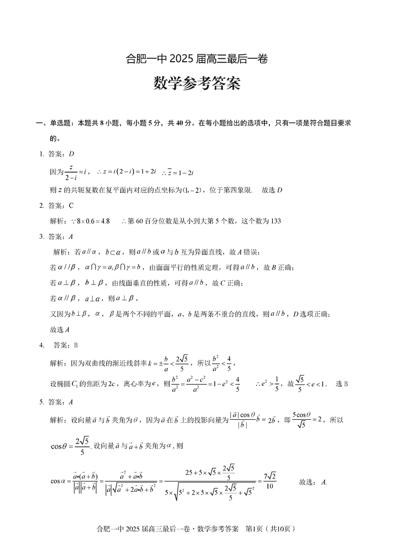 2025年合肥一中最后一卷数学试题及答案 时间:2025-05-26 安徽 数学试题 2025年合肥一中最后一卷数学考试已于近日开考,为方便考生考后及时查看考试情况,查漏补缺、弥补不足,本文整理了试题答案解析相关信息! 汇总:安徽省合肥一中2025届高三最后一卷试题及答案汇总 数学试题及答案解析