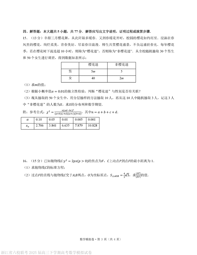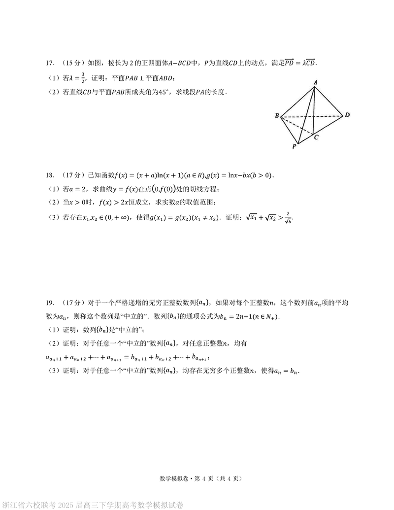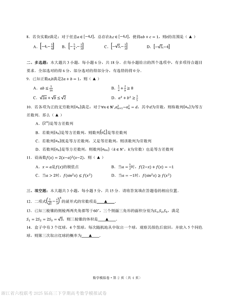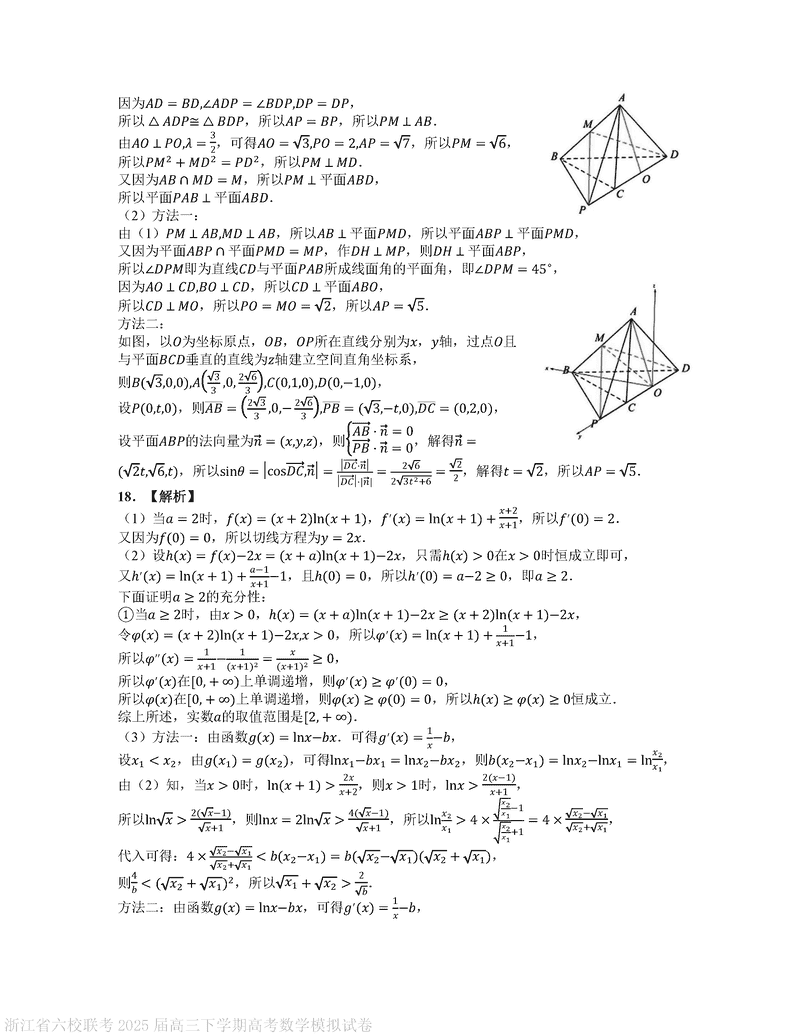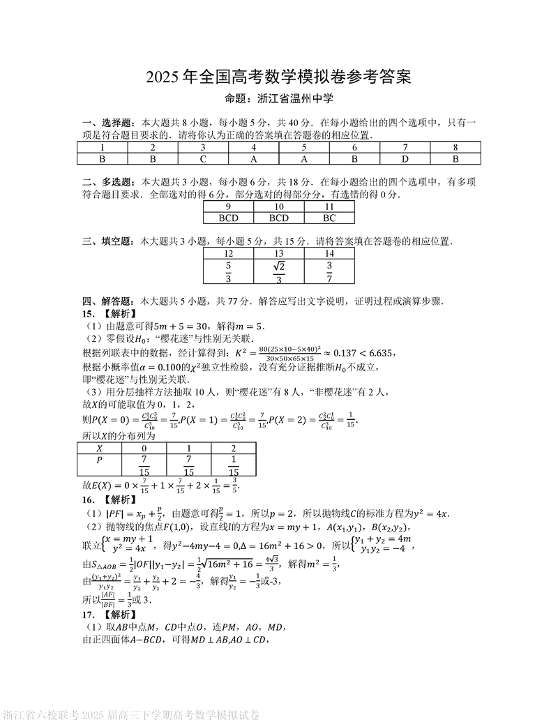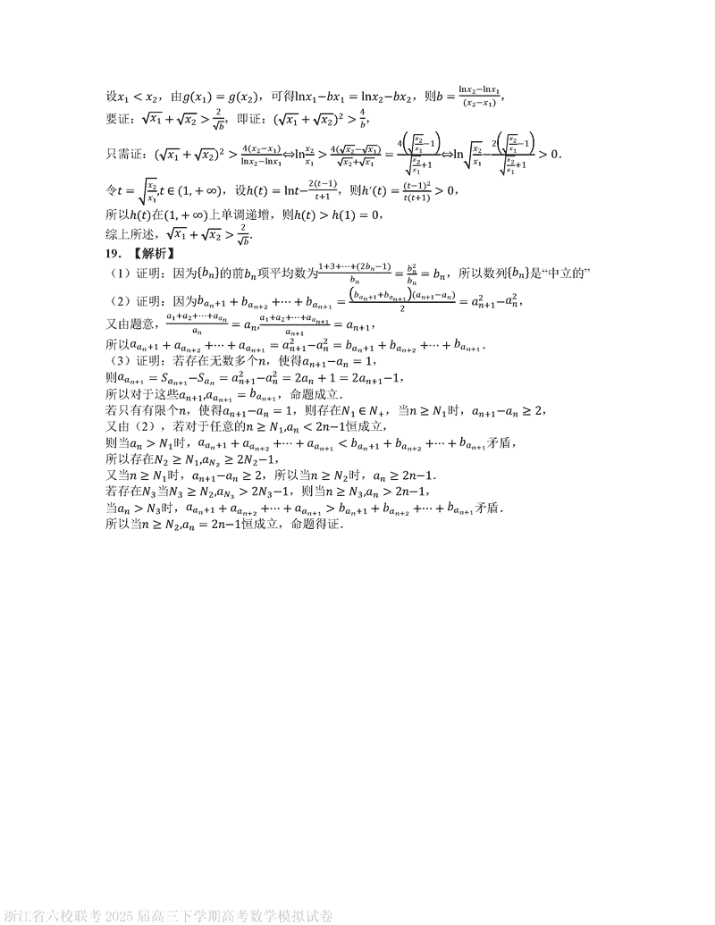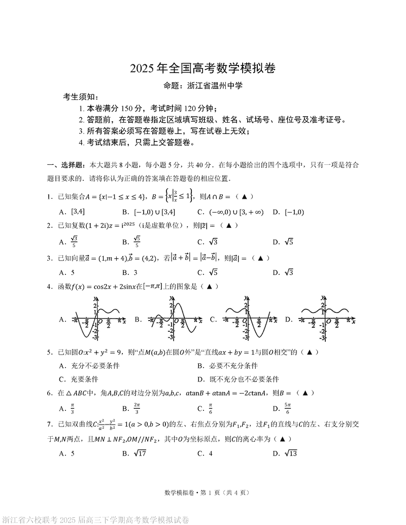 浙江六校联考2025届高三高考模拟数学试题及答案 时间:2025-05-26 浙江 数学试题 浙江省六校联考2025届高三高考模拟数学考试已于近日开考,为方便考生考后及时查看考试情况,查漏补缺、弥补不足,本文整理了试题答案解析相关信息! 汇总:浙江省六校联盟2025届高三5月模拟卷试题及答案汇总 数学试题及答案解析