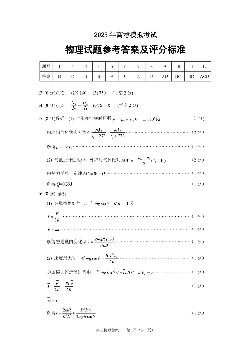 济宁三模2025年高考模拟物理试题及答案 时间:2025-05-24 山东 理综试题 济宁三模2025年高考模拟物理考试已于近日开考,为方便考生考后及时查看考试情况,查漏补缺、弥补不足,本文整理了试题答案解析相关信息! 汇总:济宁三模2025年高考模拟考试试题及答案汇总 物理试题及答案解析