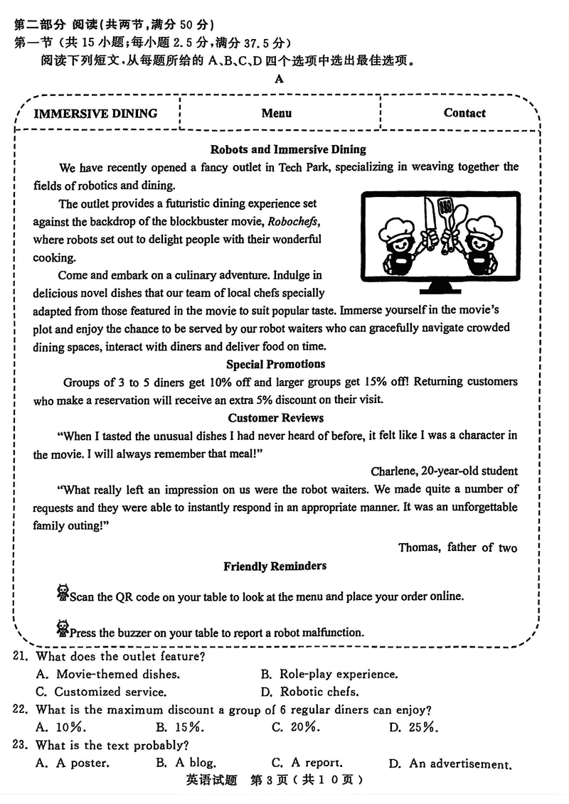 济宁三模2025年高考模拟英语试题及答案 时间:2025-05-24 山东 英语试题 济宁三模2025年高考模拟英语考试已于近日开考,为方便考生考后及时查看考试情况,查漏补缺、弥补不足,本文整理了试题答案解析相关信息! 汇总:济宁三模2025年高考模拟考试试题及答案汇总 英语试题及答案解析