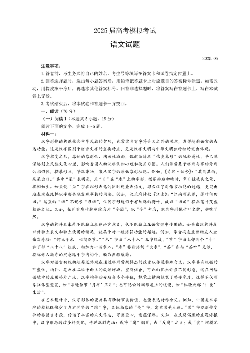 济宁三模2025年高考模拟语文试题及答案 时间:2025-05-24 山东 语文试题 济宁三模2025年高考模拟语文考试已于近日开考,为方便考生考后及时查看考试情况,查漏补缺、弥补不足,本文整理了试题答案解析相关信息! 汇总:济宁三模2025年高考模拟考试试题及答案汇总 语文试题及答案解析