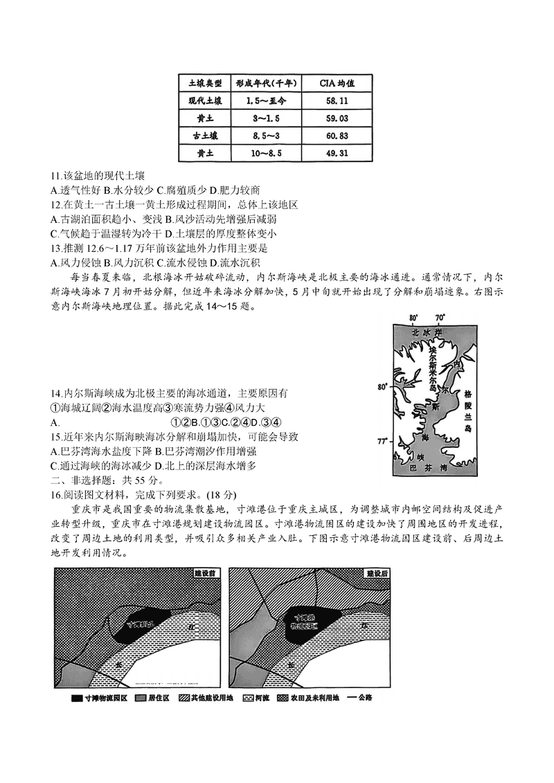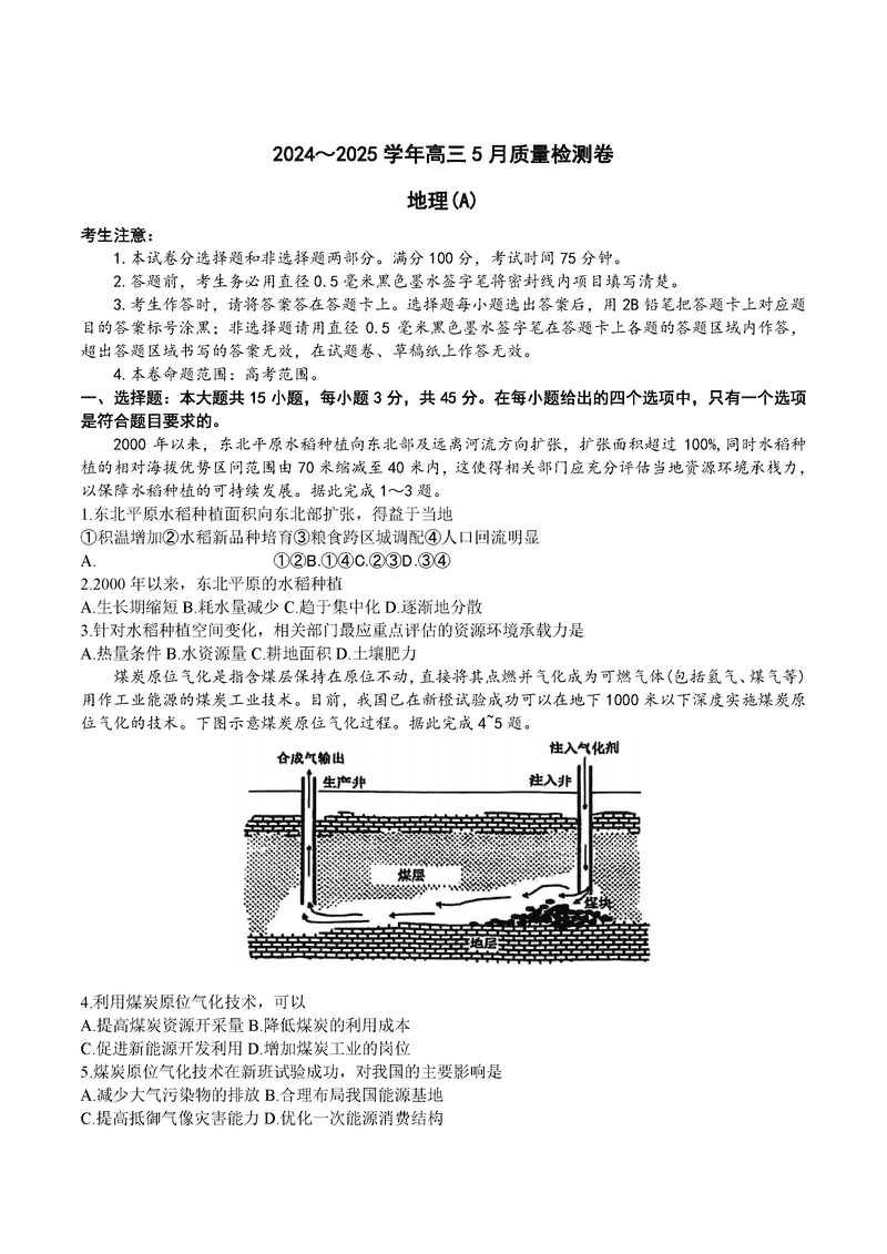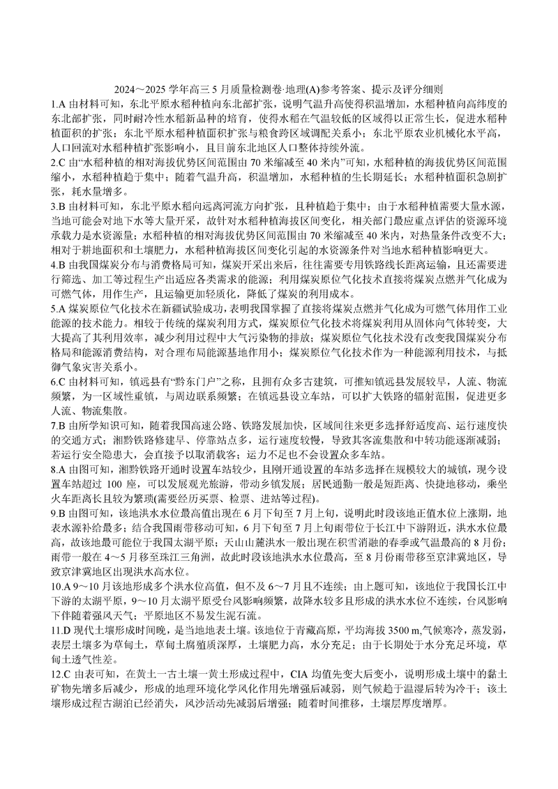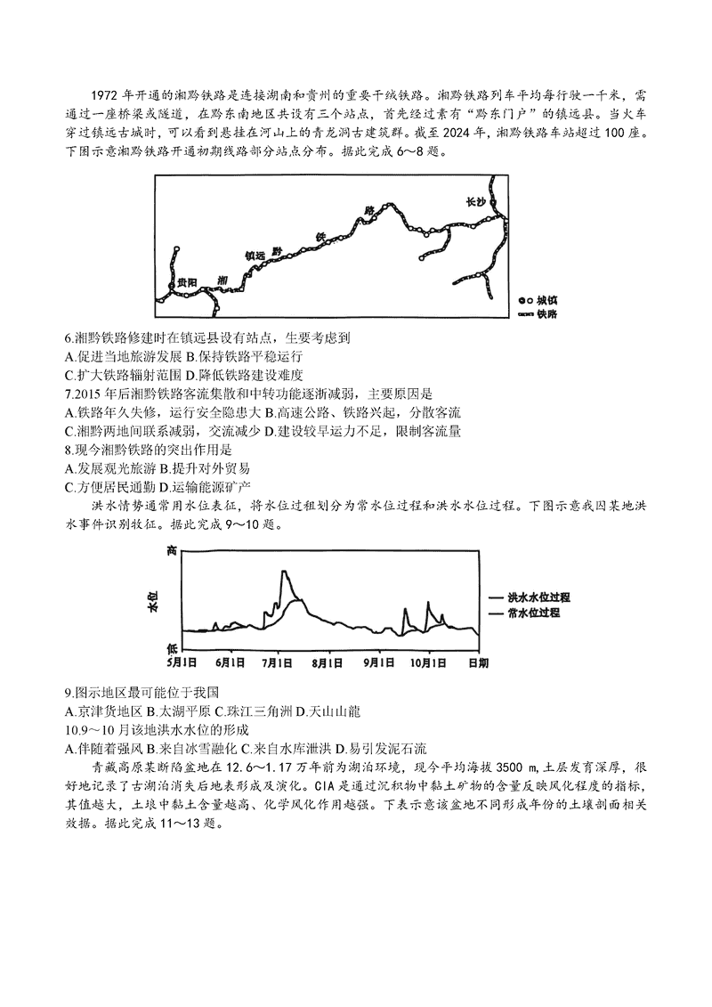 山西三晋卓越联盟2025年高三5月质检地理试题及答案