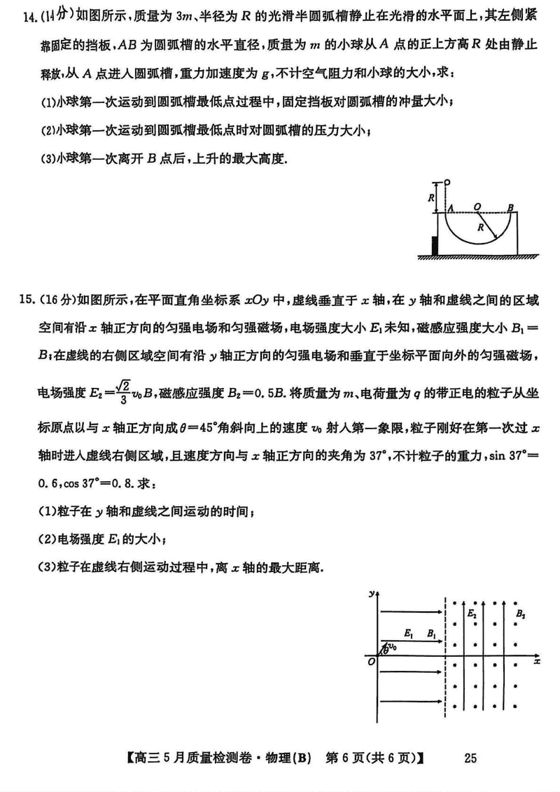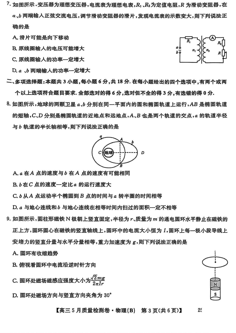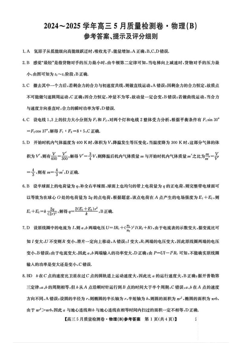 山西三晋卓越联盟2025年高三5月质检物理试题及答案