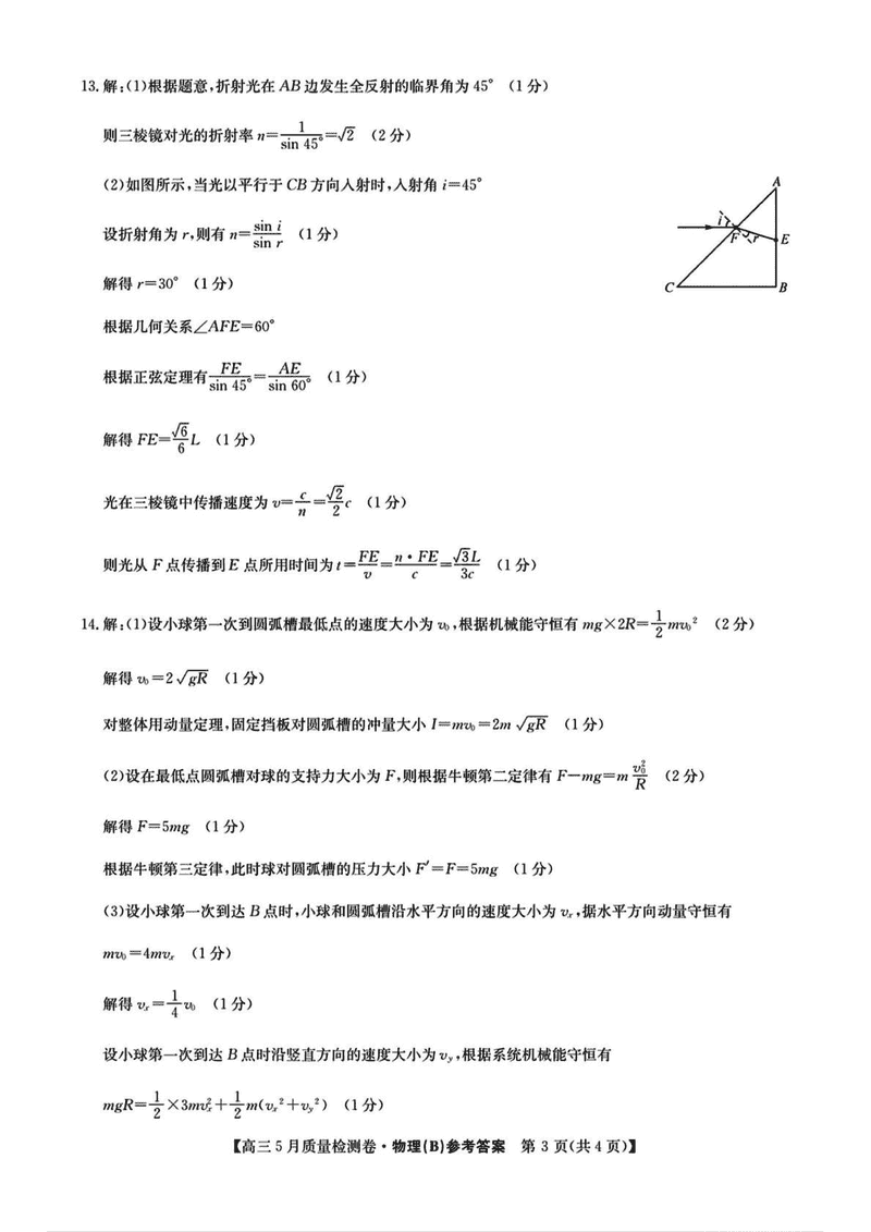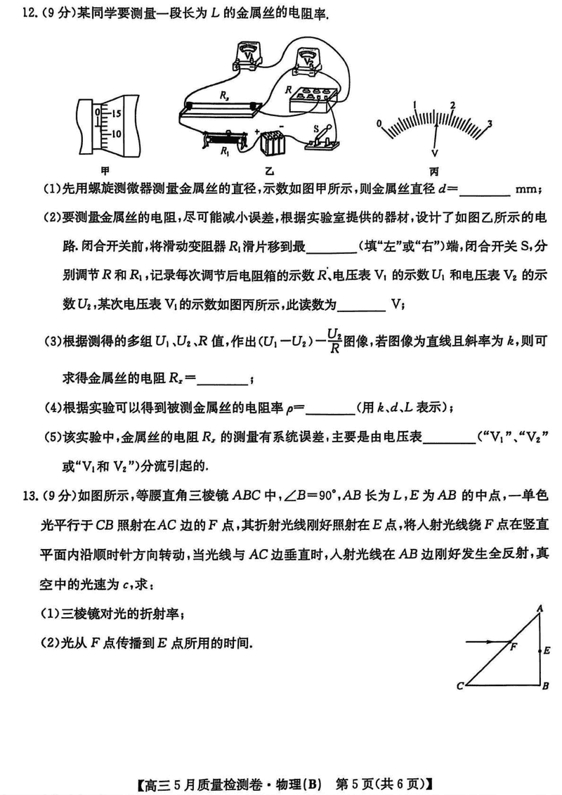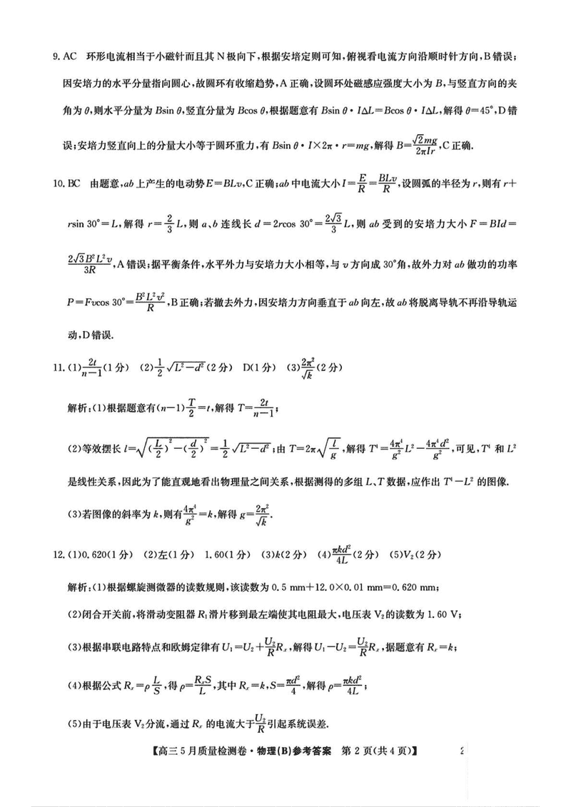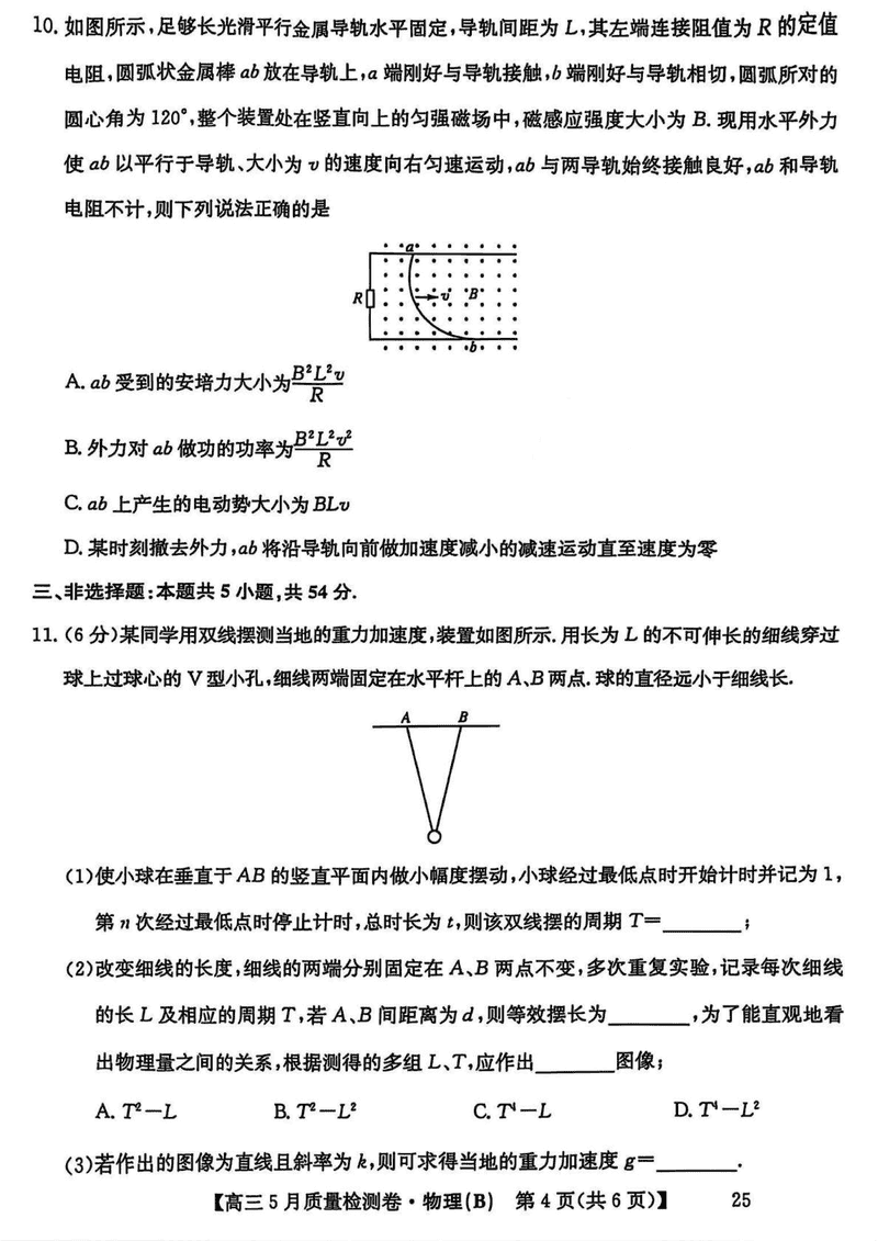 山西三晋卓越联盟2025年高三5月质检物理试题及答案