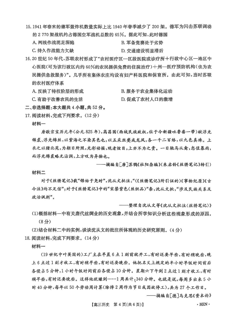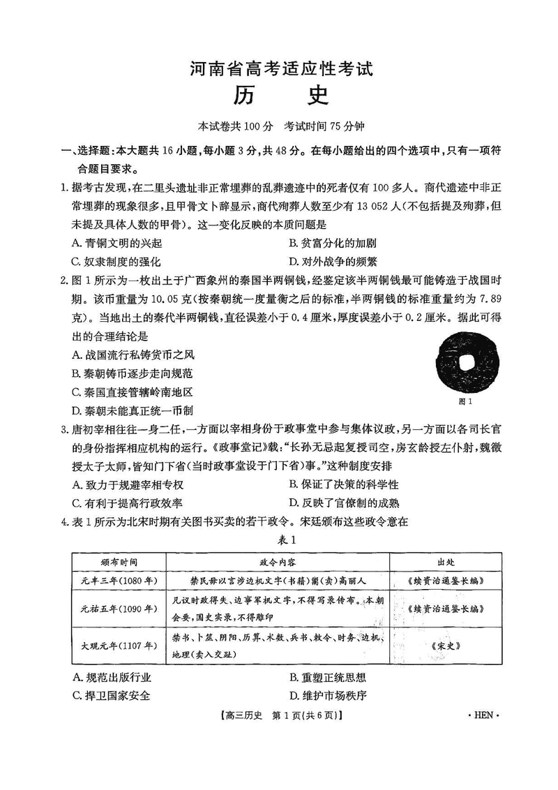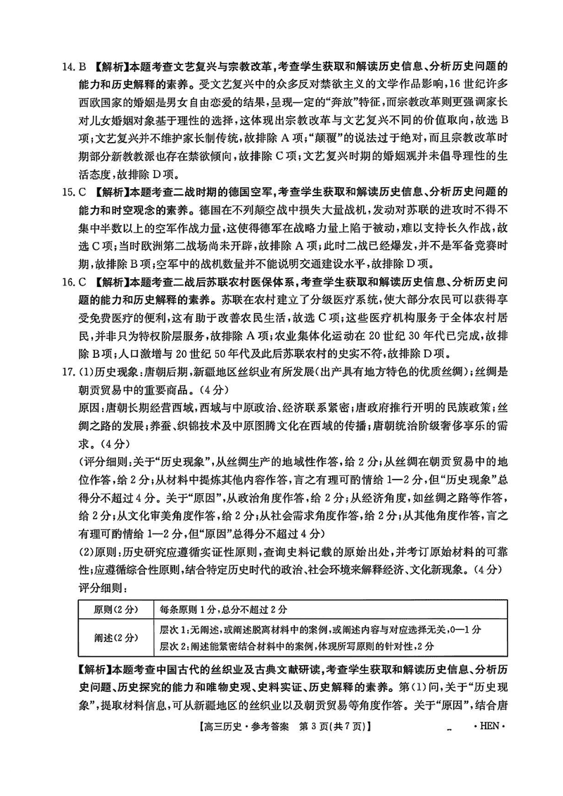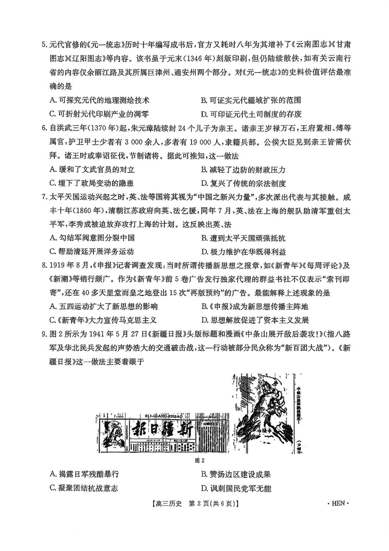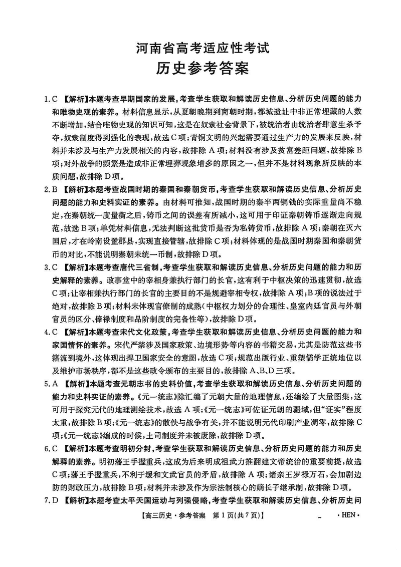 河南创新发展联盟三模2025届高考适应性历史试题及答案