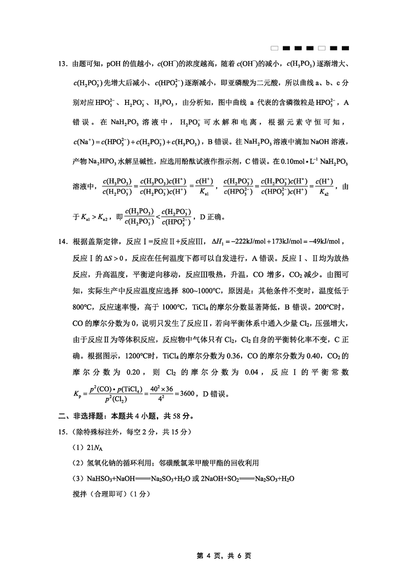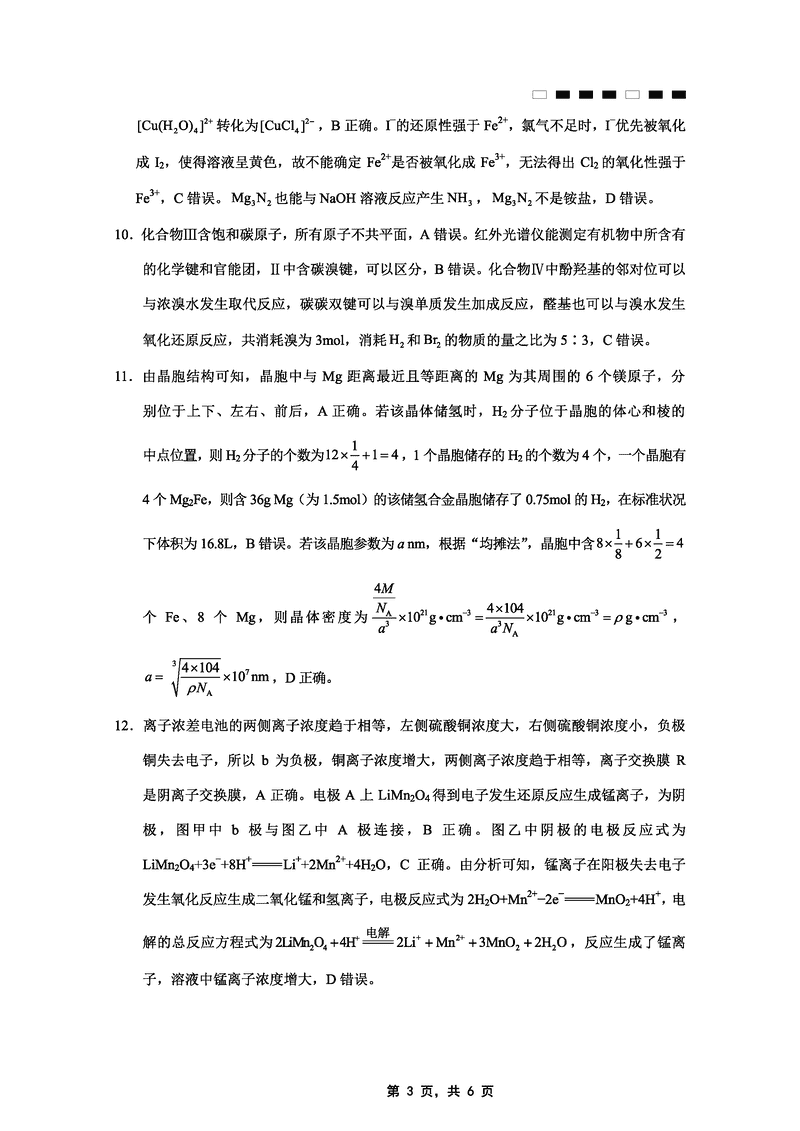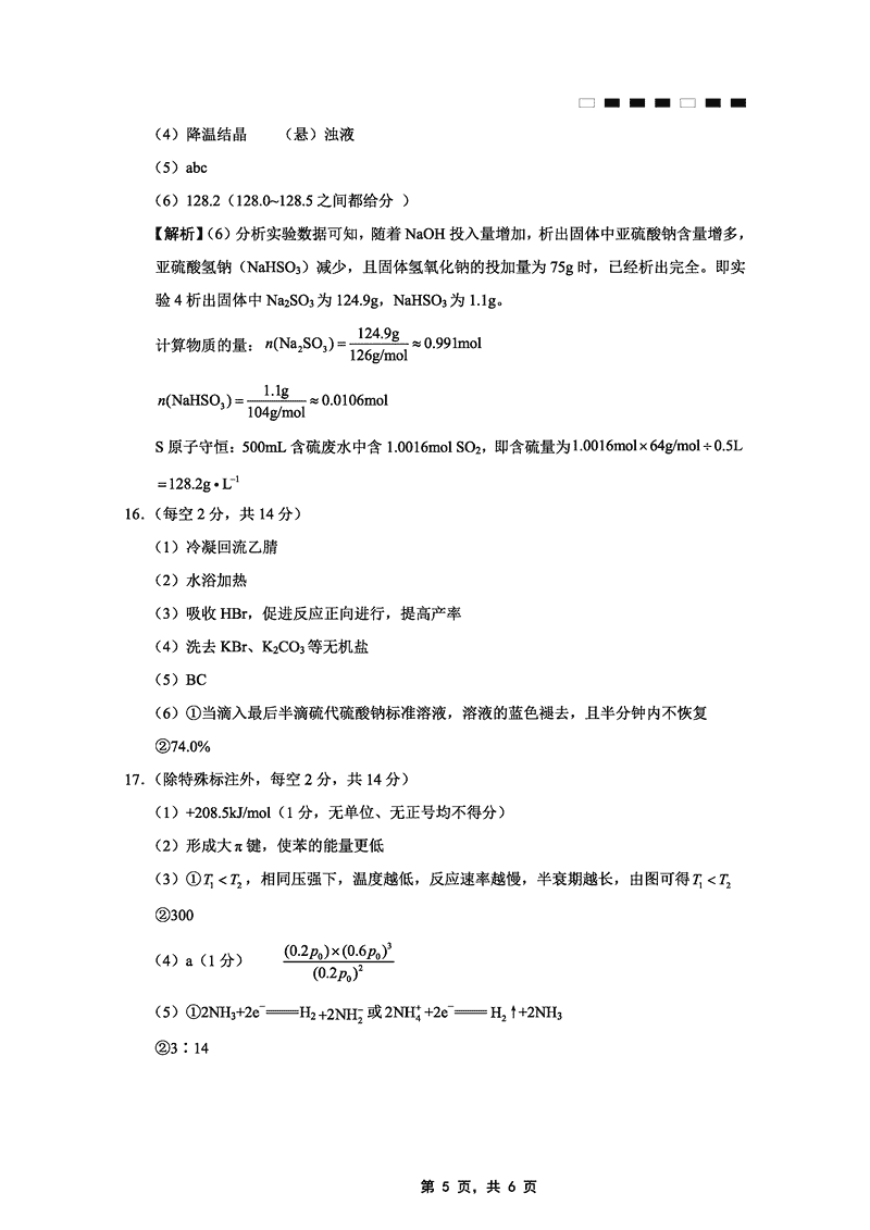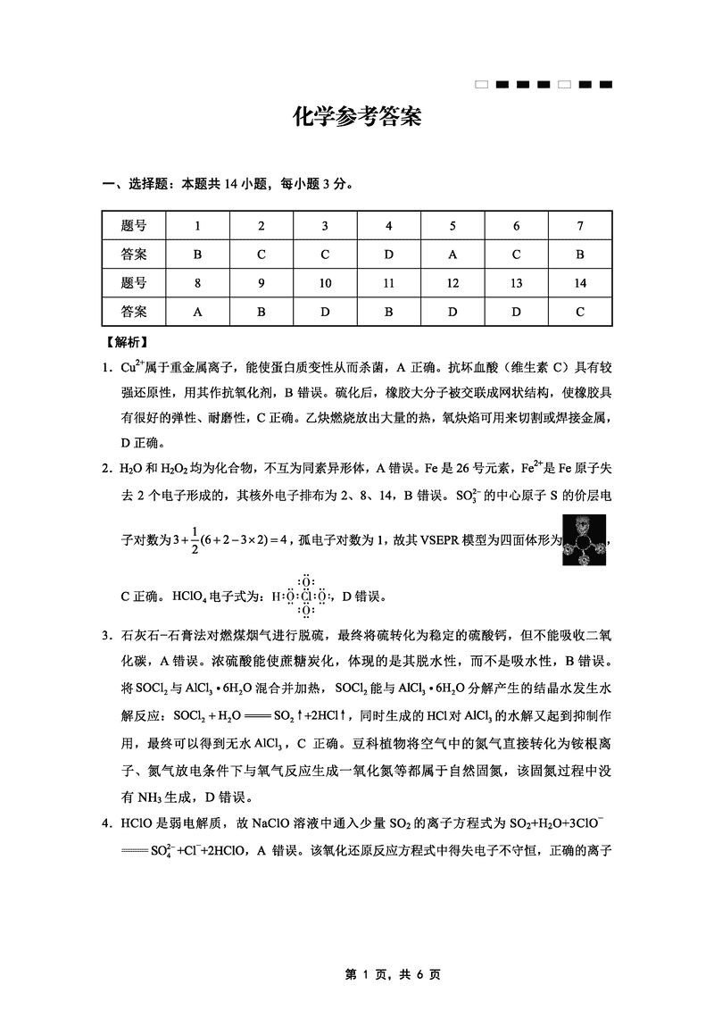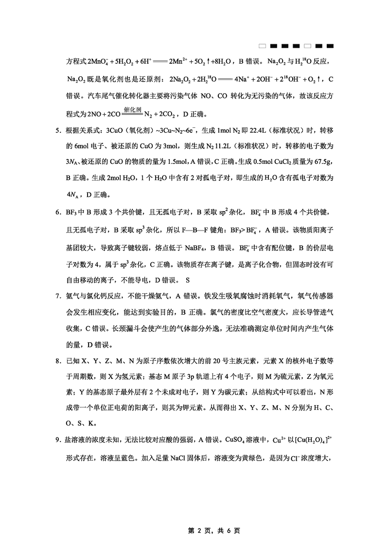 化学试题及答案解析