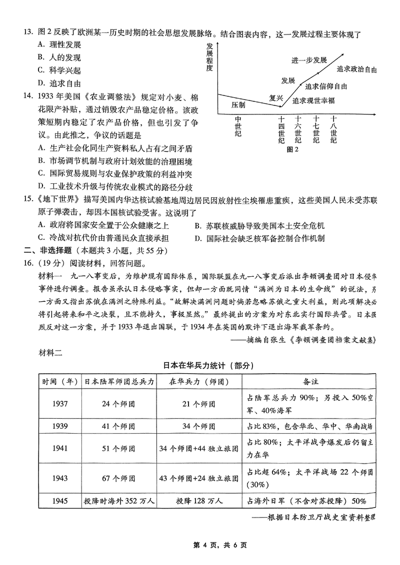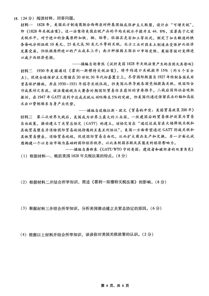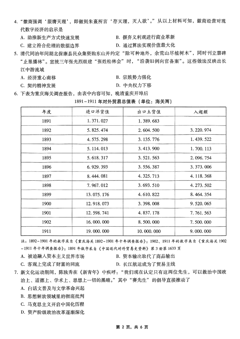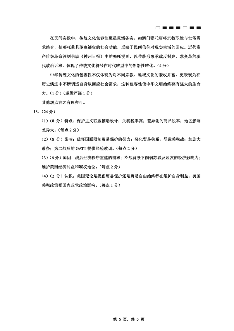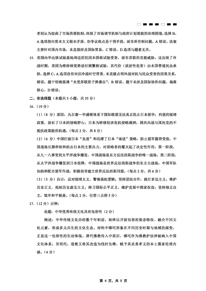 重庆巴蜀中学2025届高考适应性月考卷九历史试题及答案