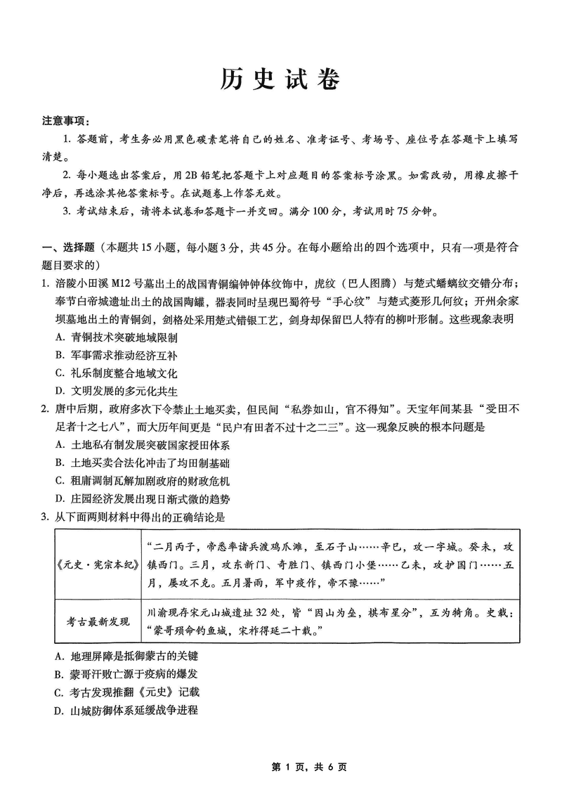 重庆巴蜀中学2025届高考适应性月考卷九历史考试已于近日开考,为方便考生考后及时查看考试情况,查漏补缺、弥补不足,本文整理了试题答案解析相关信息!