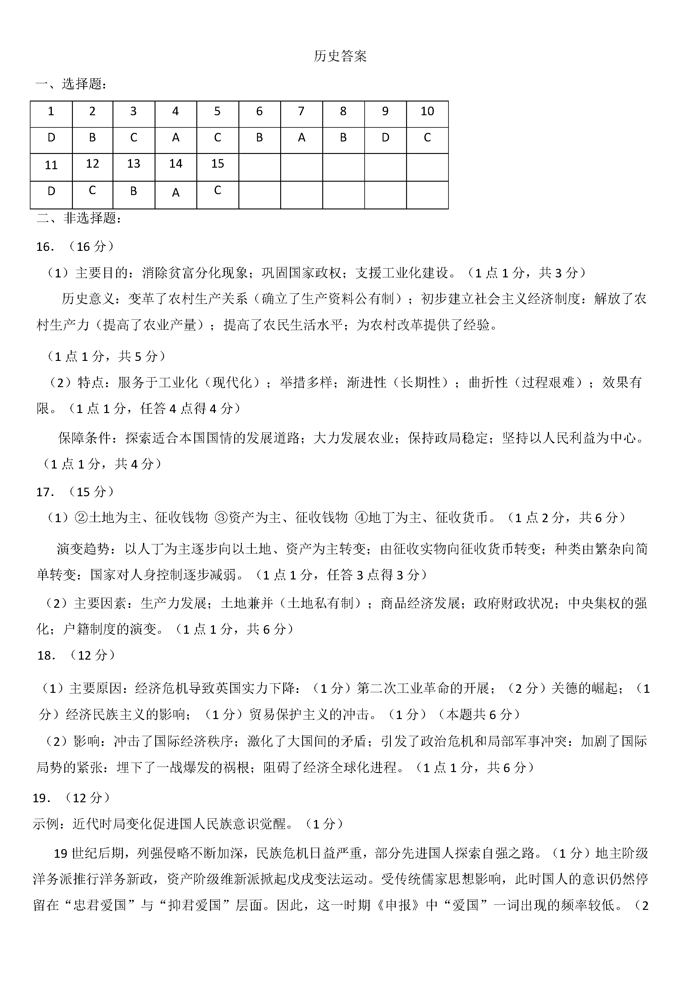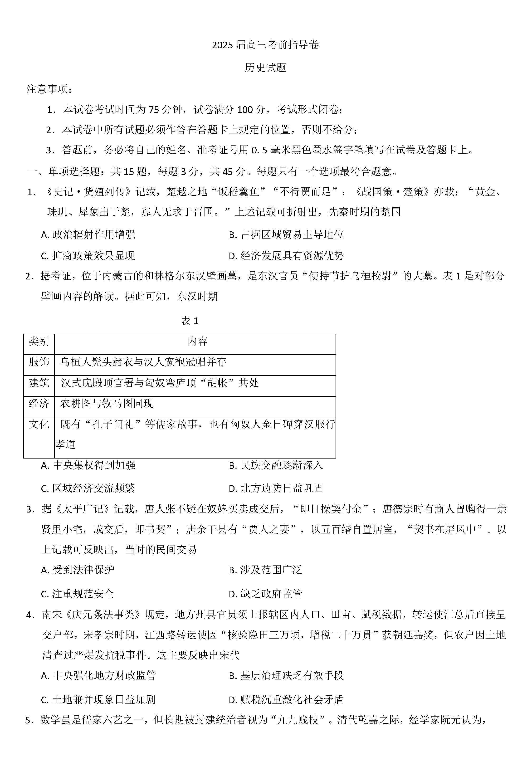 2025届江苏盐城高三下学期考前指导卷历史试题及答案