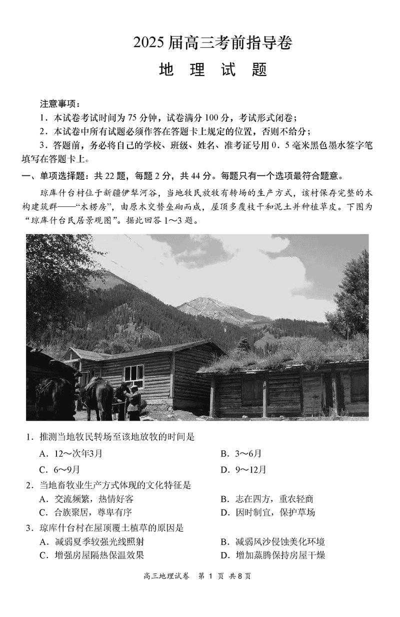 2025届江苏盐城高三下学期考前指导卷地理试题及答案