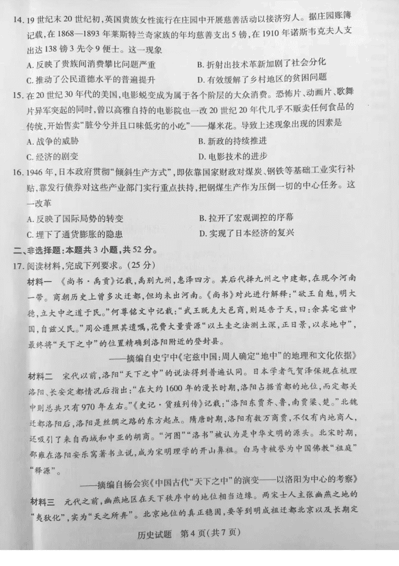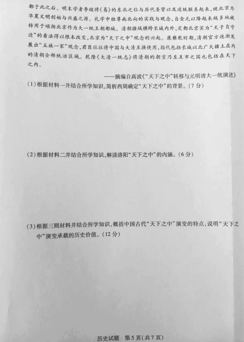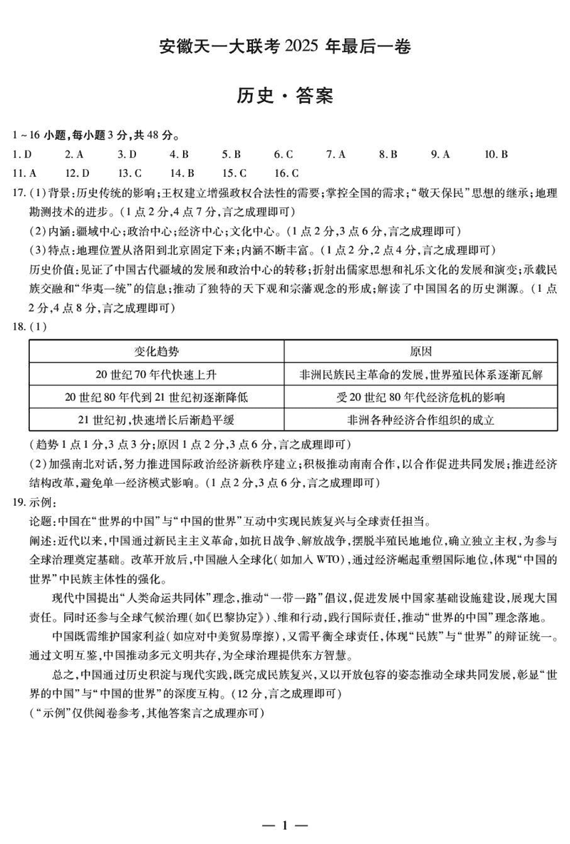 安徽天一大联考2025届高三最后一卷历史试题及答案