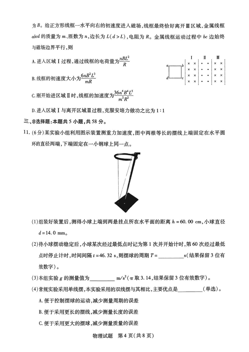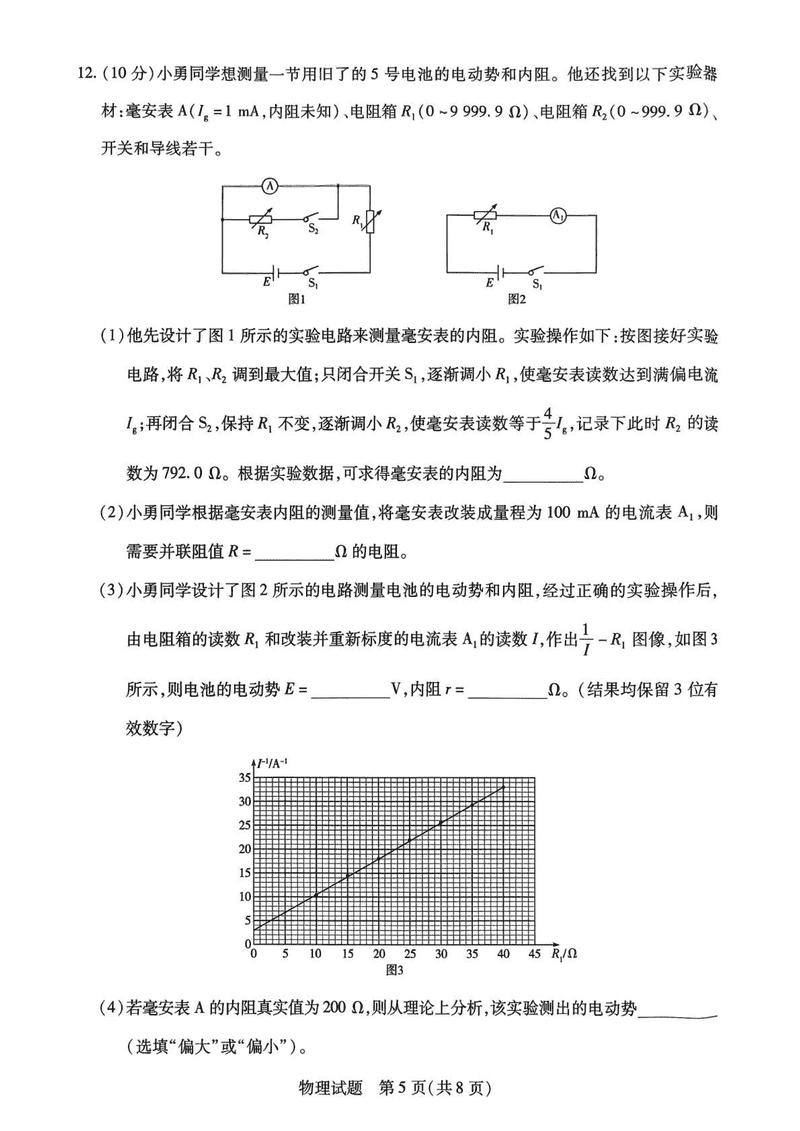 安徽天一大联考2025届高三最后一卷物理试题及答案