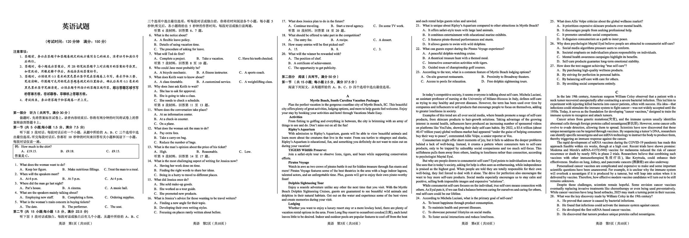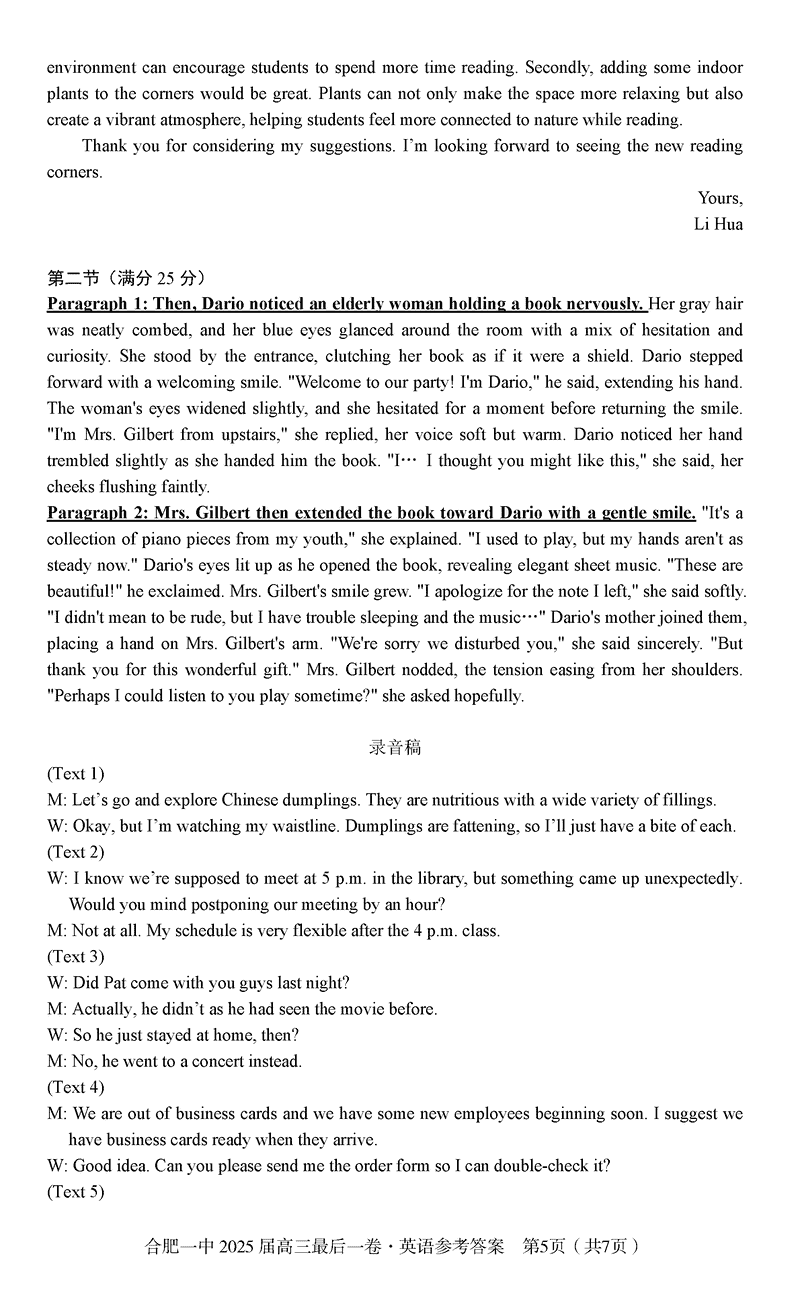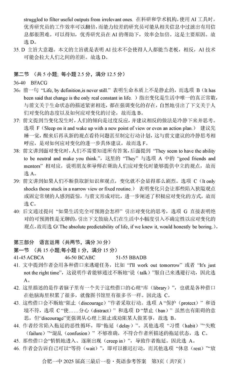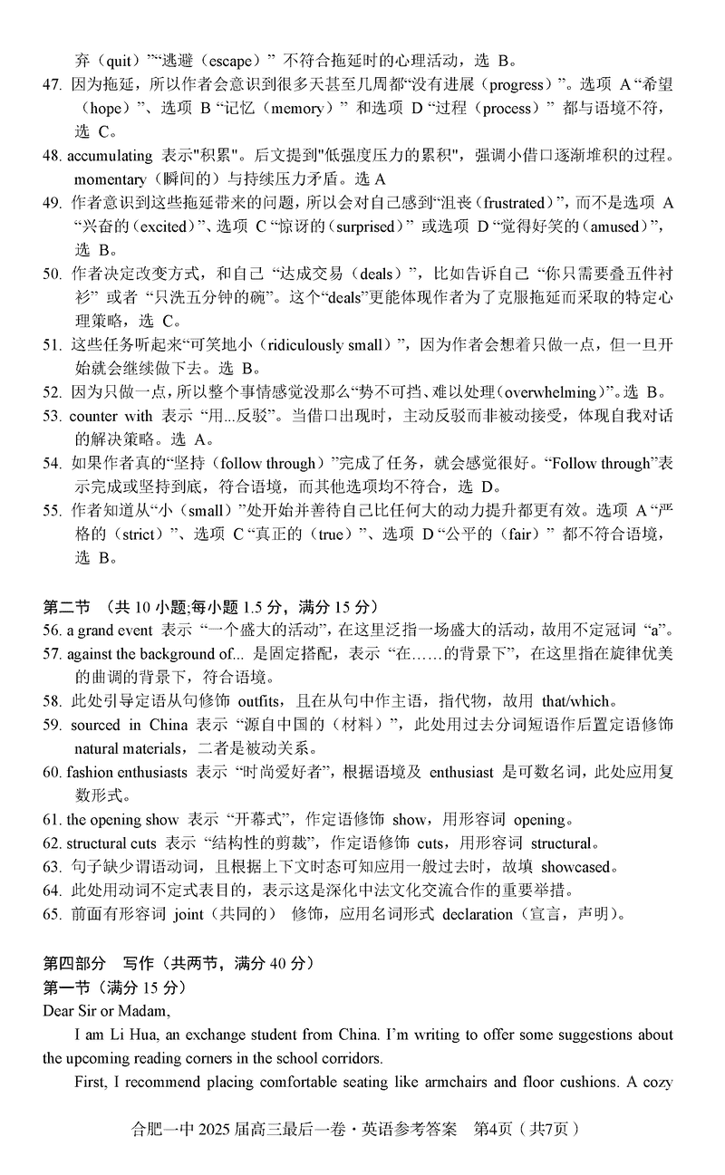2025年合肥一中最后一卷英语试题及答案 时间:2025-05-26 安徽 英语试题 2025年合肥一中最后一卷英语考试已于近日开考,为方便考生考后及时查看考试情况,查漏补缺、弥补不足,本文整理了试题答案解析相关信息! 汇总:安徽省合肥一中2025届高三最后一卷试题及答案汇总 英语试题及答案解析