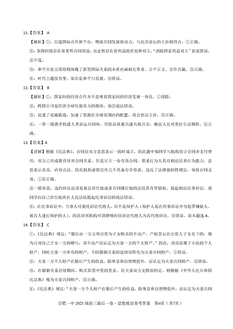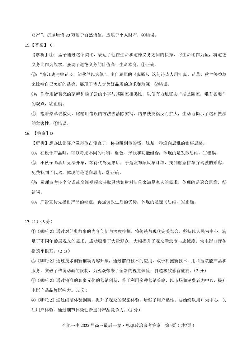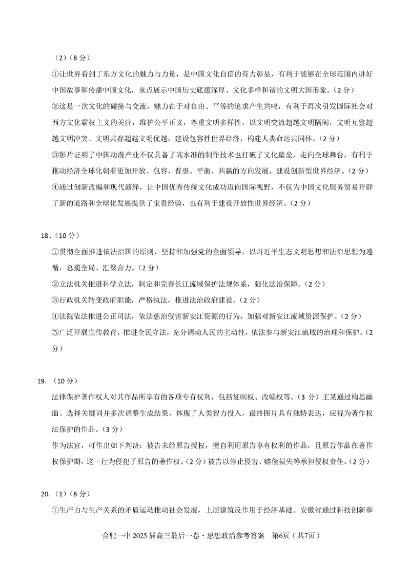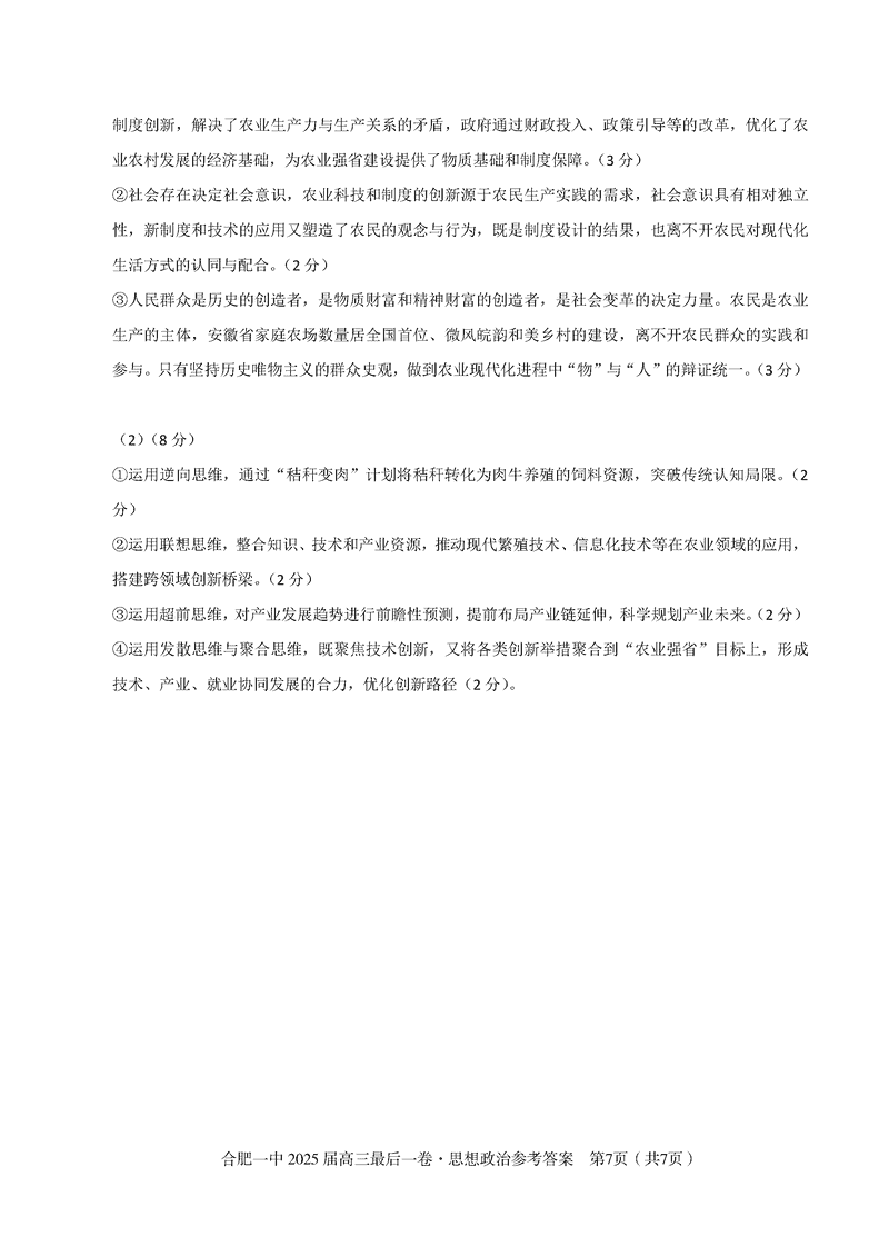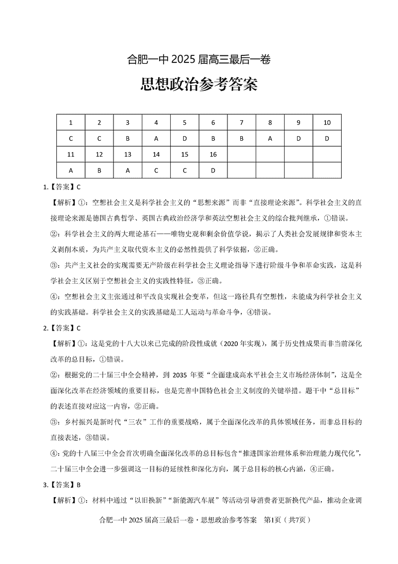2025年合肥一中最后一卷政治试题及答案 时间:2025-05-26 安徽 文综试题 2025年合肥一中最后一卷政治考试已于近日开考,为方便考生考后及时查看考试情况,查漏补缺、弥补不足,本文整理了试题答案解析相关信息! 汇总:安徽省合肥一中2025届高三最后一卷试题及答案汇总 政治试题及答案解析