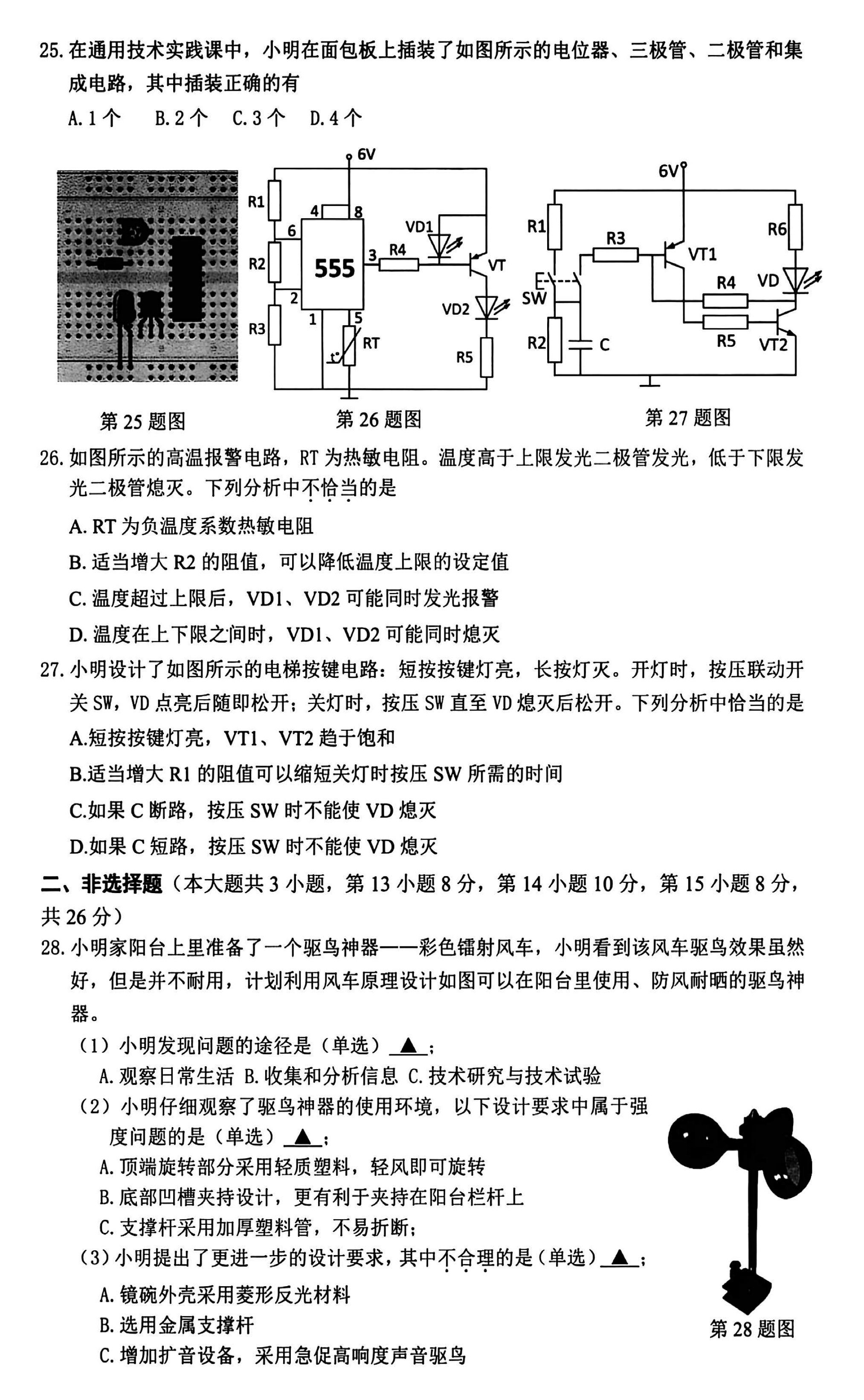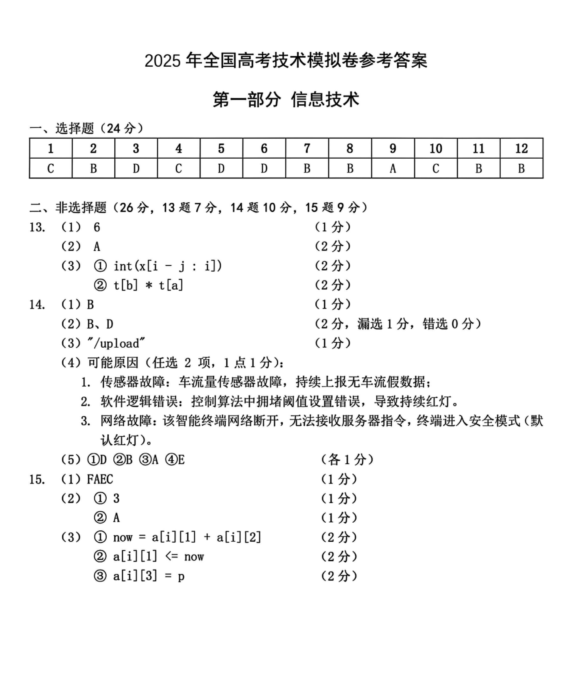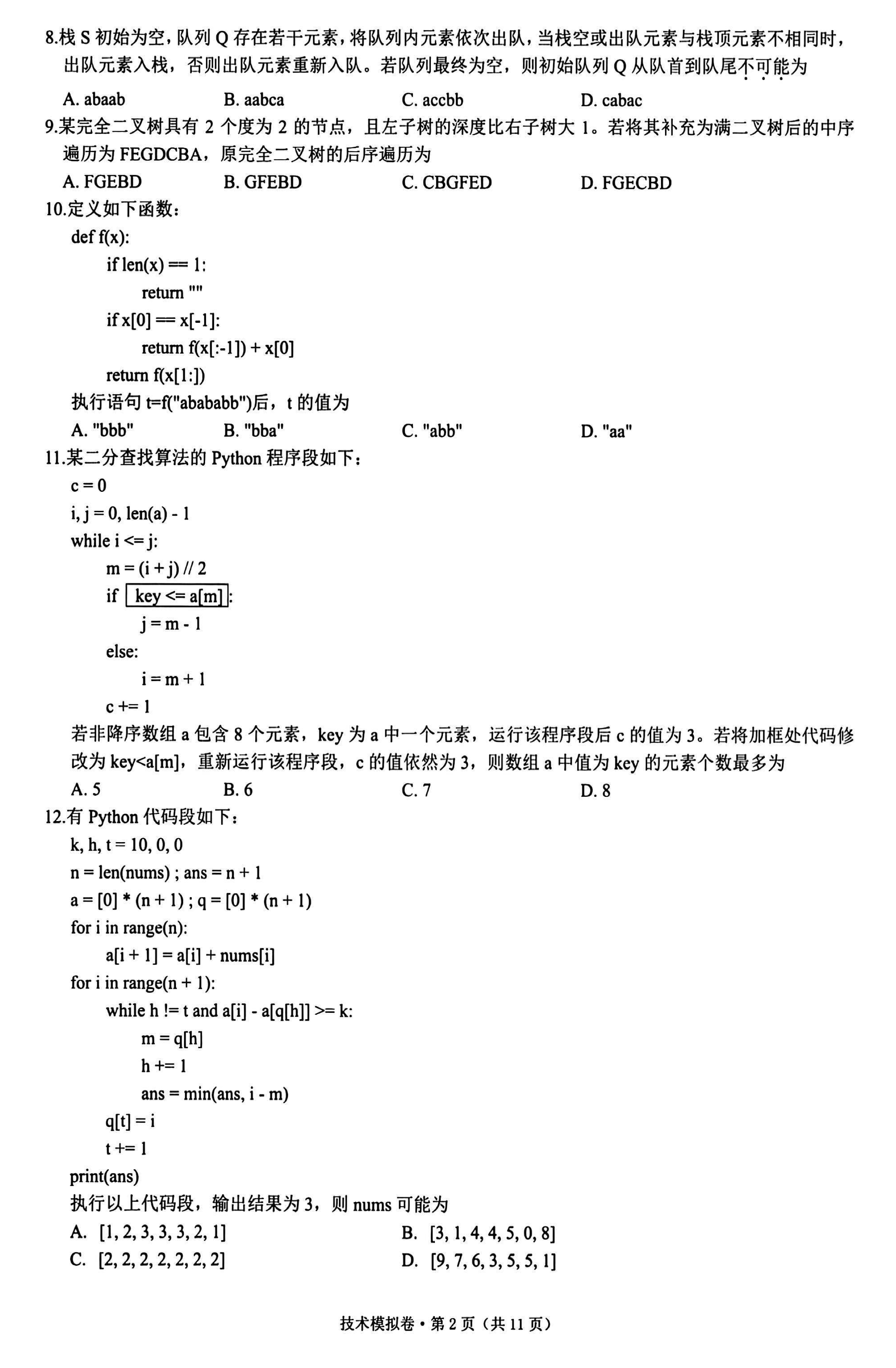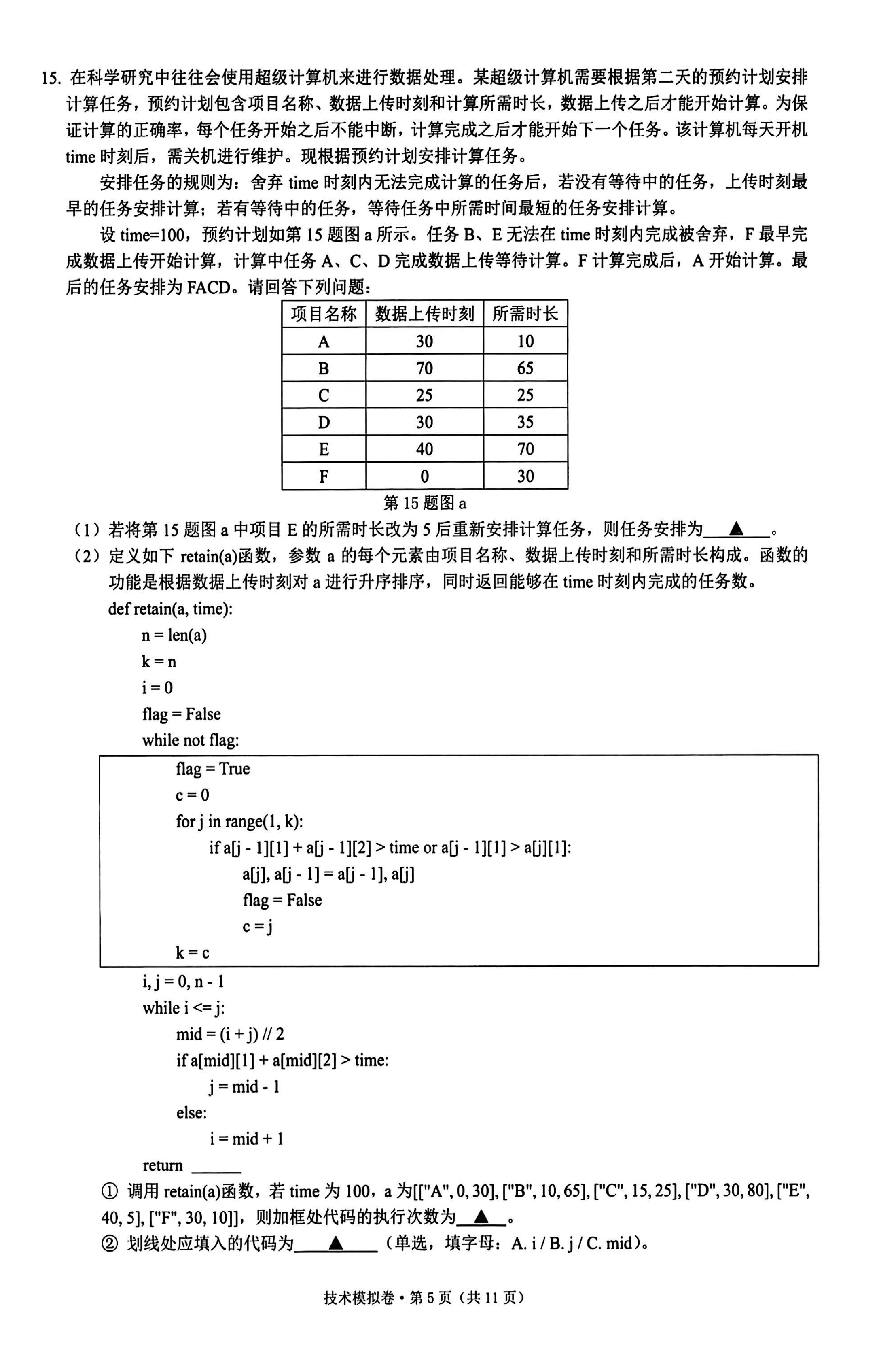 浙江六校联考2025届高三5月模拟技术试题及答案