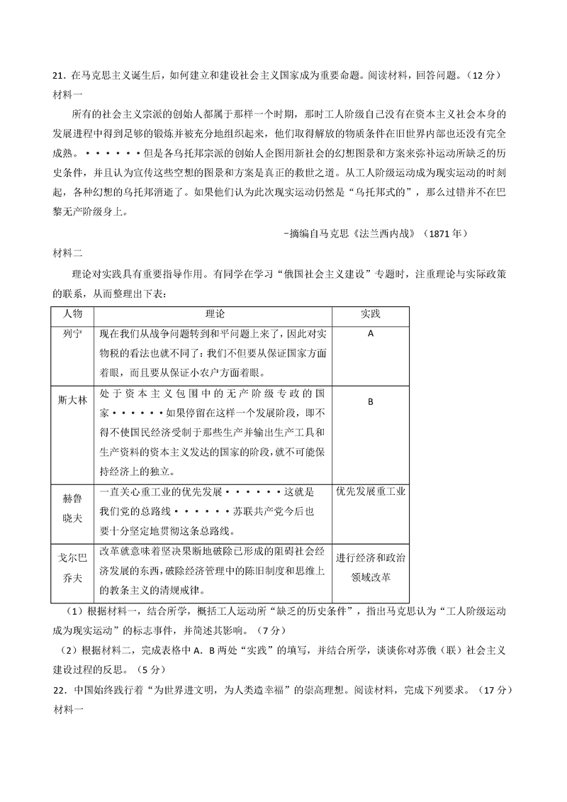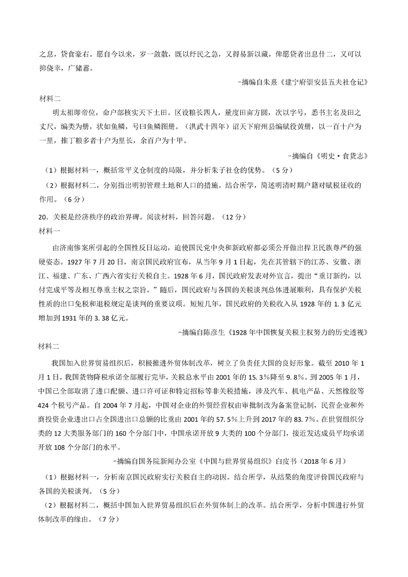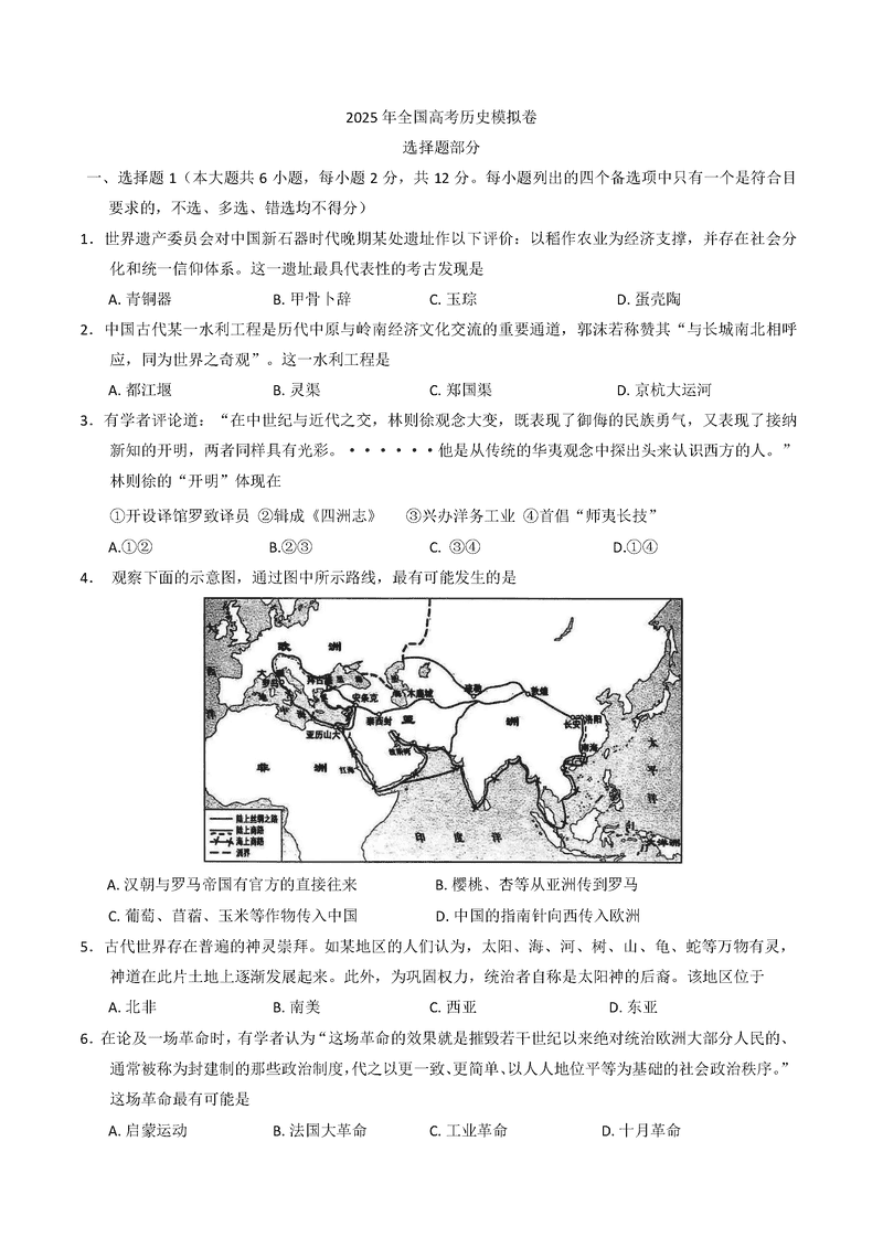 浙江六校联考2025届高三5月模拟历史试题及答案