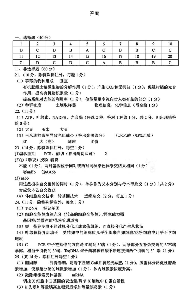 生物试题及答案解析