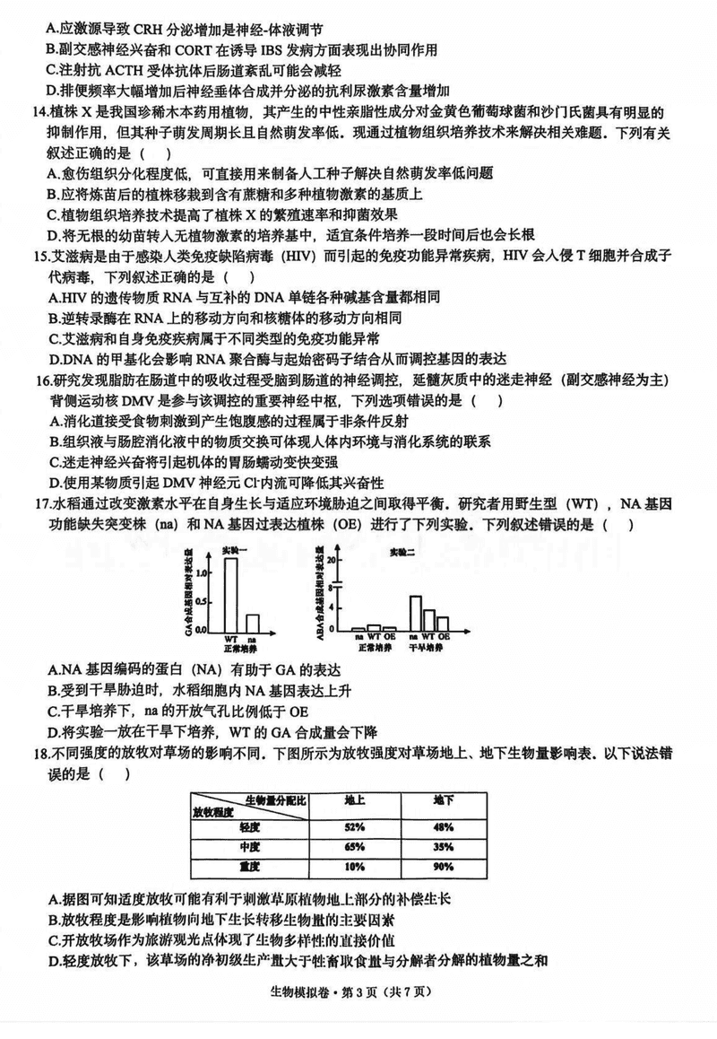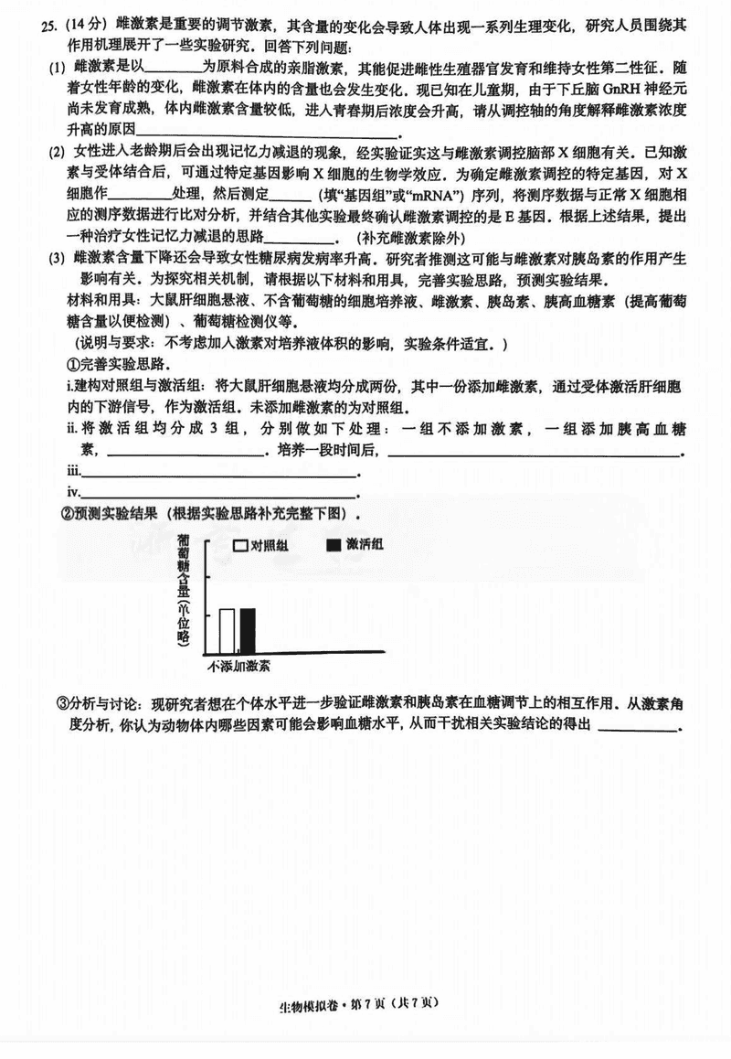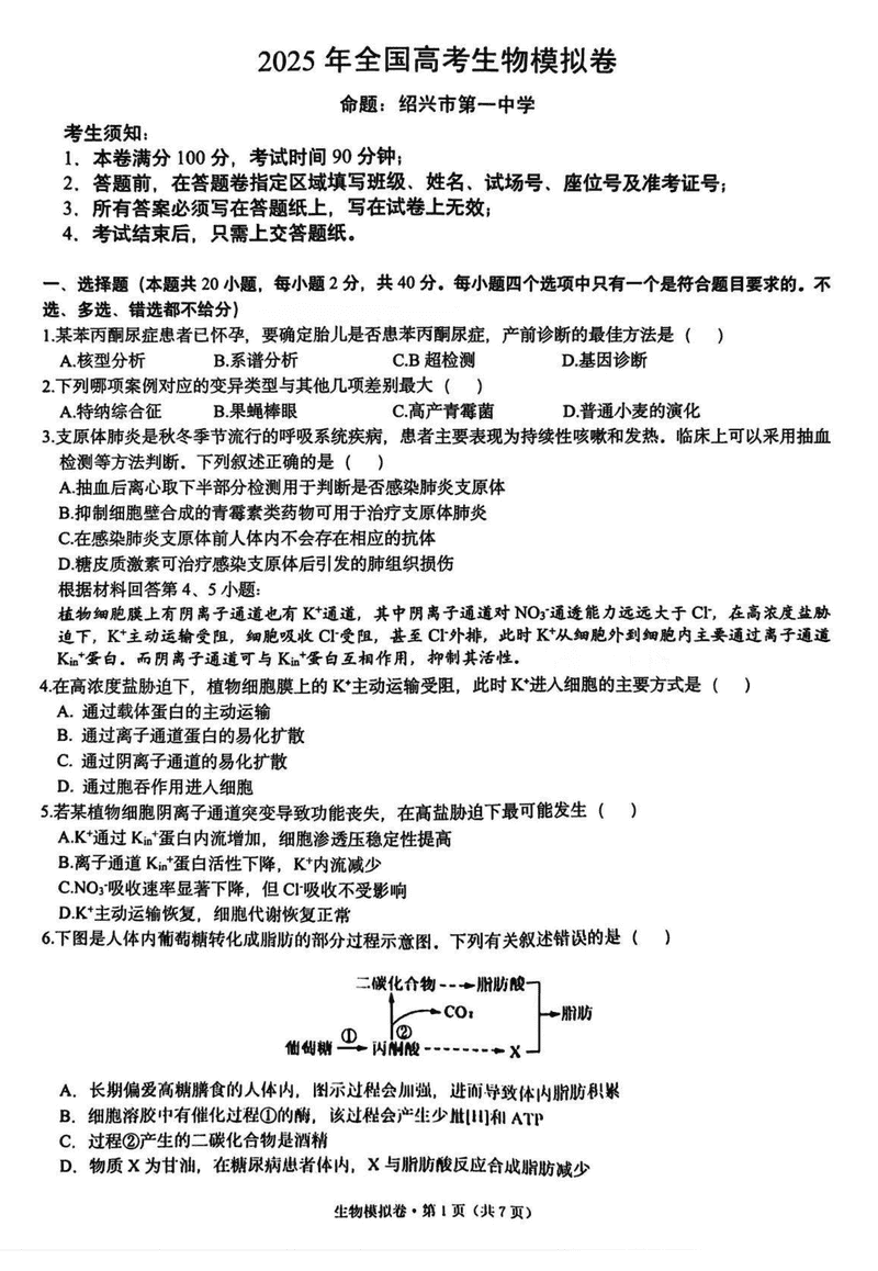 浙江六校联考2025届高三5月模拟生物试题及答案