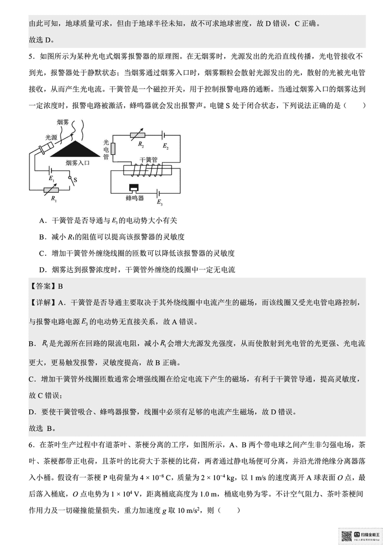 浙江六校联考2025届高三5月模拟物理试题及答案