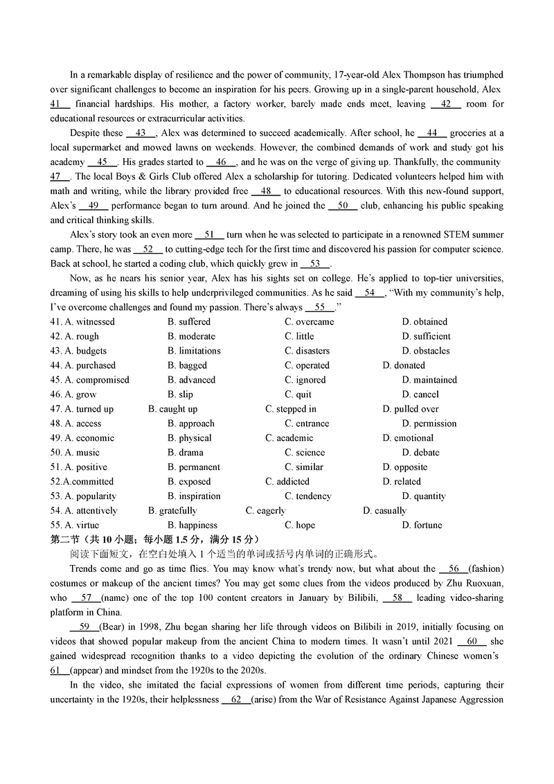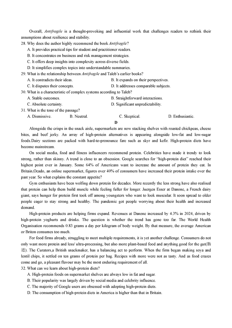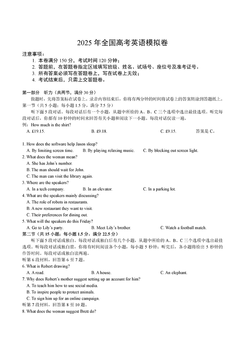 浙江六校联考2025届高三5月模拟英语试题及答案